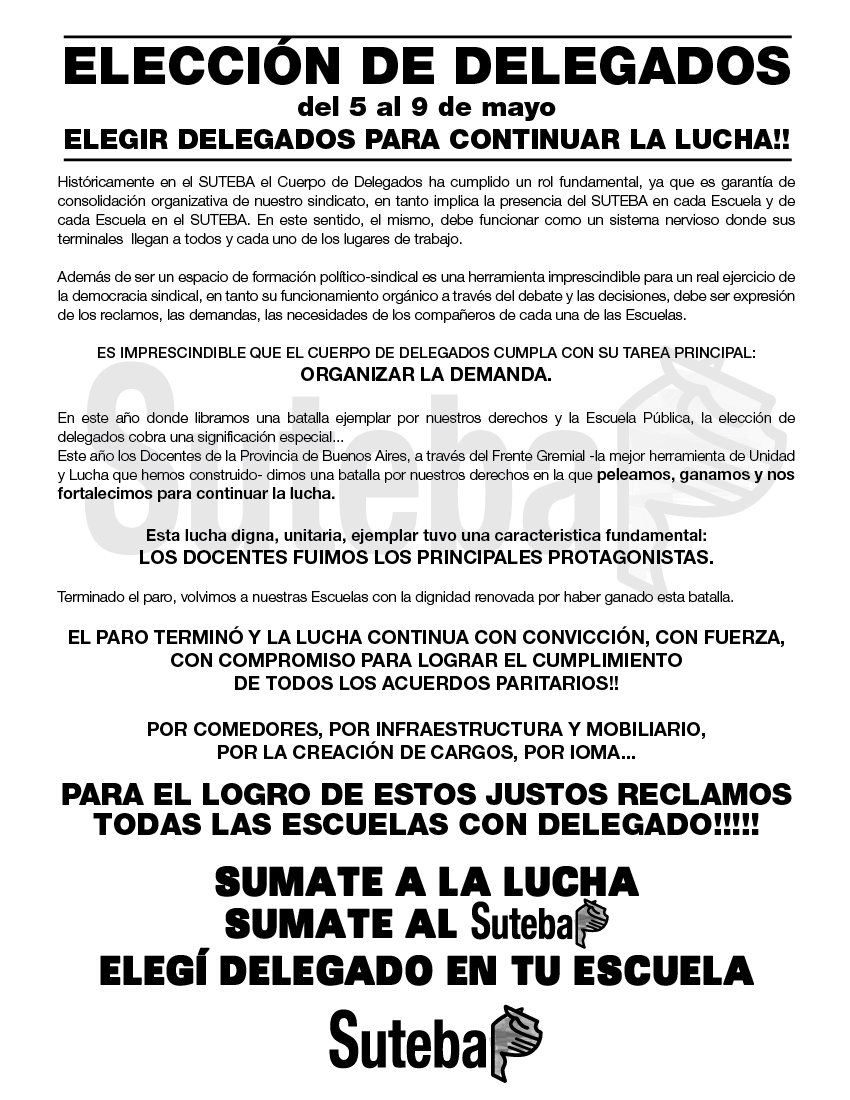 En este año donde libramos una batalla ejemplar por nuestros derechos y la Escuela Pública, la elección de delegados cobra una significación especial...