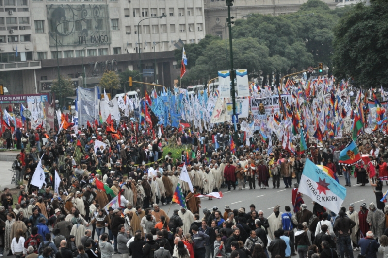 Por primera vez en el siglo veintiuno y por segunda en la historia de la Argentina, más de 15 mil compañeros de pueblos originarios provenientes de todos los rincones de nuestro país, culminaron el jueves 20 en Plaza de Mayo la extraordinaria marcha para hacer oír su voz y se unieron a otros 15 mil compañeros de organizaciones sociales donde se destacó fuertemente la CTA encabezada Hugo Yasky y Roberto Baradel. Allí los representantes de los pueblos originarios encabezados por Milagro Sala mantuvieron en Casa de Gobierno una reunión con la Presidenta Cristina Fernández de Kirchner.