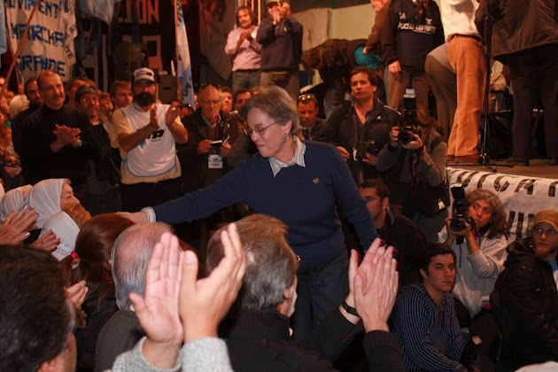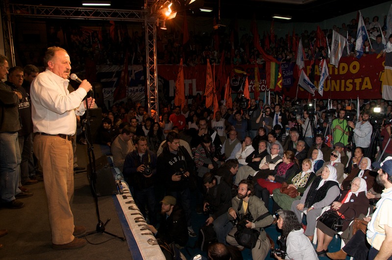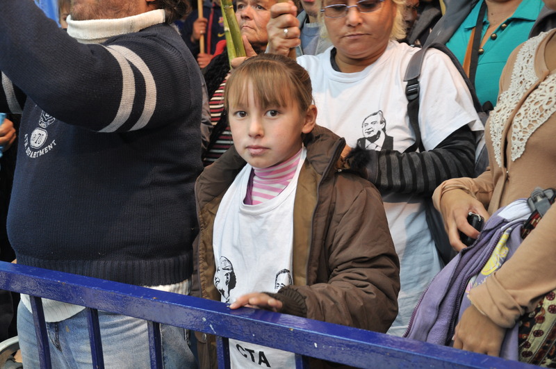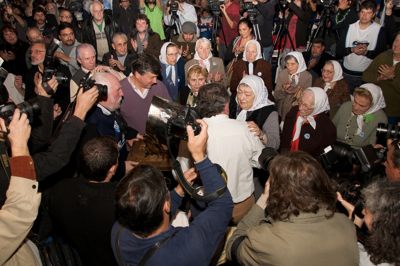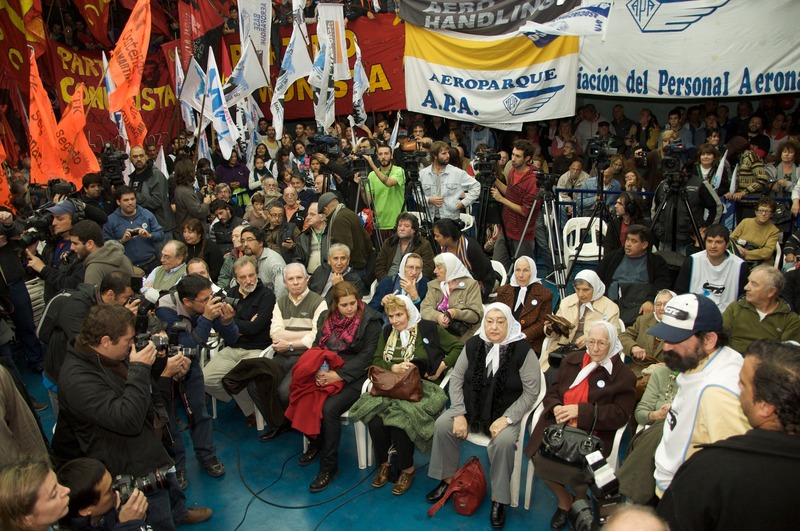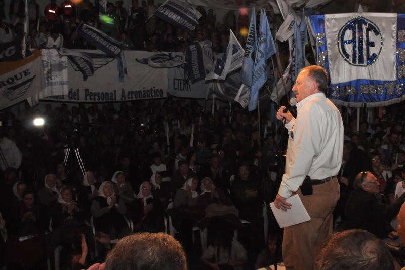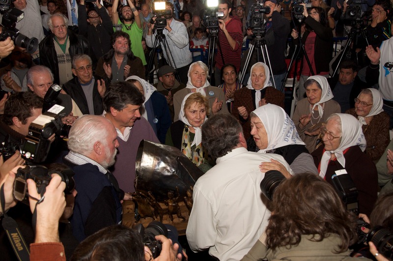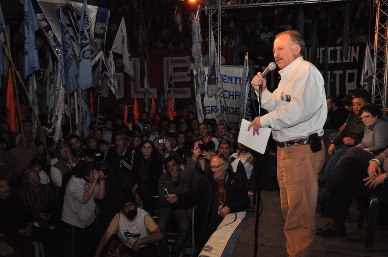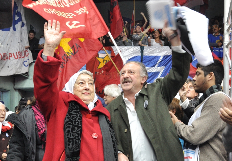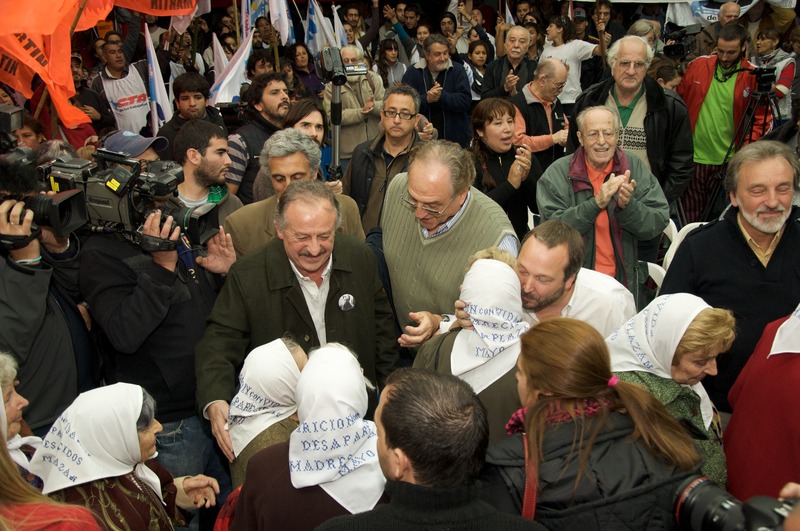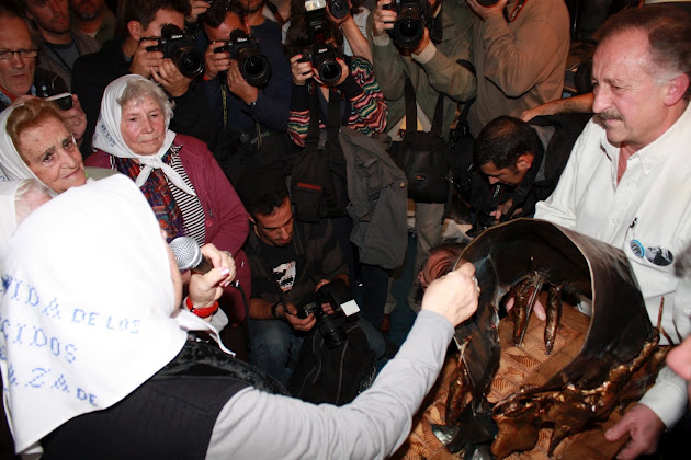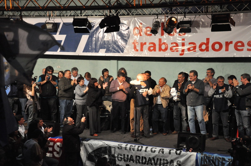 Pasadas las 17 horas, hablaron el Secretario General de la CTA, Hugo Yasky y los Secretarios Adjuntos de la Central Marcelo Frondizi y Pedro Wasiejko. También dirigió unas emotivas palabras la titular de Asociación Madres de Plaza de Mayo, Hebe de Bonafini, luego que se le entregara una escultura con la forma del pañuelo blanco de las Madres hecha en metal por el compañero Omar Gasparini. “Esto representa a nuestros hijos, nuestras luchas y las luchas de tantos otros y se nota que está hecha con un amor impresionante”, dijo entre lágrimas Hebe y agregó: “Yo agradezco muchísimo a esta Central de Trabajadores que nos haya llamado en el día de hoy porque la mayoría de los desaparecidos eran trabajadores que luchaban por una Central de Trabajadores como esta”.