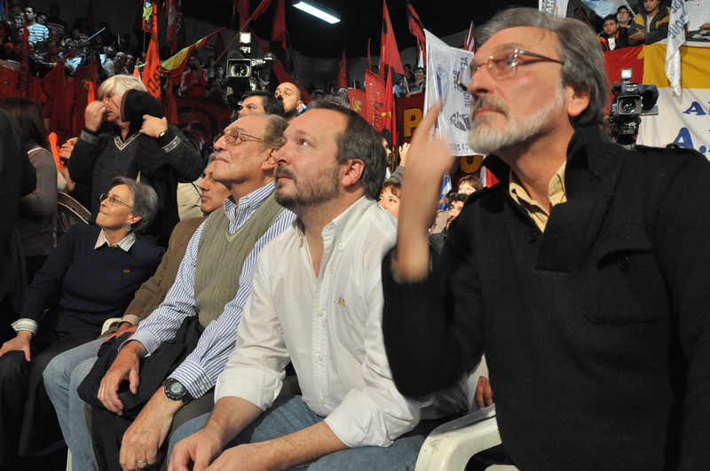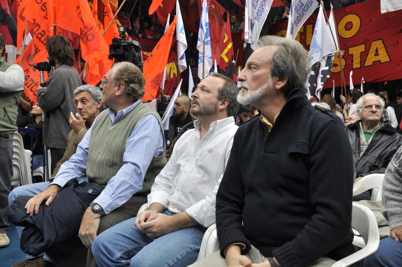 Acompañaron el acto de la CTA, los diputados Martín Sabbatella, Carlos Heller, Juan Carlos Junio, Carlos Raimundi, Edgardo Form, el secretario general de La Campora y diputado nacional, Andrés Larroque y el secretario general del Partido Comunista, Patricio Etchegaray.