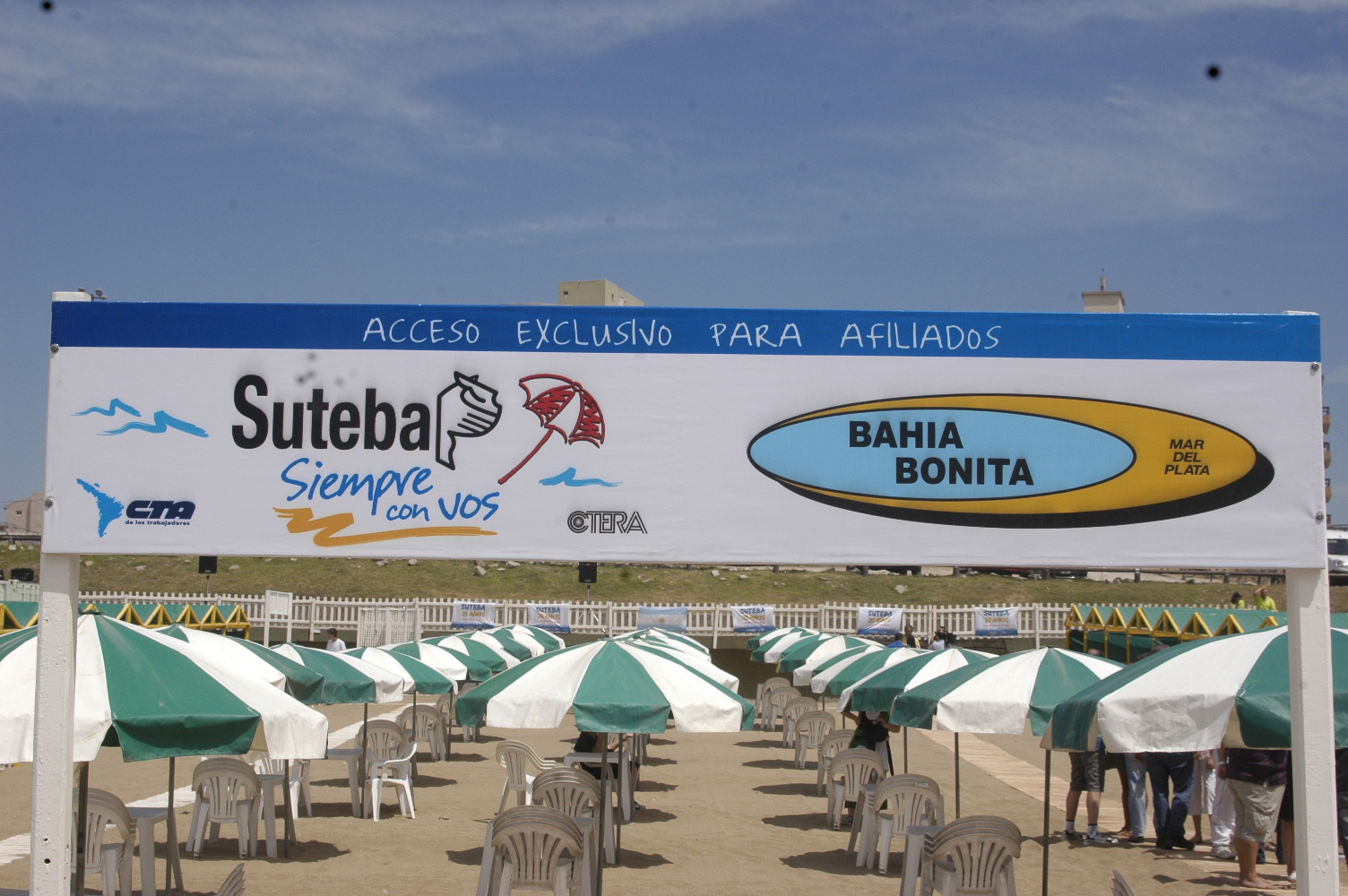 “En este espacio, los afiliados tendrán un lugar exclusivo”, informó el Secretario del Interior del SUTEBA, Raúl Calamante, quien además especificó que "todos los afiliados que hagan uso del Hotel 31 de Agosto y los hoteles que contrataron a través de SUTEBA, van a poder disfrutar de las excelentes instalaciones del Balneario Bahía Bonita con sombrilla y/o carpa gratis". También precisó: "Quienes no contrataron nuestras propuestas hoteleras contarán con importantes en el alquiler de las sombrillas o carpas de alrededor del 35% y tendrán acceso a las actividades recreativas del balneario".