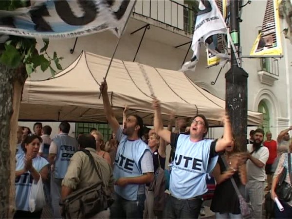 La instalación de la carpa se realizó este lunes 12 de marzo, durante la mañana. En el lugar, el Secretario General de UTE-Ctera Eduardo López expresó: “Macri considera que los chicos son como papas que se pueden amontonar en una bolsa. No entiende que la educación es un derecho social y que juntar cuarenta pibes en un aula de 4x4 es atentar contra este derecho”.