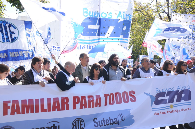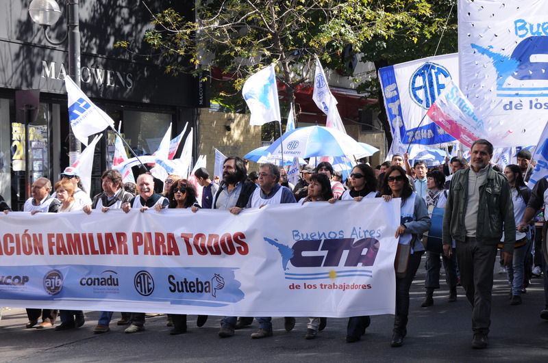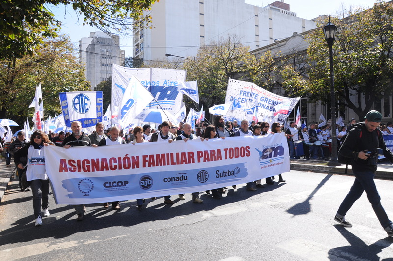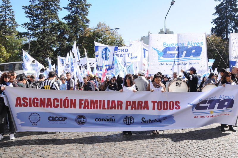 También el Secretario General de CTA Buenos Aires y SUTEBA dijo: “En relación a los trabajadores estatales es muy claro el motivo: el gobernador puede modificar las asignaciones a través de un decreto”. Por otro lado, el titular recordó que en la paritaria docente se firmó un acuerdo para crear una Comisión con la finalidad de discutir los topes en las asignaciones familiares y todavía no fue convocada. Sobre eso, sentenció: “Si no hay respuesta vamos a intensificar las acciones y vamos a plantear medidas de acción hasta que se resuelva el conflicto con las asignaciones familiares y que la podamos cobrar absolutamente todos los trabajadores.”