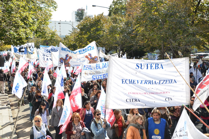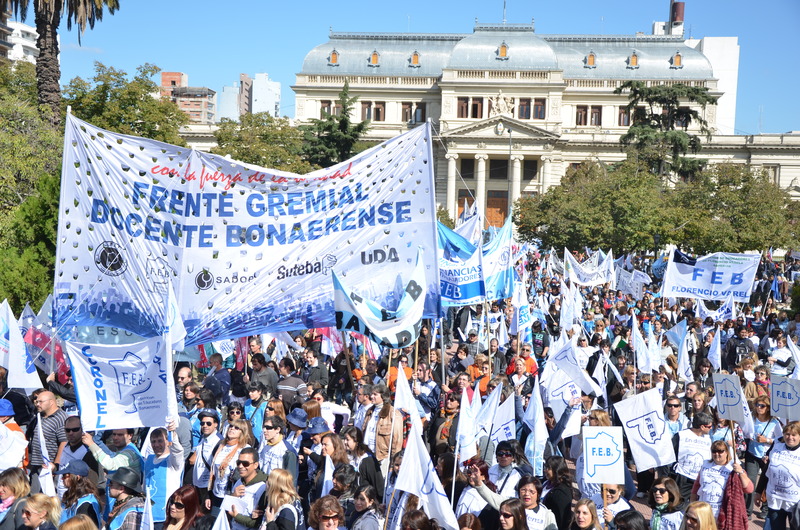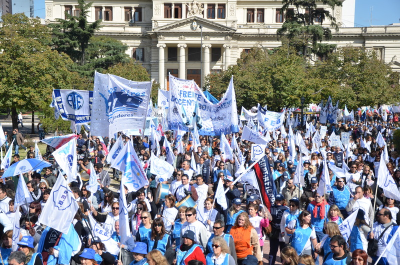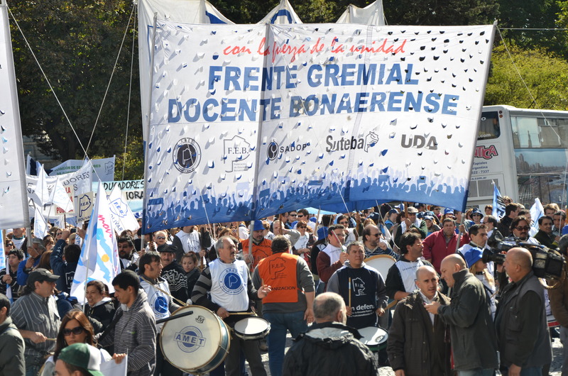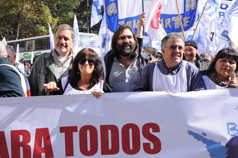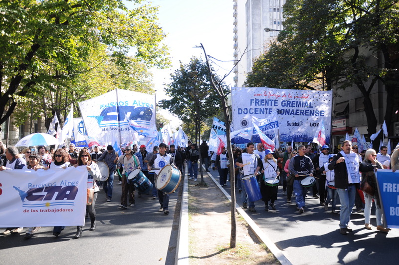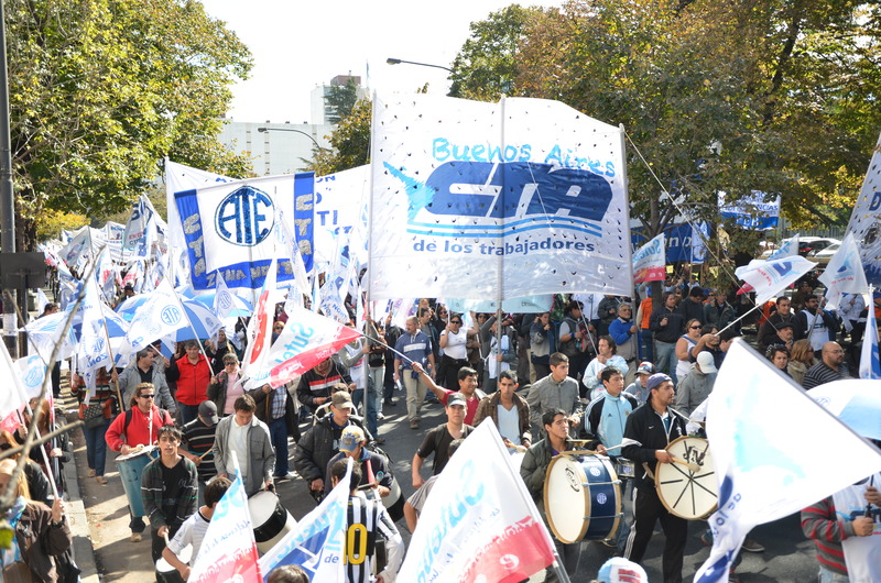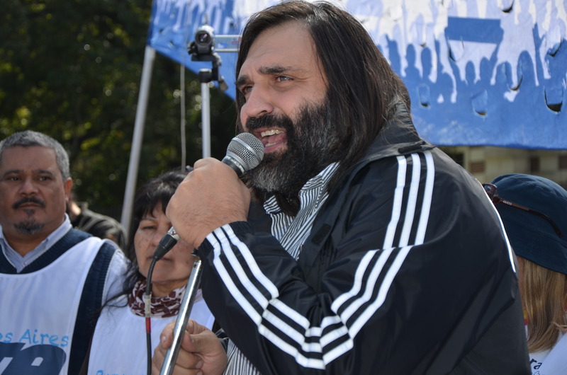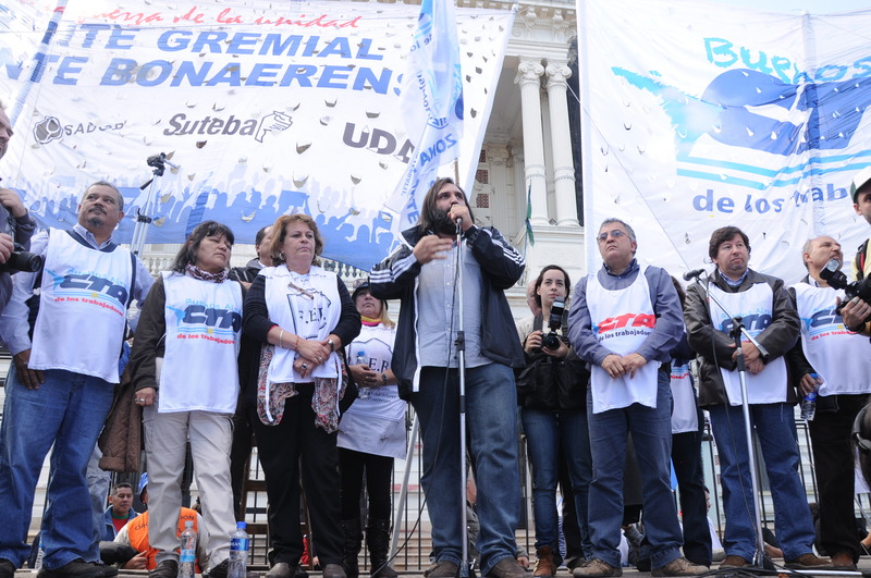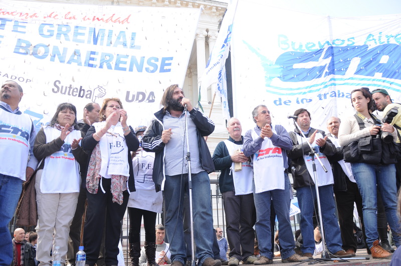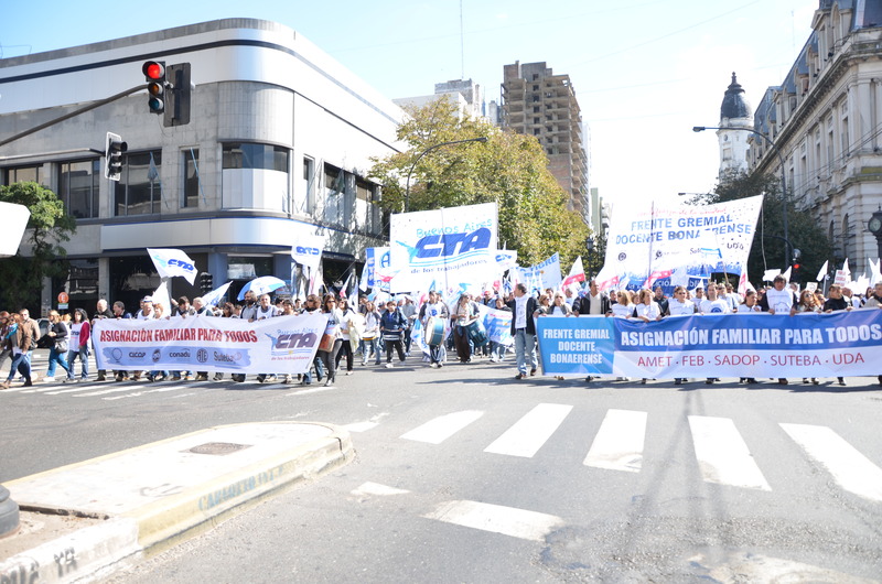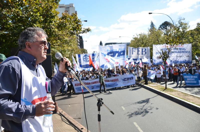 Luego, la militancia se dirigió hacia la Gobernación de la provincia y desde ahí Roberto Baradel, Secretario General de SUTEBA y CTA Buenos Aires, habló a los docentes nucleados en el Frente Gremial y a los trabajadores de la CTA provincia de Buenos Aires: “Estamos acá por un reclamo muy concreto: las Asignaciones Familiares.