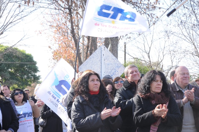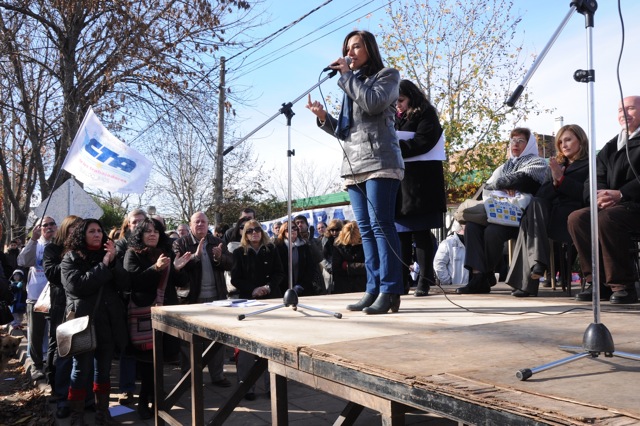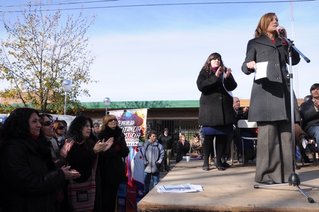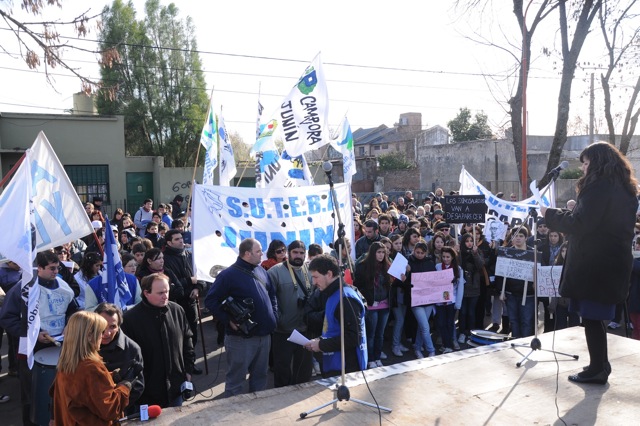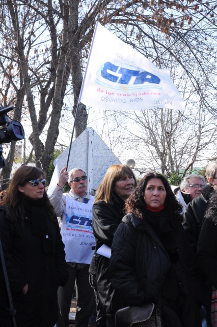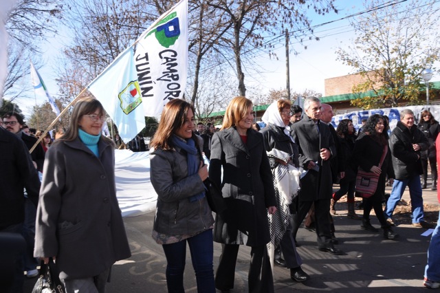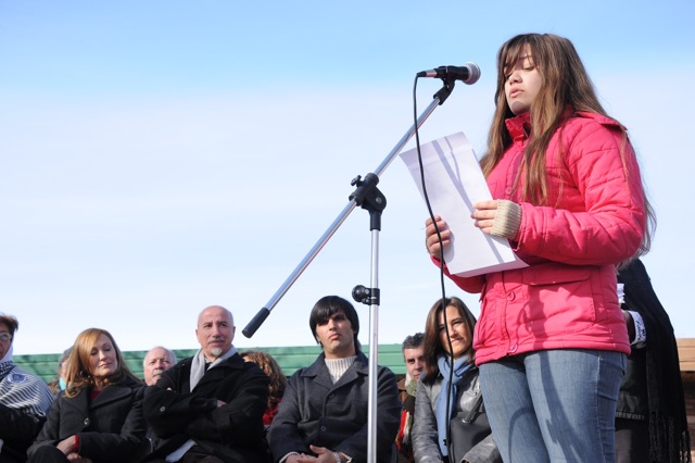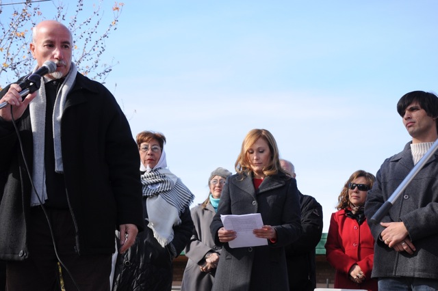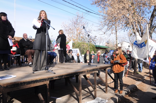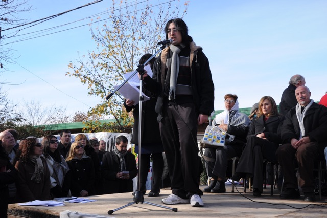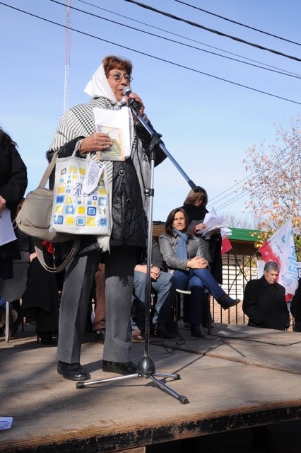 En el acto disertaron el Secretario General del SUTEBA Junín, compañero Miguel García, luego representantes del Centro de Estudiantes, después Maria Adela Antokoletz (hija de María Adela Gard de Antokoletz, Madre de Plaza de Mayo), más tarde lo hizo Silvina Gvirtz, le siguió Guido Carlotto, y cerró Rosana Merlos. Además, se leyó un documento que llevó las firmas de numerosos periodistas, entre ellos Horacio Verbitsky, Eduardo Anguita, Mariana Moyano y Pablo Llonto.