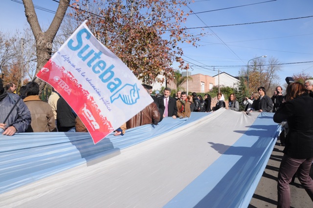 Por tal motivo, integrantes de la conducción del SUTEBA, conformada por Rosana Merlos, Secretaria de Derechos Humanos; Patricia Romero Díaz, Sub Secretaria de Derechos Humanos; Eduardo Alonso, Secretario de Comunicación; Elisa Semino, Sub Secretaria de Comunicación; Pablo Masciangelo, Secretario de Contabilidad y Finanzas CTA Buenos Aires; Julio Ceresa, Secretario de Promoción Social; Fabián Mouteira, Sub Secretario de Organización; e Ina Jonic, Secretaria Administrativa; junto al Consejo Ejecutivo de la Seccional Junin del SUTEBA realizaron con toda la comunidad un abrazo simbólico a la escuela.