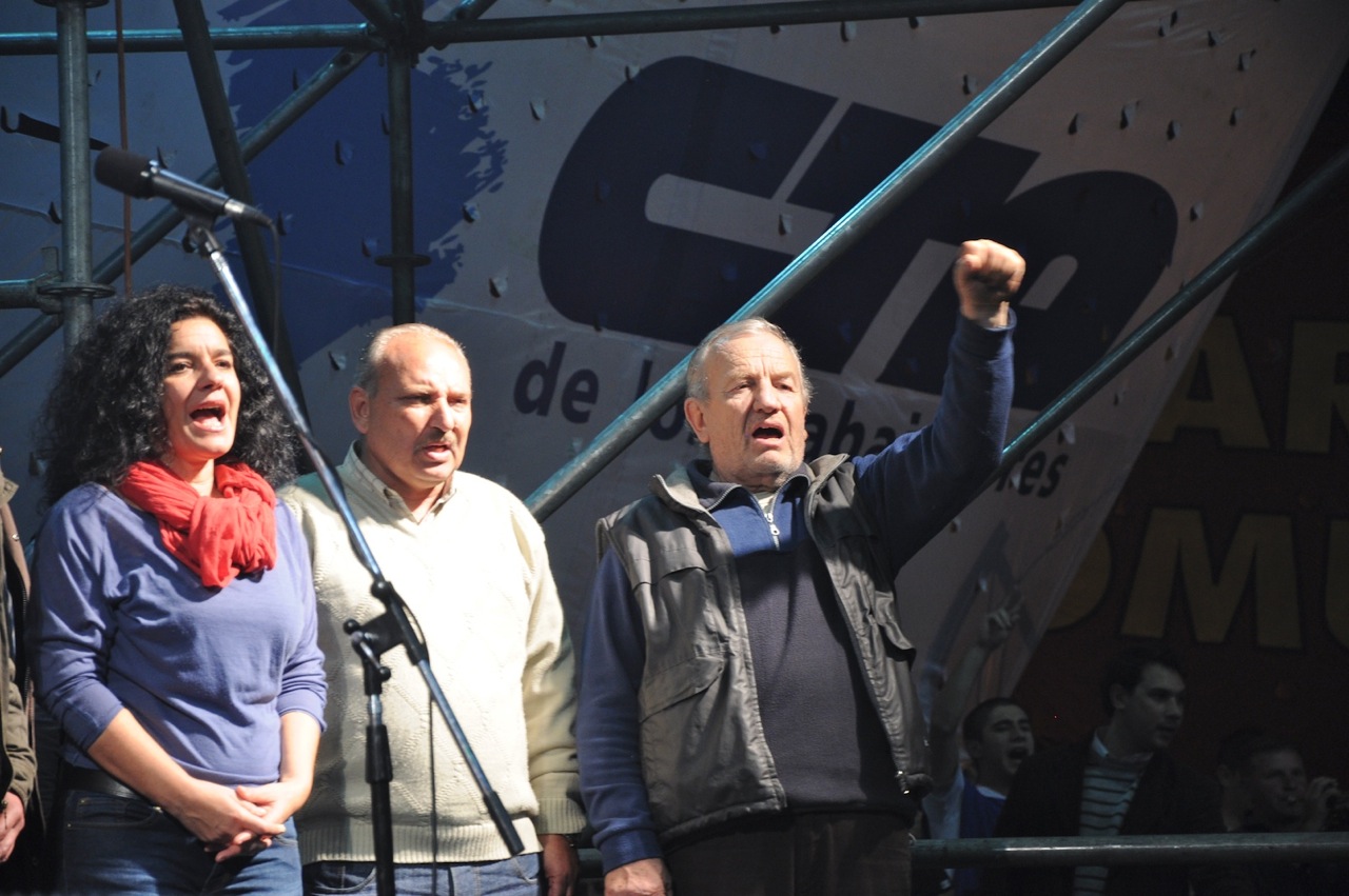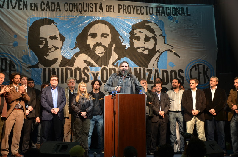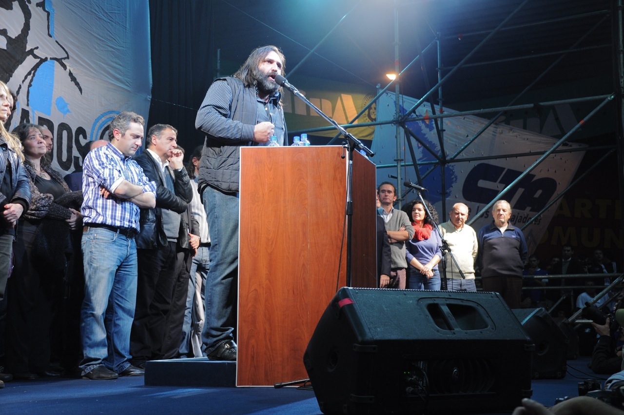 Los oradores del acto fueron Roberto Baradel, Secretario General de SUTEBA y CTA Buenos Aires; el vicegobernador bonaerense, Gabriel Mariotto; Juan Cruz Daffunchio del MTD-Aníbal Verón; y el Jefe de Gabinete, Juan Manuel Abal Medina.