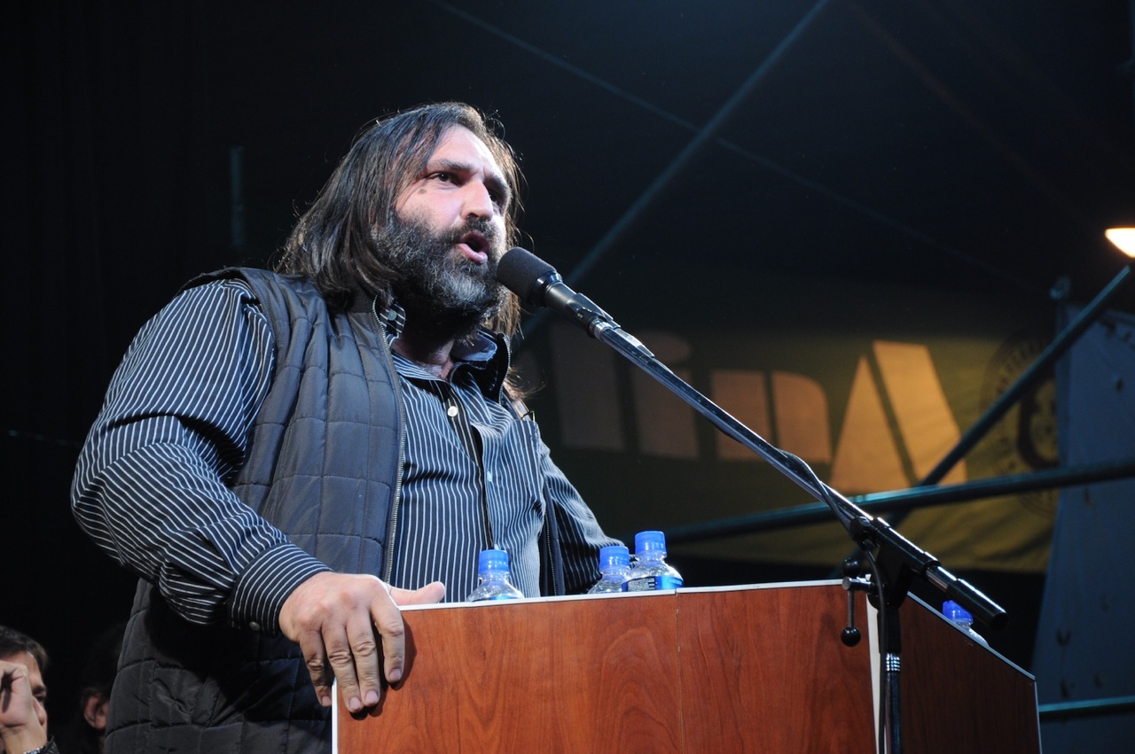 Roberto Baradel fue el primero en hablar y con sus palabras hizo vibrar a todo el estadio. “Desde el movimiento obrero sentimos una profunda emoción por estar acá”, sostuvo y agregó: “Estuvimos en el 2002 repudiando el brutal asesinato de Dario y Maxi y estuvimos movilizándonos para reclamar justicia y seguimos haciéndolo. Por eso decimos, desde el movimiento obrero, que Franchiotti se tiene que quedar en cárcel común y no puede tener ningún tipo de salida ni privilegio”. En relación a esto, Baradel se tomó un instante para saludar y celebrar la decisión de la Ministra Nilda Garré de llevar a cárcel común al asesino del compañero Carlos Fuentealba, el cabo Dario Poblete.