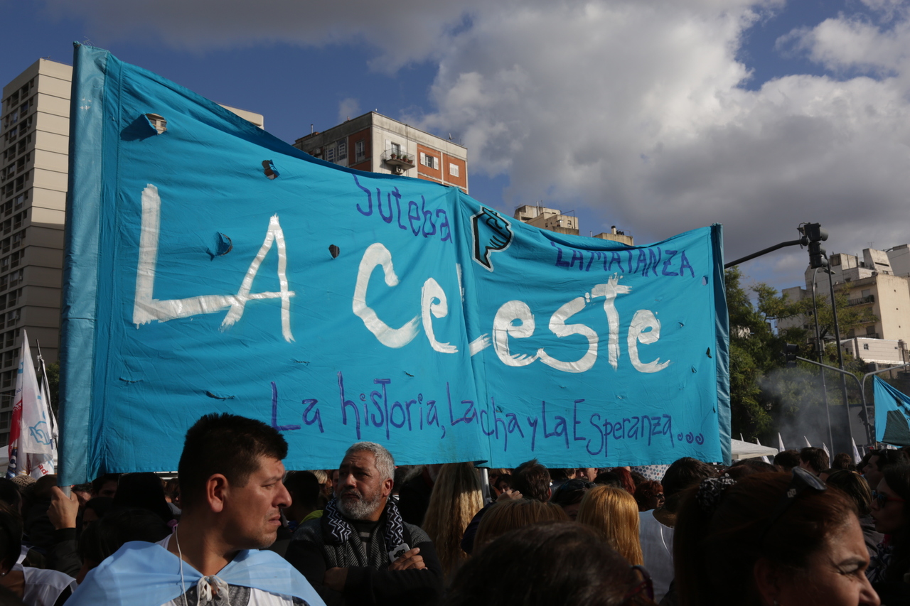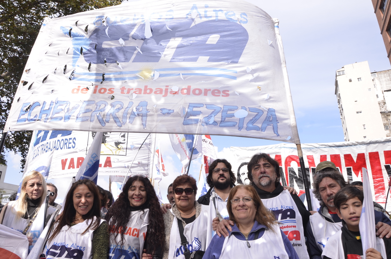 El acto estuvo colmado de columnas que llegaron de cada punto cardinal del país, conformando una multitudinaria marcha de trabajadores de todas las organizaciones y sindicatos, portando pancartas con consignas y banderas que flameaban al ritmo de los bombos, los aplausos y los cantos de los compañeros.