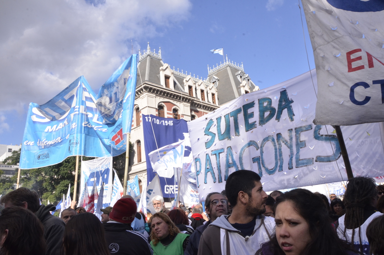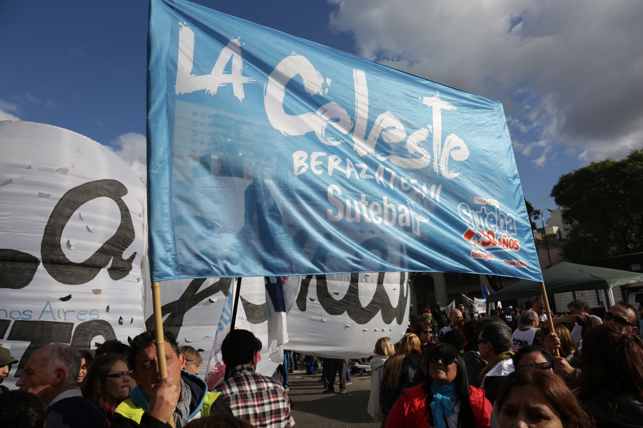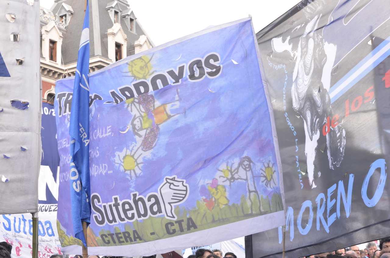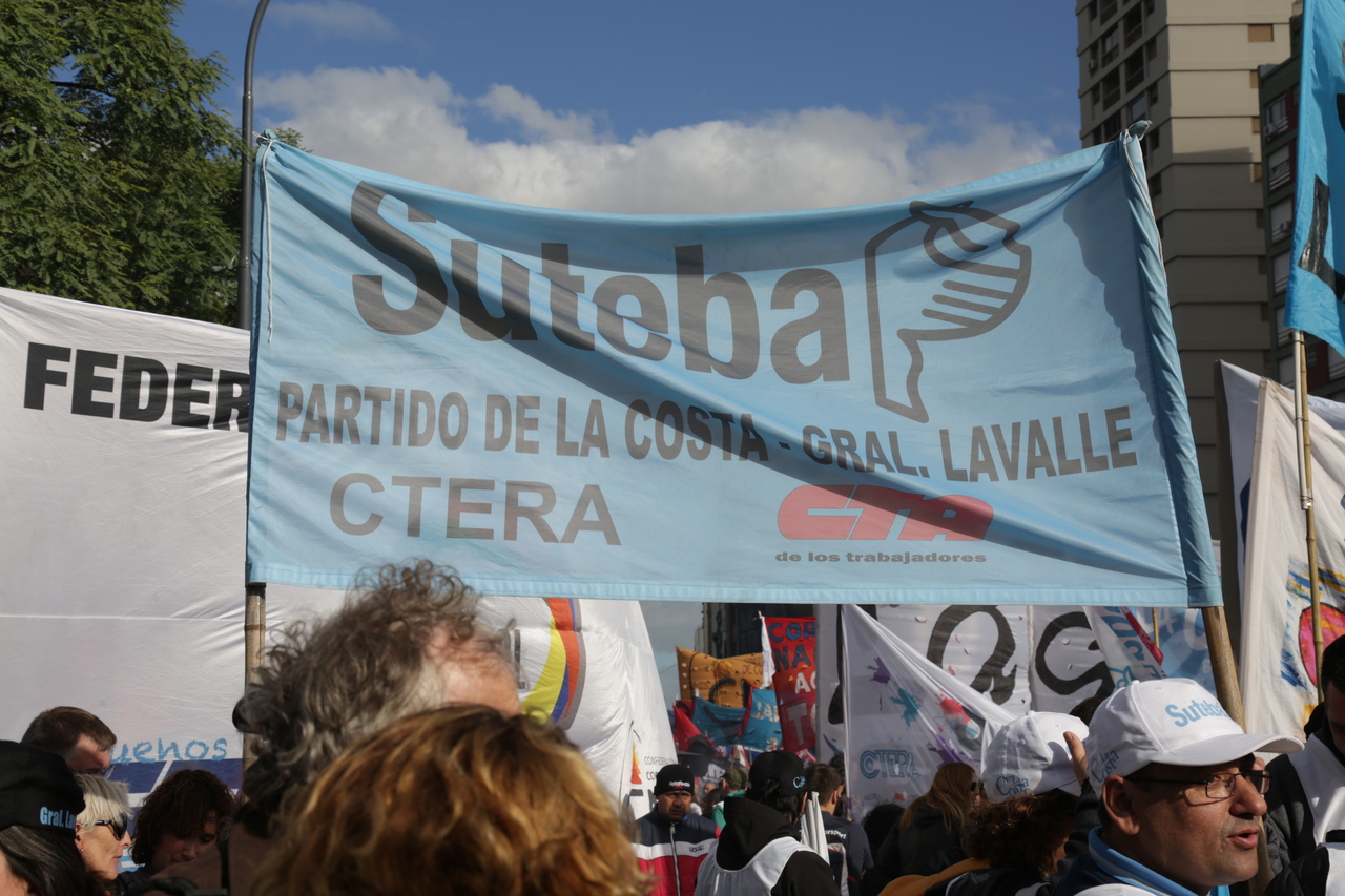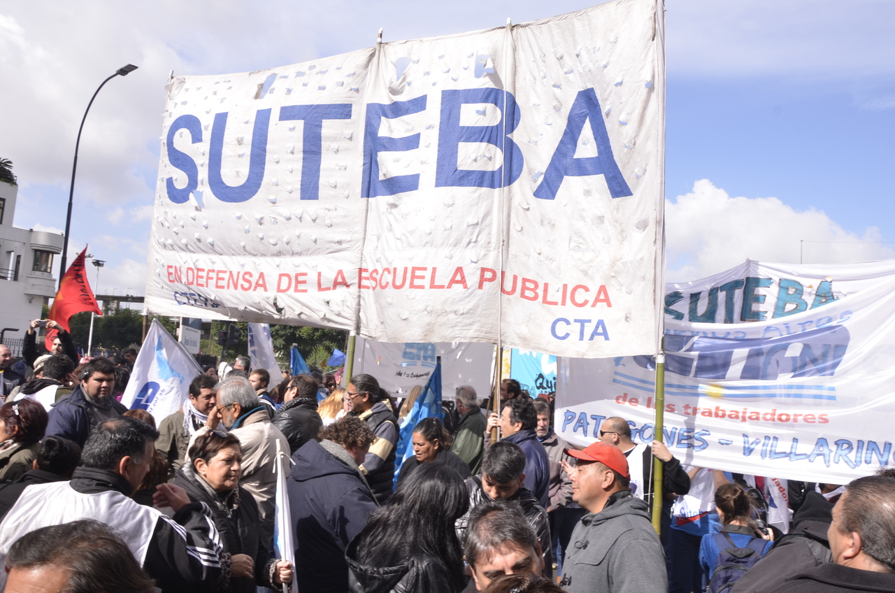 El viernes 29, la CTA y la CGT realizaron el Acto del Día del Trabajador frente al Monumento al Trabajo con una multitudinaria convocatoria de trabajadores el SUTEBA estuvo presente junto a los sindicatos de base de la CTERA y las regionales de la CTA. Las consignas de esta imponente movilización, que estuvo marcada por la unión de cuatro centrales sindicales (CTA de los Trabajadores, CTA Autónoma, CGT Balcarce y CGT Azopardo) fueron "no a la inflación, no al Impuesto a las Ganancias, no a los despidos y por una jubilación digna".