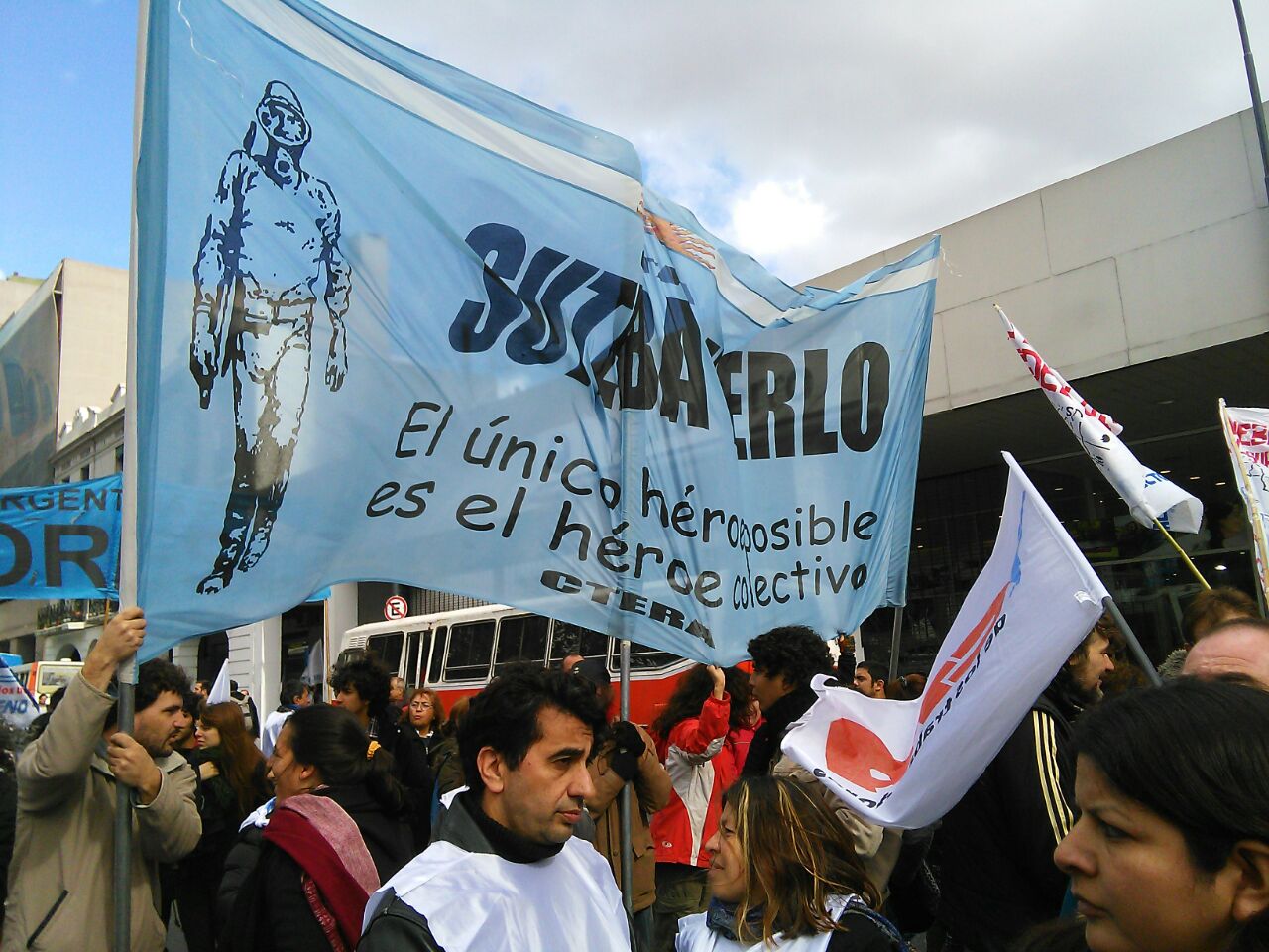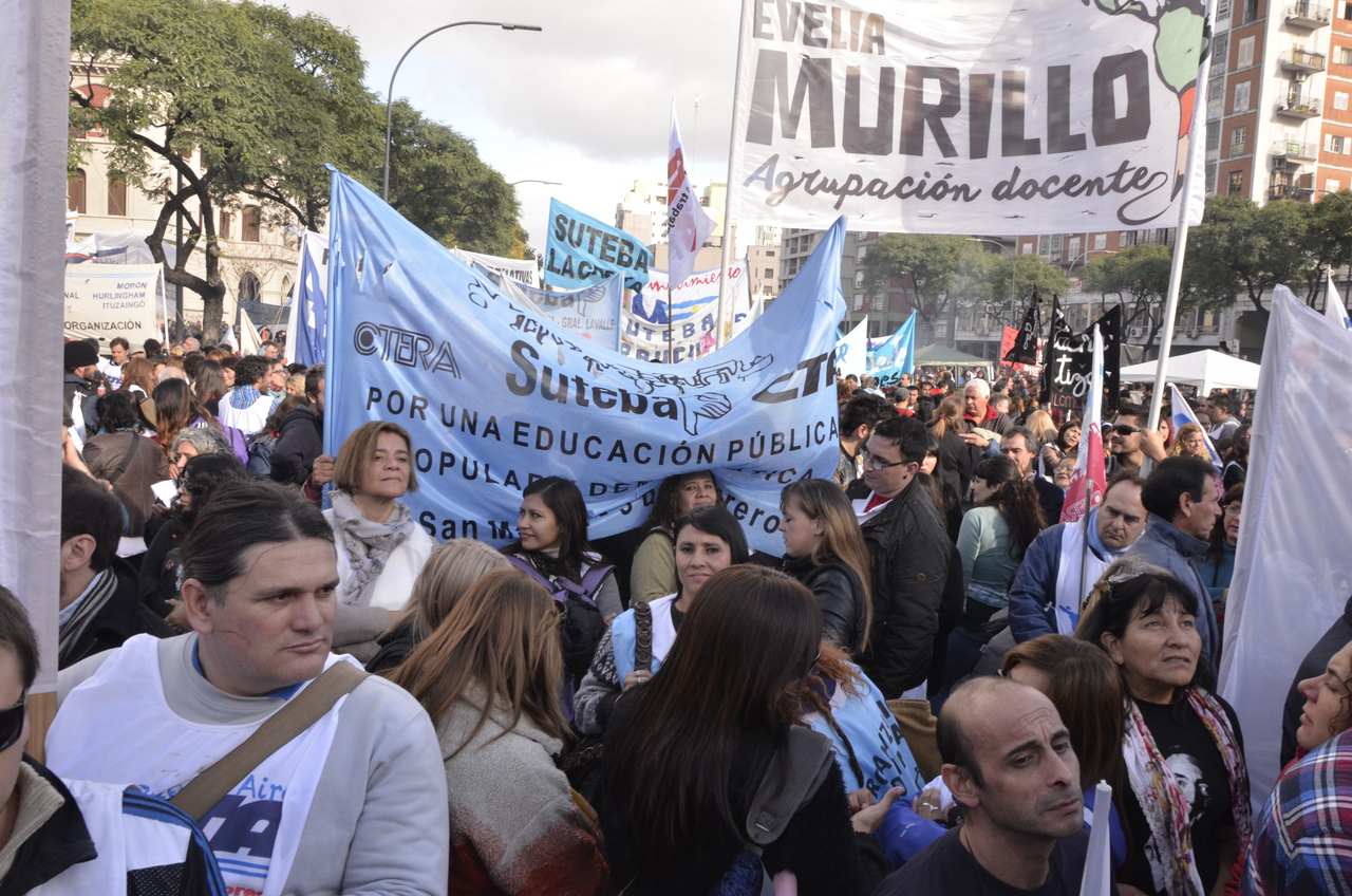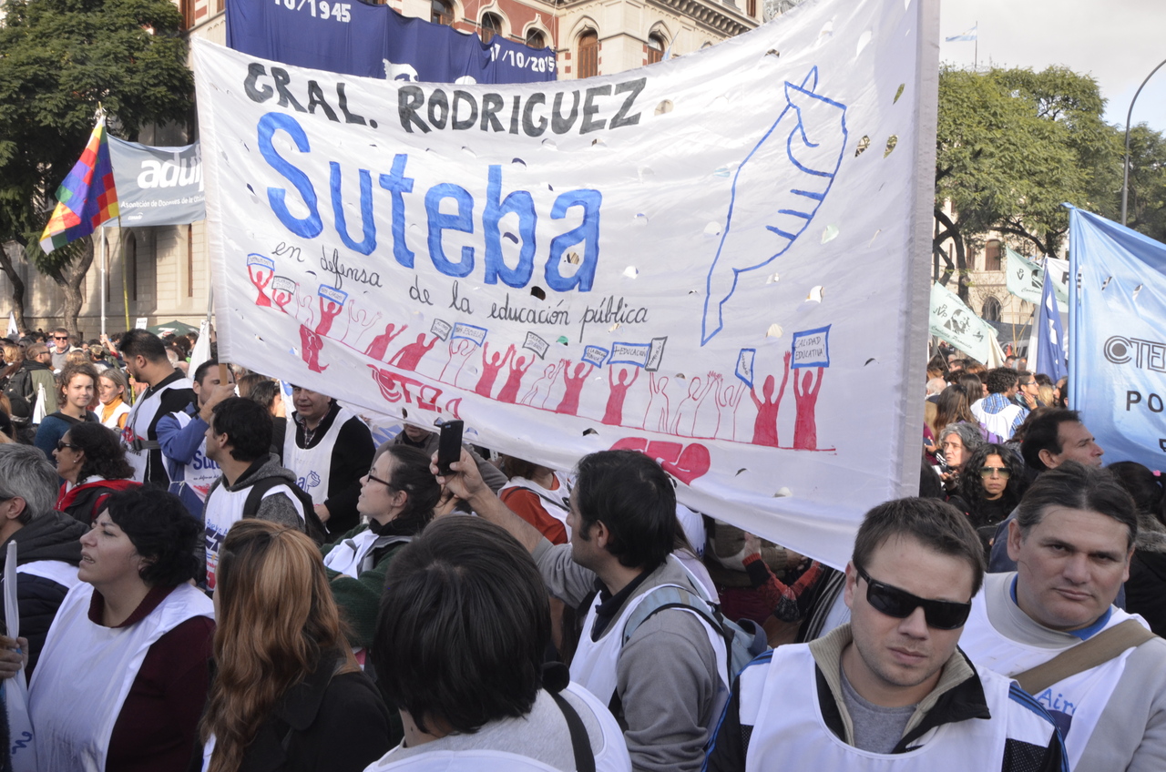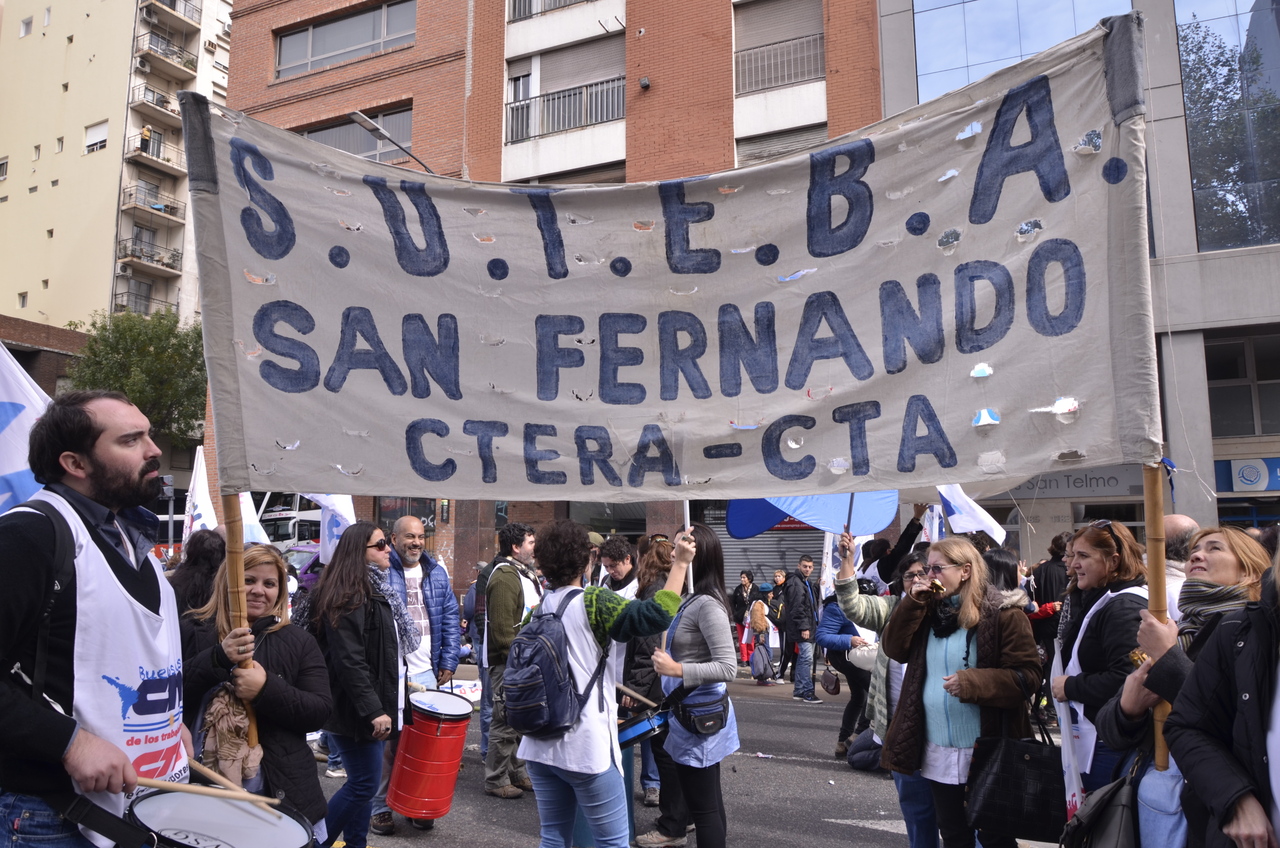 El viernes 29, la CTA y la CGT realizaron el Acto del Día del Trabajador frente al Monumento al Trabajo con una multitudinaria convocatoria de trabajadores el SUTEBA estuvo presente junto a los sindicatos de base de la CTERA y las regionales de la CTA. Las consignas de esta imponente movilización, que estuvo marcada por la unión de cuatro centrales sindicales (CTA de los Trabajadores, CTA Autónoma, CGT Balcarce y CGT Azopardo) fueron "no a la inflación, no al Impuesto a las Ganancias, no a los despidos y por una jubilación digna".