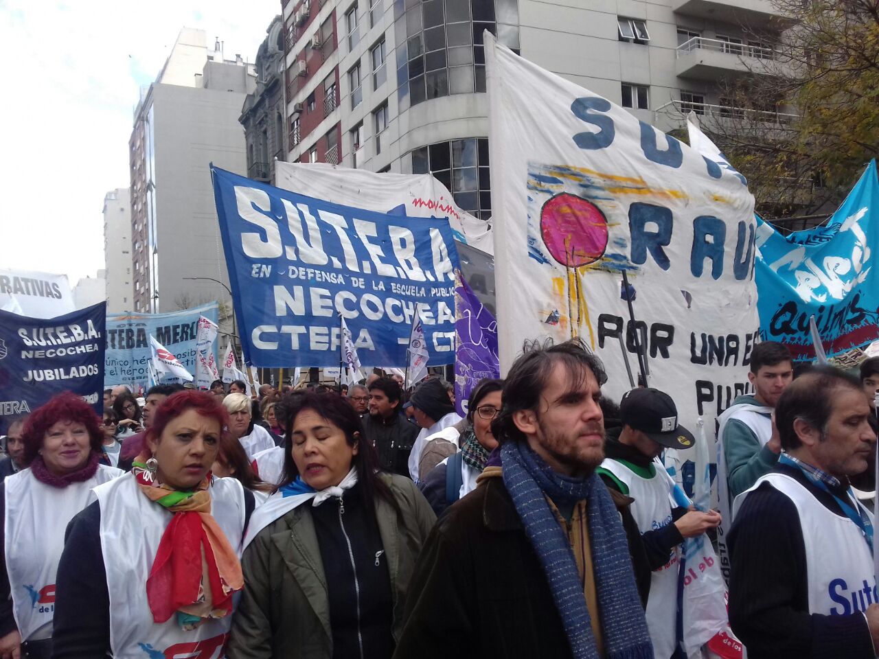 El SUTEBA participó de este acto para conmemorar el Día del Trabajador a nivel mundial y para demostrar su firme compromiso contra los despidos, eliminación del Impuesto a las Ganancias, por una jubilación digna, contra la criminalización de la protesta y por los derechos de todos los Trabajadores de la Educación.