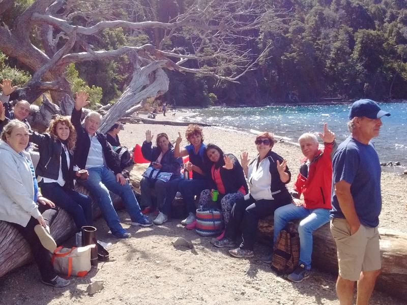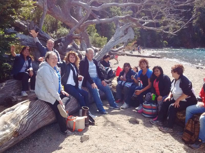 El primer destino fue Bariloche a donde el grupo arribó el 29 de enero. Gracias a la cálida temperatura pudieron aprovechar el sol y la playa. Además, realizaron el circuito chico de ascenso en aerosilla en el Cerro Campanario y tuvieron una visita guiada especial al lago Gutiérrez y cascada de los duendes que terminó con mates a la orilla del lado.