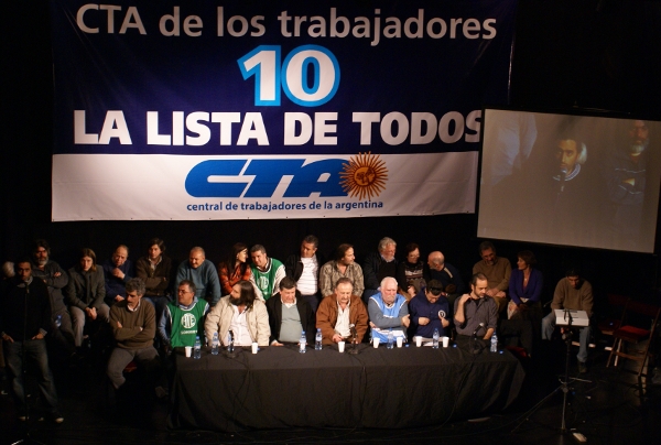 Cuando el titular de la central obrera tomó el micrófono se respiraba en el lugar un verdadero clima de fiesta. “Llegamos a uno de esos días en los que se sintetiza la lucha de todos estos años, llegó la hora de ponernos de pie y definir un camino para la CTA”, anunció el dirigente. Lo aplaudían centenares de militantes de distintas extracciones que coparon el teatro con bombos y banderas.