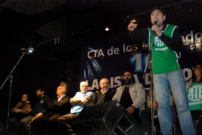 “Cuando fue tomado, el Nono salía del Malbrán y llegaba caminando a la Carpa Blanca. Esos fueron los dos únicos testigos de que la resistencia era posible”, puntualizó Girotti. En el cierre, Yasky señaló la necesidad de una central “que se contamine, se moje cuando llueve, meta los pies en el barro; esté en las fábricas, baje al subte, vaya a las escuelas y hospitales y no una central que esté en los balcones mirando pasar la realidad”. En alusión a los dirigentes que encabezan la lista opositora, el titular de la CTA remarcó: “Parece que a algunos les da miedo crecer”.