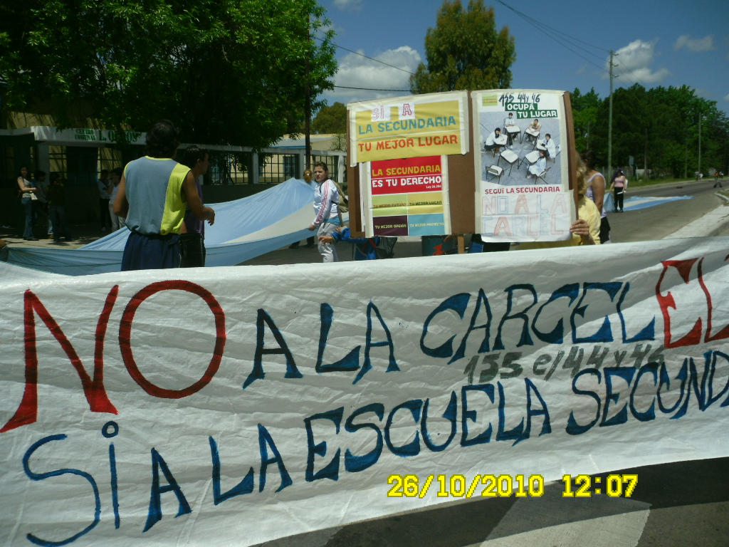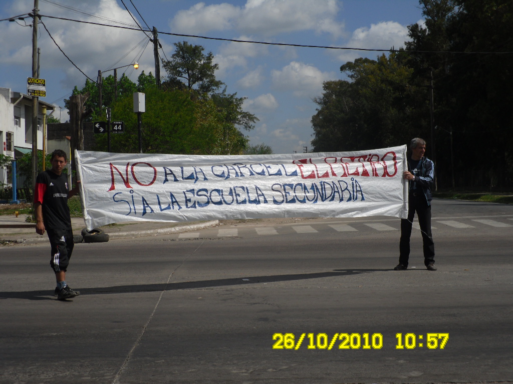 Desde siempre, y como conducción de este sindicato venimos planteando, la necesidad de construcción de una escuela secundaria en la zona, y viendo las alternativas de terrenos cercanos. Nos unimos al reclamo de la comunidad para impedir se siga avanzando en la remodelación de las instalaciones de 155 y 46 para construcción de un penal de alto riesgo y en su lugar  se construya una escuela secundaria.Atendiendo la demanda de por lo menos 5 escuelas primarias, que desde la calle 32 hasta Olmos no tienen posiblidades de continuar en escuelas de la zona. Atento además a lo impreso en el texto de las Leyes Nacional y Provincial de Educación en tanto se debe garantizar el DERECHO SOCIAL A LA EDUCACION.