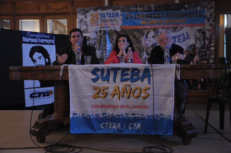 Luego de la reproducción del video de SUTEBA 25 años, donde se ve la historia del sindicato durante todos estos años, Baradel explicó el objetivo de las jornadas, agradeció la numerosa presencia y dio detalles sobre la actividad sindical, instando en todo momento a la participación masiva. “Si nuestro país produce alimentos para 400 millones de personas y,a pesar de que sólo somos 40 millones, hay hambre, eso significa que alguien se queda con lo que no debe”, sentenció Baradel. También señaló: “Creemos que hay que construir instituciones que tengan que ver con la participación. Nosotros defendemos el marco del proceso político de la diversidad porque peleamos por la estatización de las AFJP, junto a las Madres y Abuelas contra la impunidad, por Aerolíneas Argentinas, por una educación pública para que no se privatizara. Por eso vamos a defender lo que conquistamos, pero no para conformarnos, porque si hay empate hay retroceso. Vamos a defender las conquistas alcanzadas, para ir por más.”