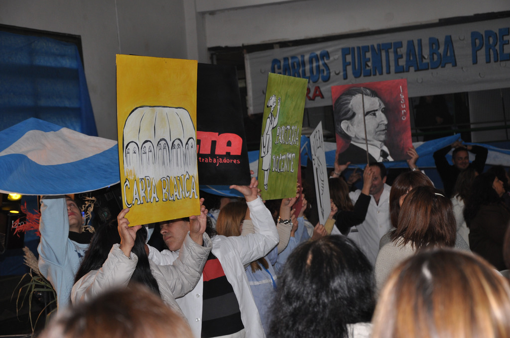 Por último, fue el turno de Pablo Llonto quien arremetió contra los medios: “No tenemos ninguna duda que la influencia de los medios es altísima, no sólo en la toma de decisiones electorales, sino en la toma de decisiones de vida. Nosotros estamos convencidos de que otro sería el rombo de la educación, de la economía o del deporte si los medios de comunicación tuviesen otro tipo de conducta, por supuesto, volcada a otro tipo de valores, especialmente, a la solidaridad, al no individualismo y al no consumo”.