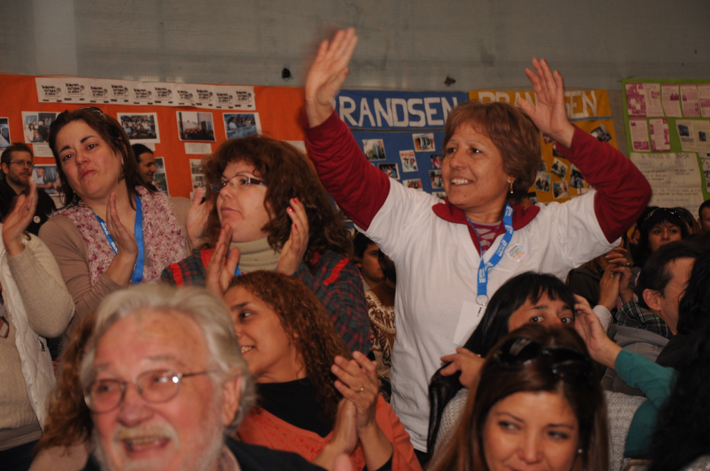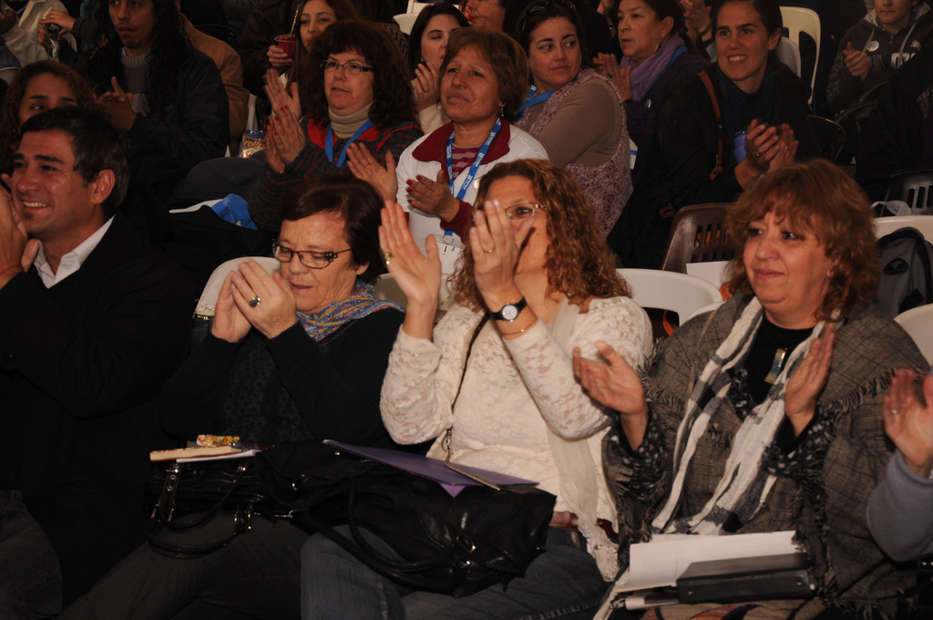 Al final de la mañana, fue el turno de Stella Maldonado. Habló de la fundación de CTERA, del SUTEBA, de lo logrado y de lo que falta lograr. “Nuestros logros no deben impedir ver que cuestiones nos faltan”, reflexionó Maldonado. También habló de que los derechos son interdependientes y están interrelacionados. Luego dijo: “La recuperación de la autoridad estatal generada en los últimos años, como por ejemplo, Néstor Kirchner descolgando el cuadro de Videla y la re estatización de las AFJP, a pesar de estos avances, todavía hay una fuerte desautorización del Estado como garante del bien común. Y sobre todo, todavía tenemos un largo camino que recorrer en la idea de un nuevo Estado”. Sobre esto, puntualizó que hay que “preguntarse de qué manera significativa todavía impacta esta concepción del aparato estatal en nuestro trabajo.” Por eso, cerró invitando a “seguir trabajando mucho más para construir una democracia representativa como la que tenemos, en una democracia participativa.”