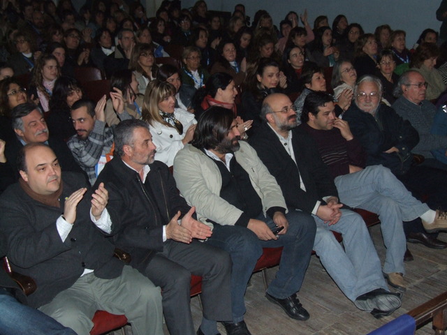 Inmediatamente, Paulón y Valdez dejaron el escenario y comenzó la exposición de Estela Diaz, quien lamentó no haber tenido en otros períodos está “unión latinoamericana como la que estamos teniendo hoy.” Habló del nuevo presidente de Perú, de la improvisada cumbre de UNASUR y la reunión de Cristina y Dilma para reguardar a la región ante la crisis económica mundial. Pero su exposición se centró en el papel y el rol de las mujeres en la sociedad y como ésta las invisibiliza, más allá de algunas conquistas en materia de derechos para las mujeres. Entonces comenzó: “Si hay algo que ha sido la gran revolución silenciosa del siglo XX es la que tuvo que ver con el protagonismo de las mujeres. Si miramos a partir de la segunda mitad del siglo XX, se produce realmente una enorme revolución silenciosa. Mujeres presidentas de la Nación, del Banco Central, la Ministra de Justicia de Bolivia, etc. Este proceso de inclusión nos hace repensar un poco más la categoría de ciudadano o ciudadana. De qué hablamos cuando hablamos de esto y pensaba en la Revolución Francesa, si hay algo que instituyó a las sociedades de las que hoy formamos parte, es el paradigma de la igualdad que proponía la Revolución Francesa. Pero en realidad, este paradigma instalaba, de base, algunas desigualdades. Igualdad refería a varones, jóvenes y blancos. Esto se condecía con las escuelas, unas para varones y otras para mujeres y que los/as preparaba para cumplir distintos roles.” Y continuó: “La sociedad sigue teniendo diferencias ‘ocultas’ entre varones y mujeres, para adultos mayores, para sectores populares o de otras etnias. Si todo esto no se pone en juego en las escuelas, entonces seguimos reproduciendo esta idea liberal, porque aún en la sociedad hay una fuerte tutela sobre los derechos de las mujeres.” Habló también de la educación sexual y de cómo los sectores más conservadores no quieren que se enseñe en las escuelas cuando “la mayoría de los abusos se dan en los hogares”, entonces “como van a hacer los niños para saber lo que les pasa y hablarlo si en las escuelas no se enseña eso”. “Uno de los grandes promotores de que se sigan sin enseñar educación sexual es Monseñor Aguer en La Plata”, se molestó Diaz.