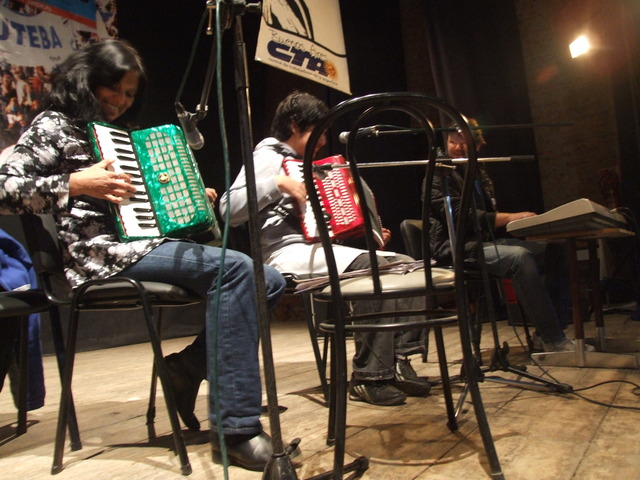 Minutos antes de las 14 el profesor de música Federico Queirolo y Damián Nahuelpan, un alumno no vidente, de la Escuela Nº 501 musicalizaron la jornada con guitarra, acordeón y órgano. Luego, subió al escenario Josefina Queirolo y entonó una chacarera.