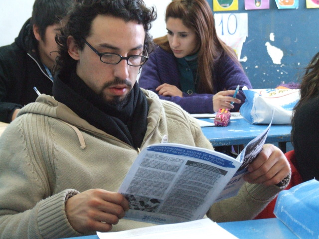 El segundo en hablar fue el Cónsul boliviano, Sixto Valdez Cueto. La misión de Sixto es ver la situación en la que se encuentran lo bolivianos en el sur de nuestro país, ya que hay muchos que se han ido de Bolivia para trabajar aquí, pero lo hacen en pésimas condiciones y quizás de forma ilegal. “Se fueron de Bolivia porque fueron expulsados de su país por un sistema que los despreció,” se entristeció el cónsul. La exposición de Sixto fue una de las más emotivas de la jornada, ya que el compañero contó la historia de su país y su historia personal hasta llegar al punto de emocionarse hasta las lágrimas. “Soy hijo de una obrera que durante más de 40 años fue explotada y no sabía leer ni escribir y cuando yo escribí mi primer libro se lo dedique y ella no lo pudo leer”, contó el boliviano y en ese momento, se le hizo un nudo en la garganta y se le vidriaron los ojos. Le costaba continuar hablando, pero todos los presentes comenzaron a aplaudir y a gritarle palabras de aliento para que el cónsul pudiera seguir compartiendo sus experiencias de vida. “Hoy muchos hermanos bolivianos vienen desde Tierra del Fuego para hacer sus papeles y me cuentan como los explotan, que no saben leer ni escribir y en ese sentido tenemos que trabajar todos, nosotros desde el consulado en conjunto con la CTA y con ustedes,” propuso Valdez. Desde el punto de vista de la comunicación, remarcó: “La profundidad de los pueblos está más allá de las capitales. No todo es lo que se ve en la televisión o en los diarios que, además, no sólo son transmisores de conocimiento, sino gestores de las conciencias de los seres humanos, desde los niños hasta los mayores.” Contó un poco la causa y el compromiso del presidente Evo Morales: “Bolivia ha sido el cuarto país que ha eliminado el analfabetismo. Y eso ha sido gracias a Evo Morales y a Venezuela. Más allá de lo que digan los medios que representan a la derecha, también ha aumentado la presencia de niños en las escuelas.” También dijo que en Bolivia “no ha habido un cambio de gobierno, sino un cambio de sistema”, pero “no con venganza, si con firmeza y con preferencia a los siempre ninguneados.” Para concluir, dijo: “El desafío de los docentes, de ustedes, es sembrar la conciencia del amor a la patria, la organización y la unión.” Al finalizar todo el salón se puso de pie para aplaudir al cónsul y agradecerle el hecho de haberse sincerado tanto.