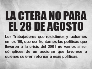 La Junta Ejecutiva de CTERA, adherida a la CTA que conduce Hugo Yasky, informa a sus afiliados que no adhiere a la medida de acción dispuesta para el 28 de agosto.