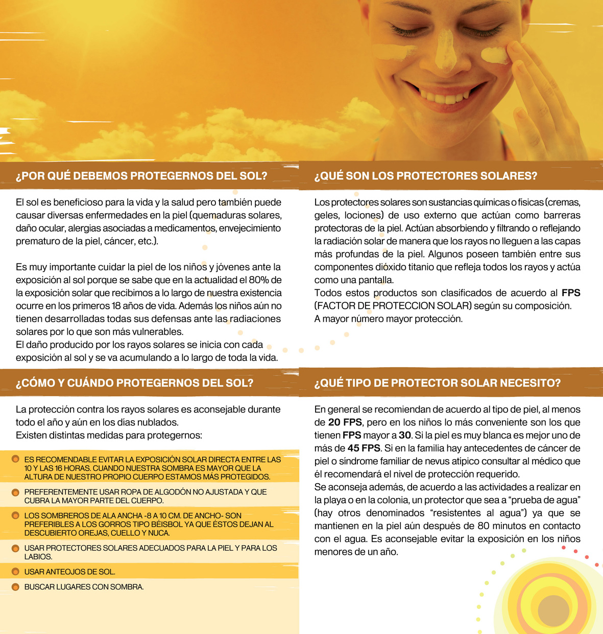 El sol es beneficioso para la vida y la salud pero también puede causar diversas enfermedades en la piel (quemaduras solares, daño ocular, alergias asociadas a medicamentos, envejecimiento prematuro de la piel, cáncer, etc.).