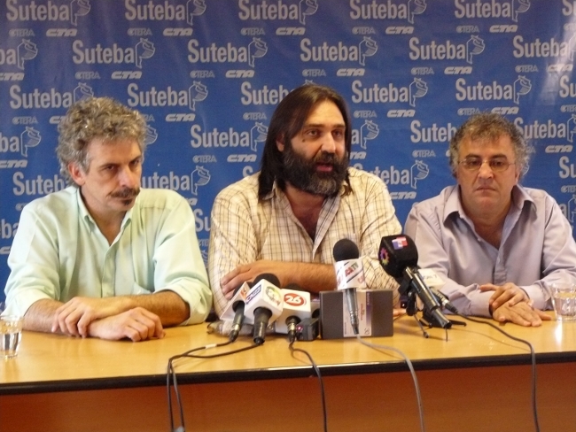 En conferencia de prensa realizada en la sede del SUTEBA, Piedras 740, Capital Federal, Baradel estuvo acompañado por el Secretario Adjunto de la Asociación Judicial Bonaerense (AJB) y Adjunto de la CTA Pcia. De Buenos Aires Daniel Pérez Guillén,y el Secretario General de ATE Zona Norte y Adjunto de la CTA bonaerense Fabián Alessandrini.