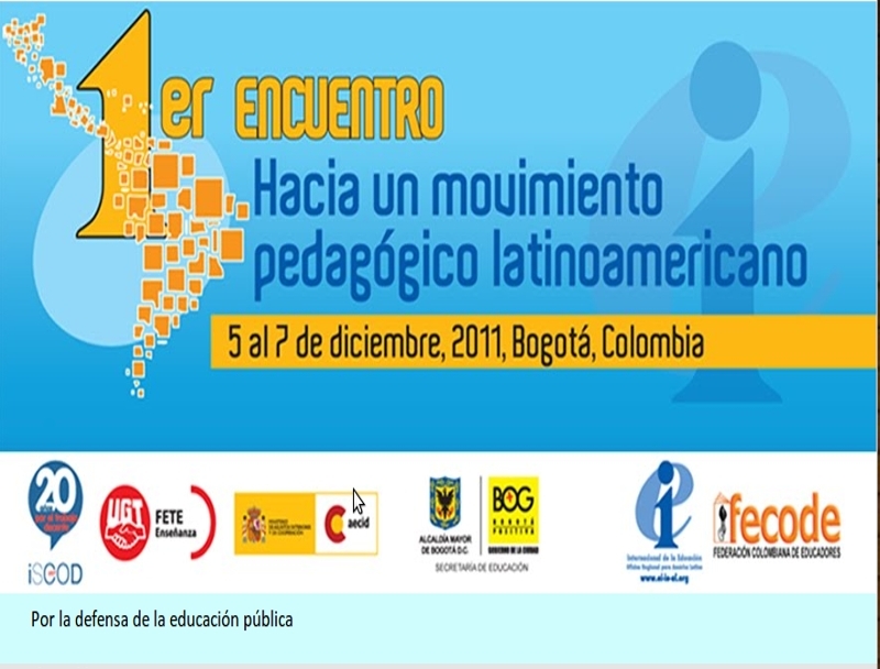 El Comité Regional de la Internacional de la Educación para América Latina, y las organizaciones participantes, en el Primer Encuentro: Hacia un Movimiento Pedagógico Latinoamericano, reunidas en Bogotá, Colombia entre el 5 y 7 de diciembre del 2011, declaramos: