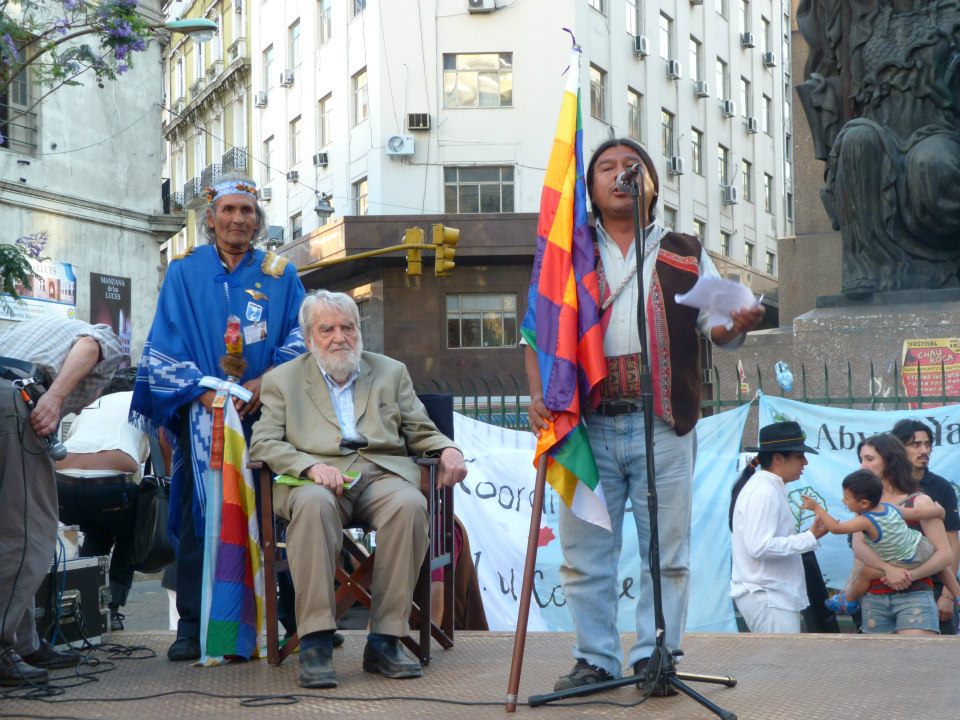 Don Osvaldo Bayer junto a Silvia Almazán y los representantes de los Pueblos Originarios, dieron el cierre a esta extraordinaria jornada de lucha, concientización y militancia.