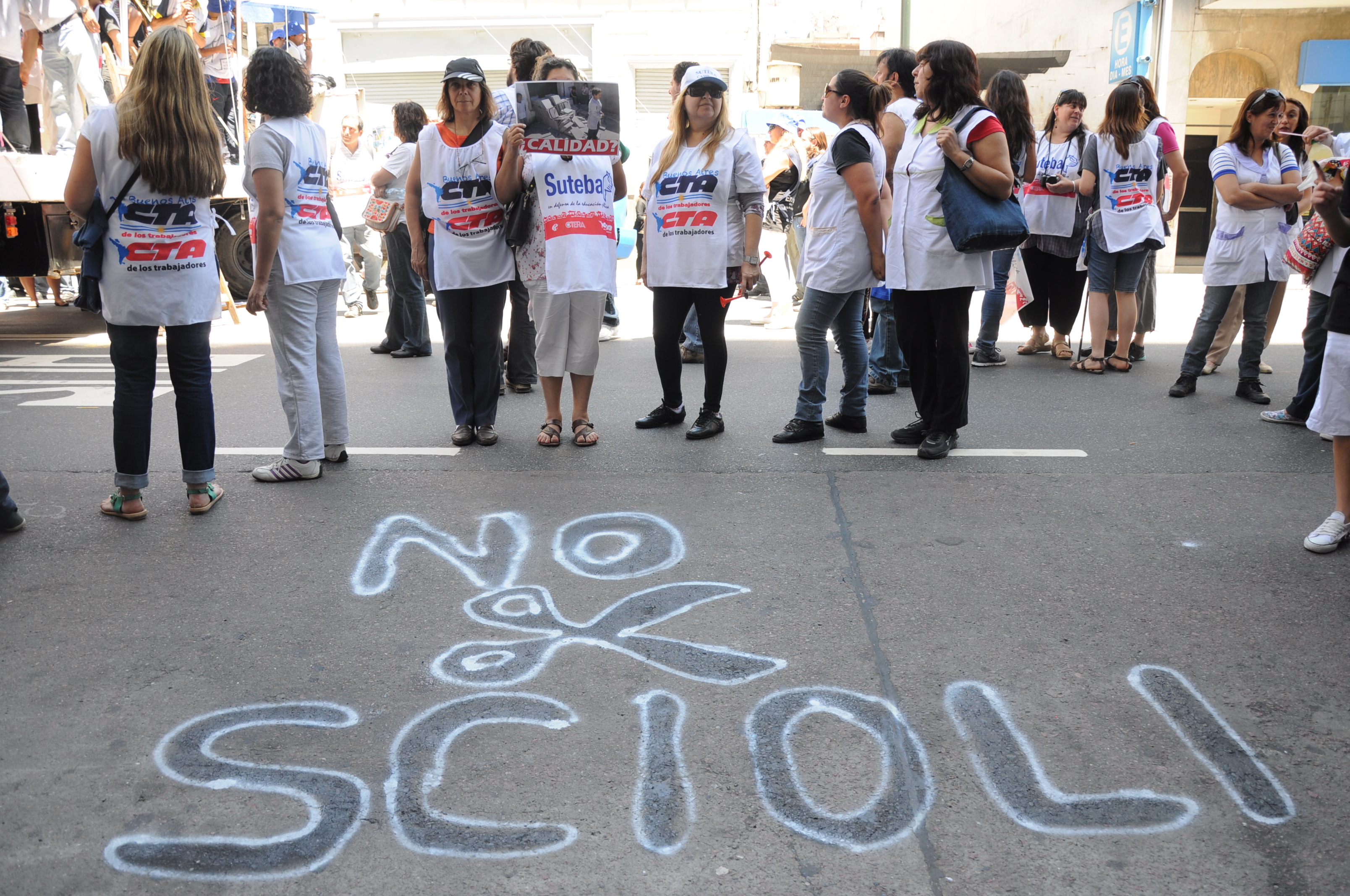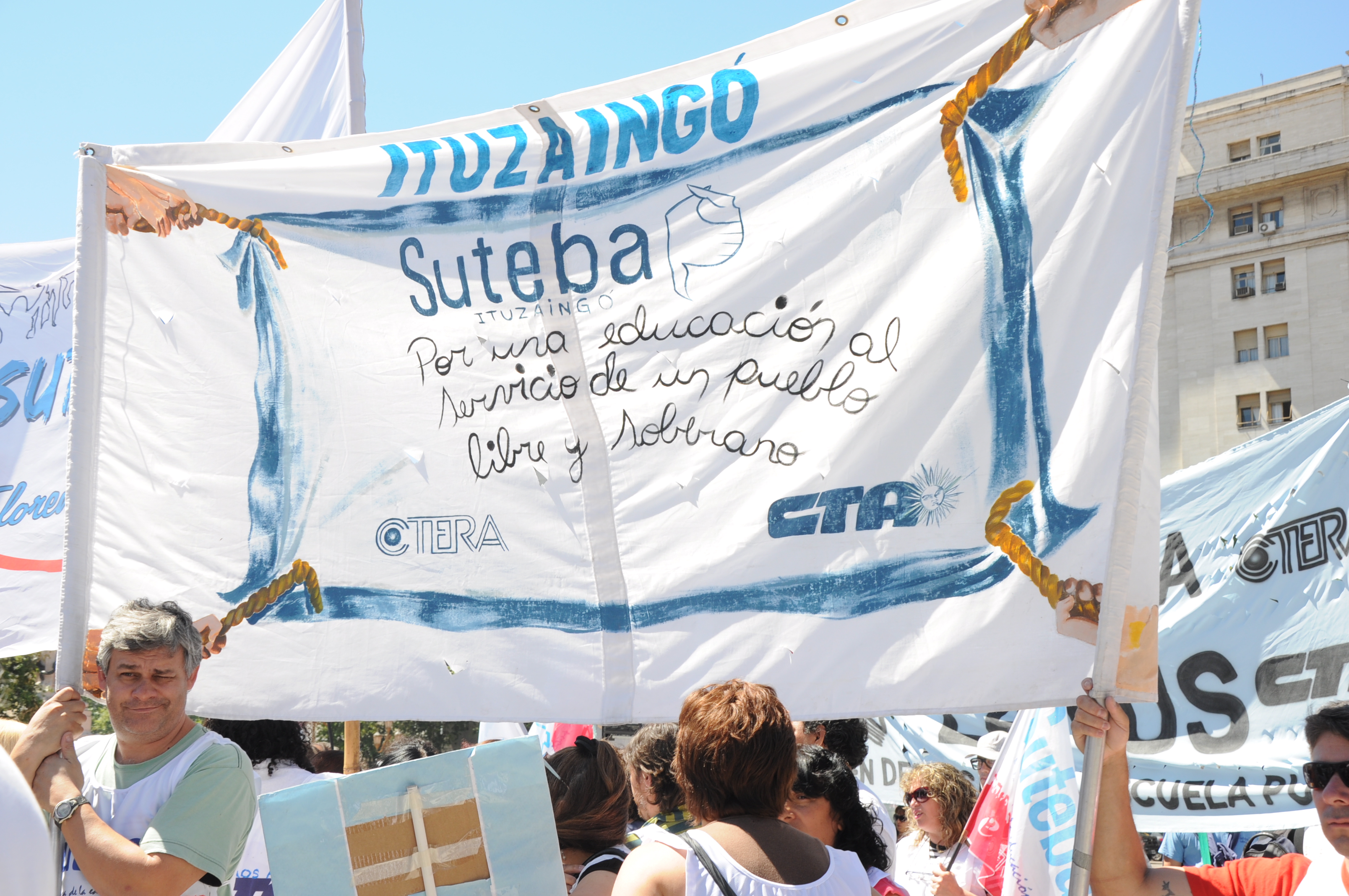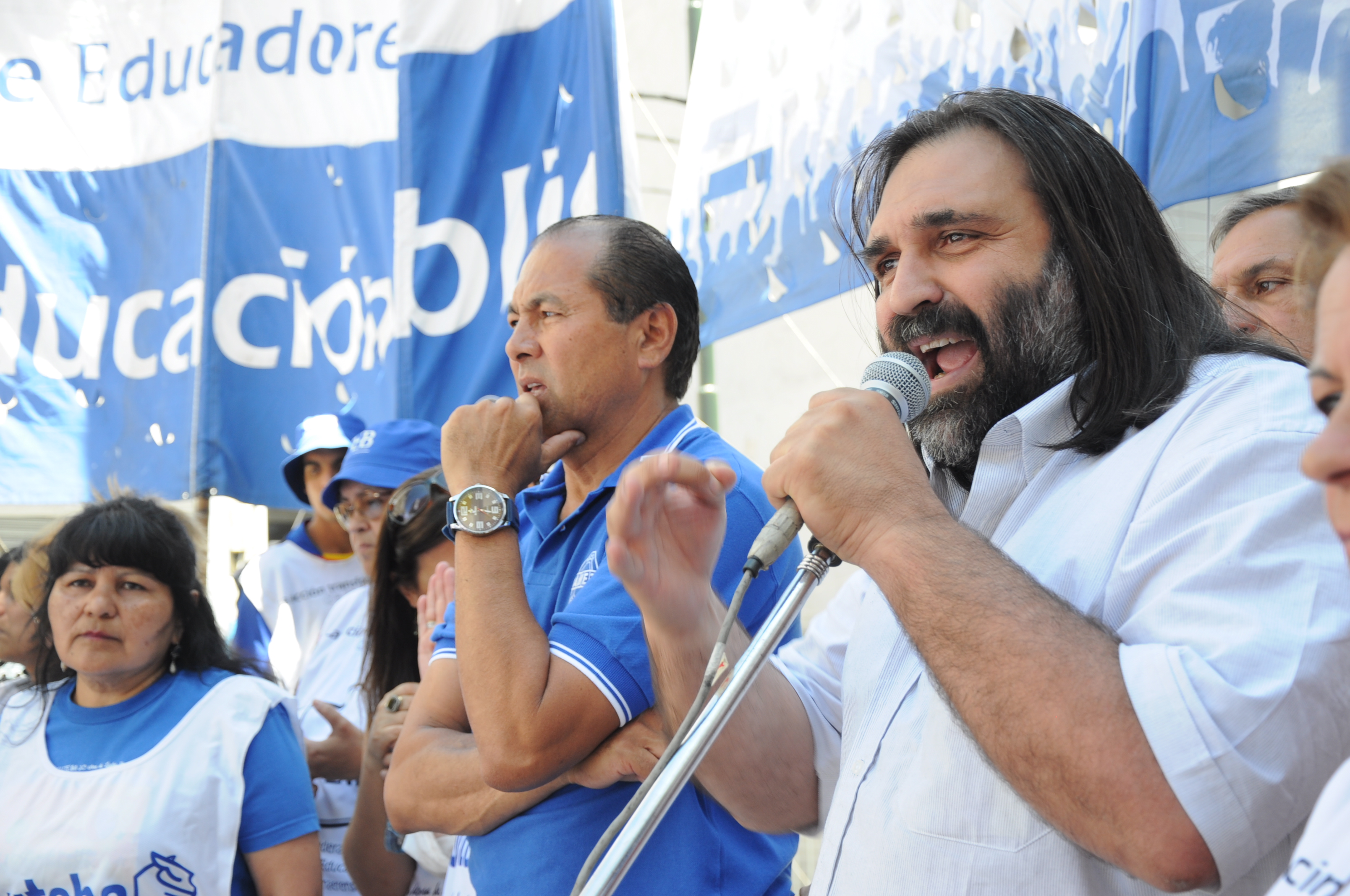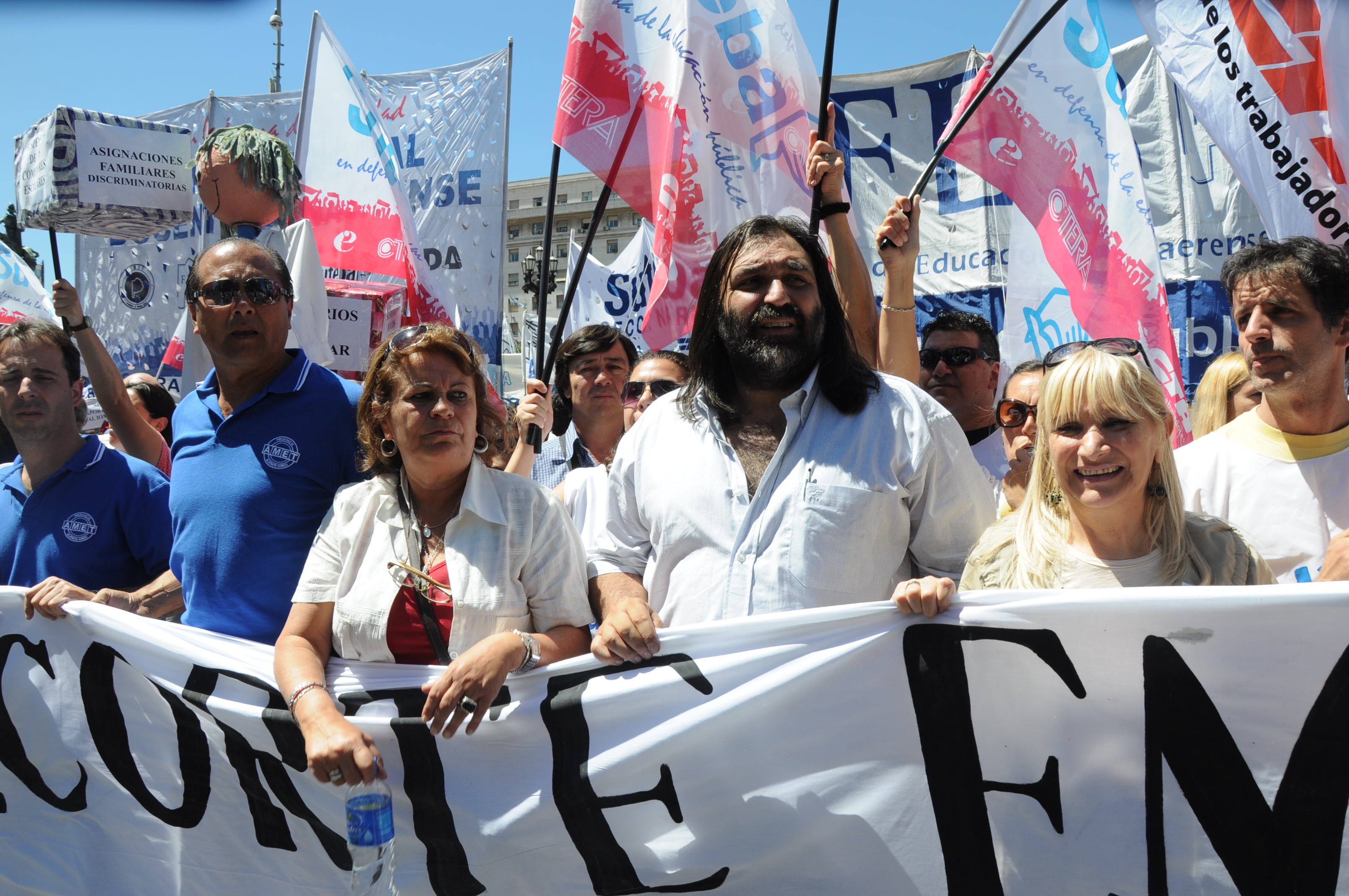 Por eso, Baradel insistió: “Nosotros vamos a seguir movilizados mientras intenten recortar el presupuesto a la educación, mientras no nos devuelvan los descuentos, mientras no le paguen a cada uno y hasta el último de los docentes, mientras no den respuesta plena en la paritaria salarial y vamos a seguir movilizados hasta que resuelvan el tema de las Asignaciones Familiares”.
