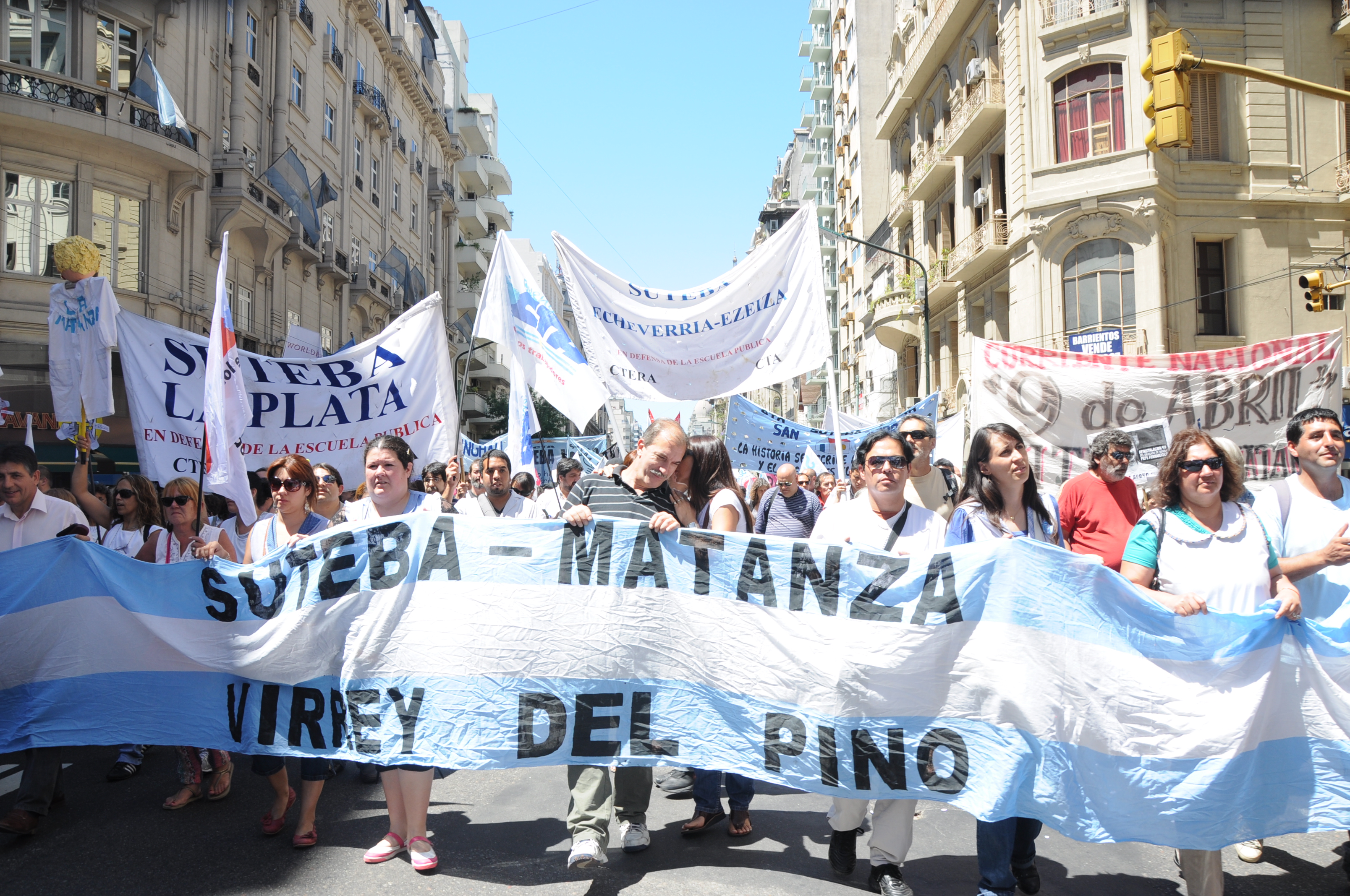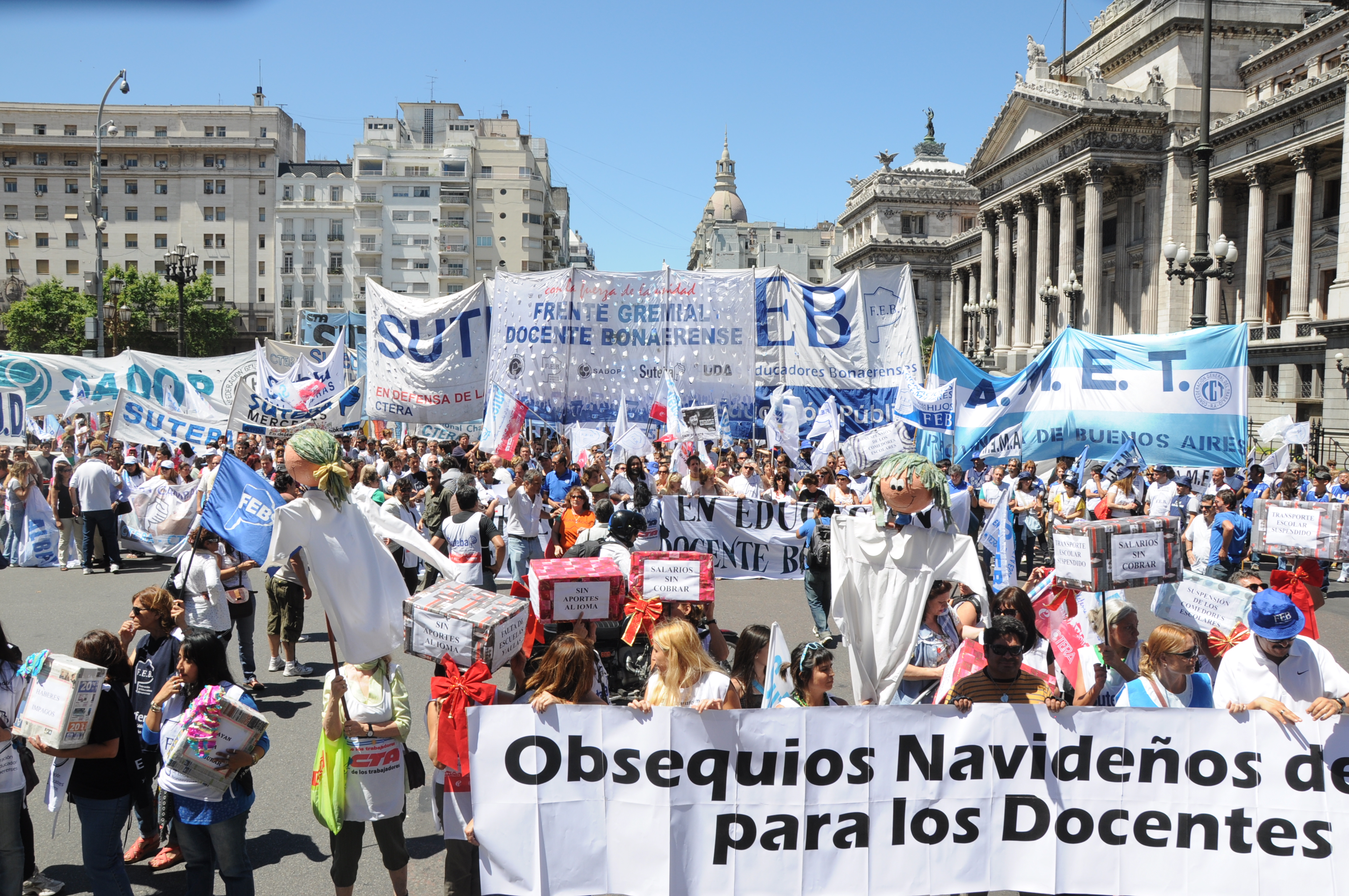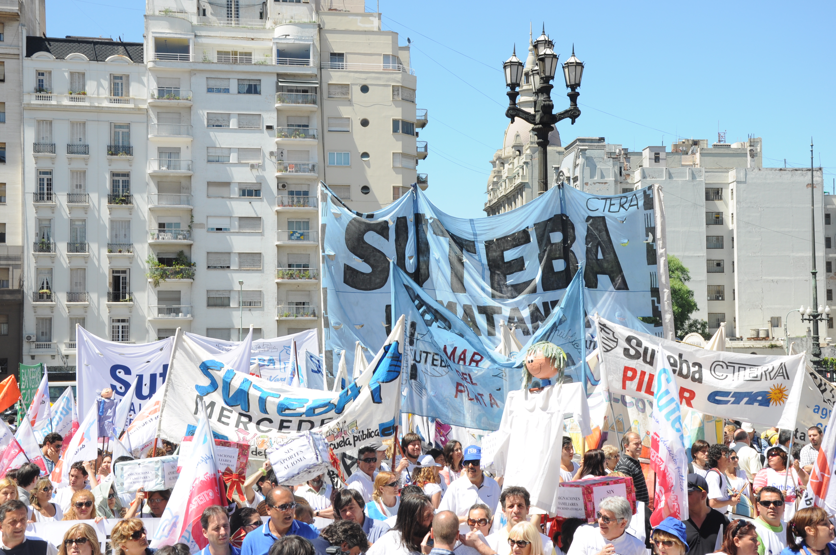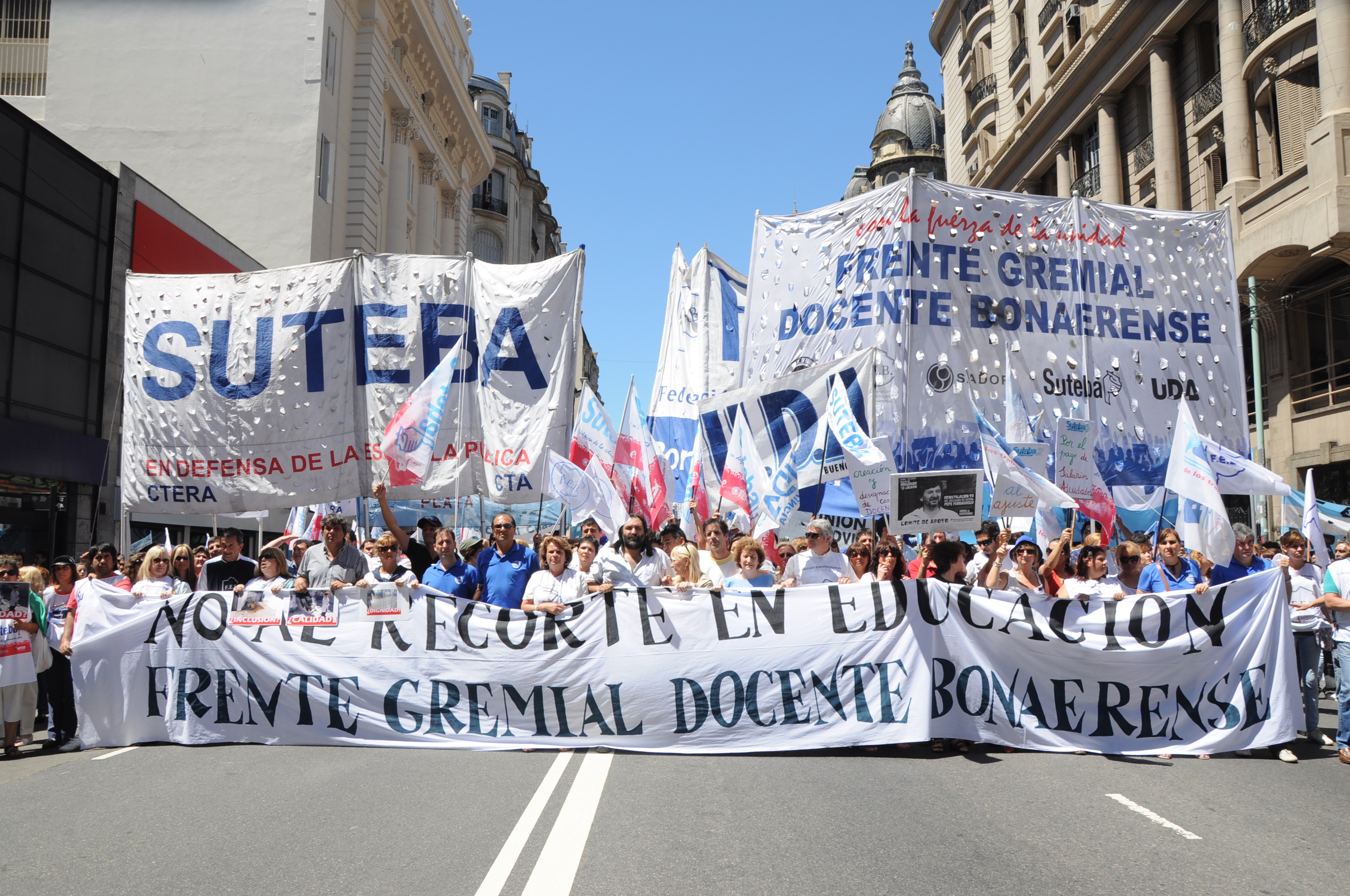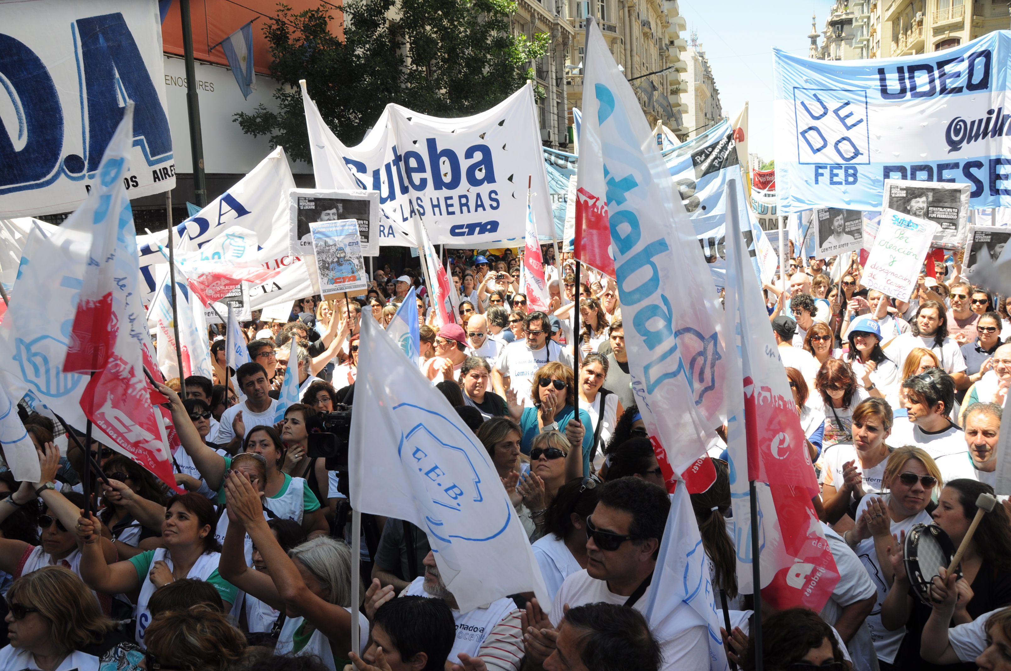 11/12/12 Una enorme columna de trabajadores del SUTEBA y de los gremios que integran el Frente Gremial Docente Bonaerense (AMET, FEB, SADOP y UDA), se concentró frente al Congreso y marchó hacia la Casa de la Provincia de Buenos Aires.