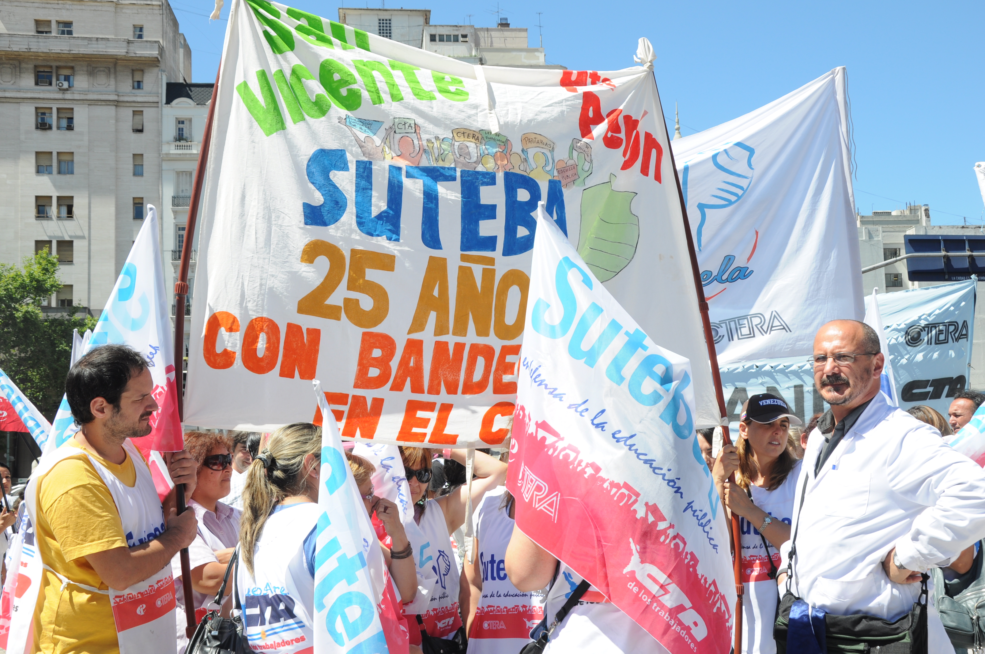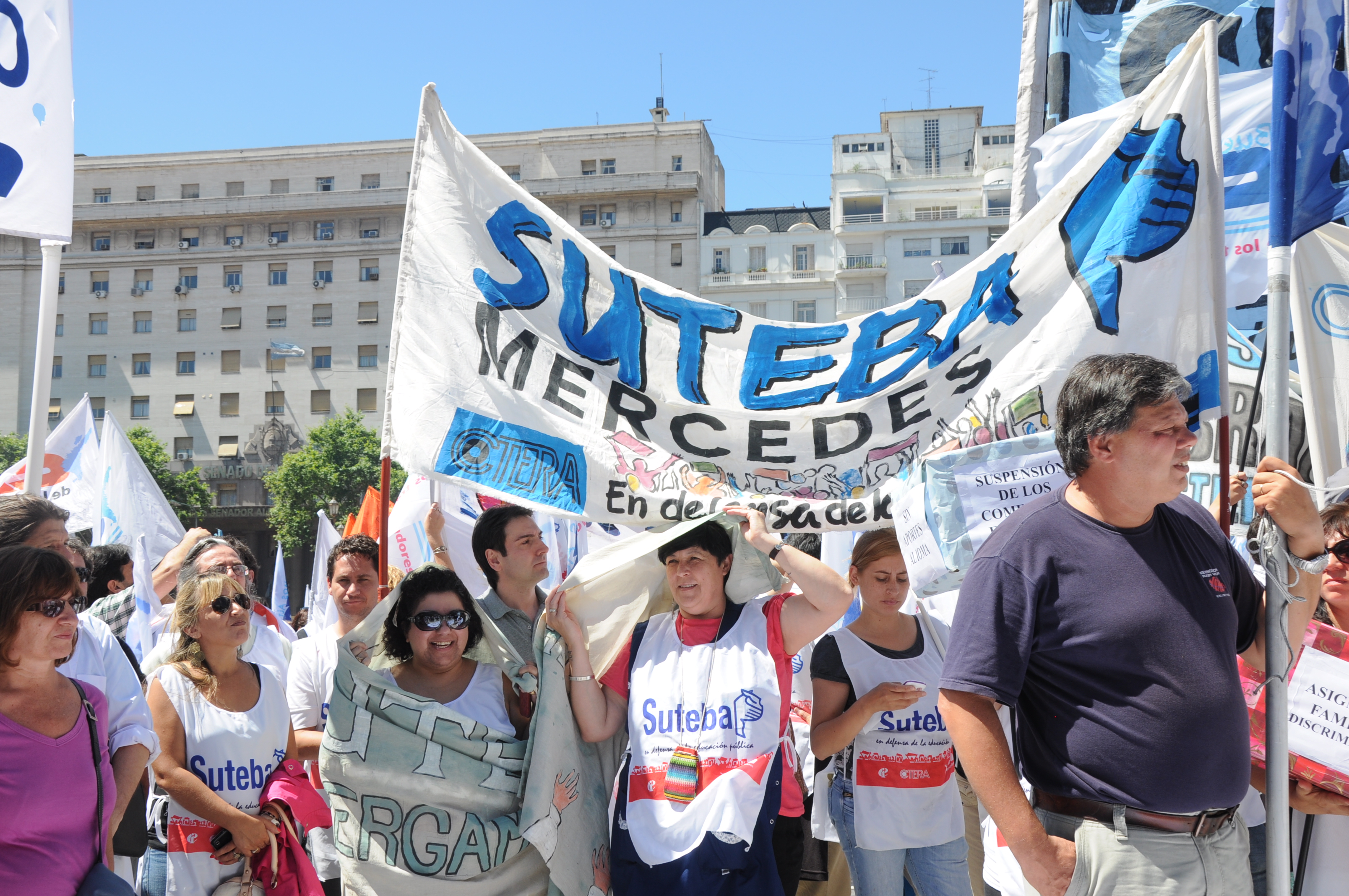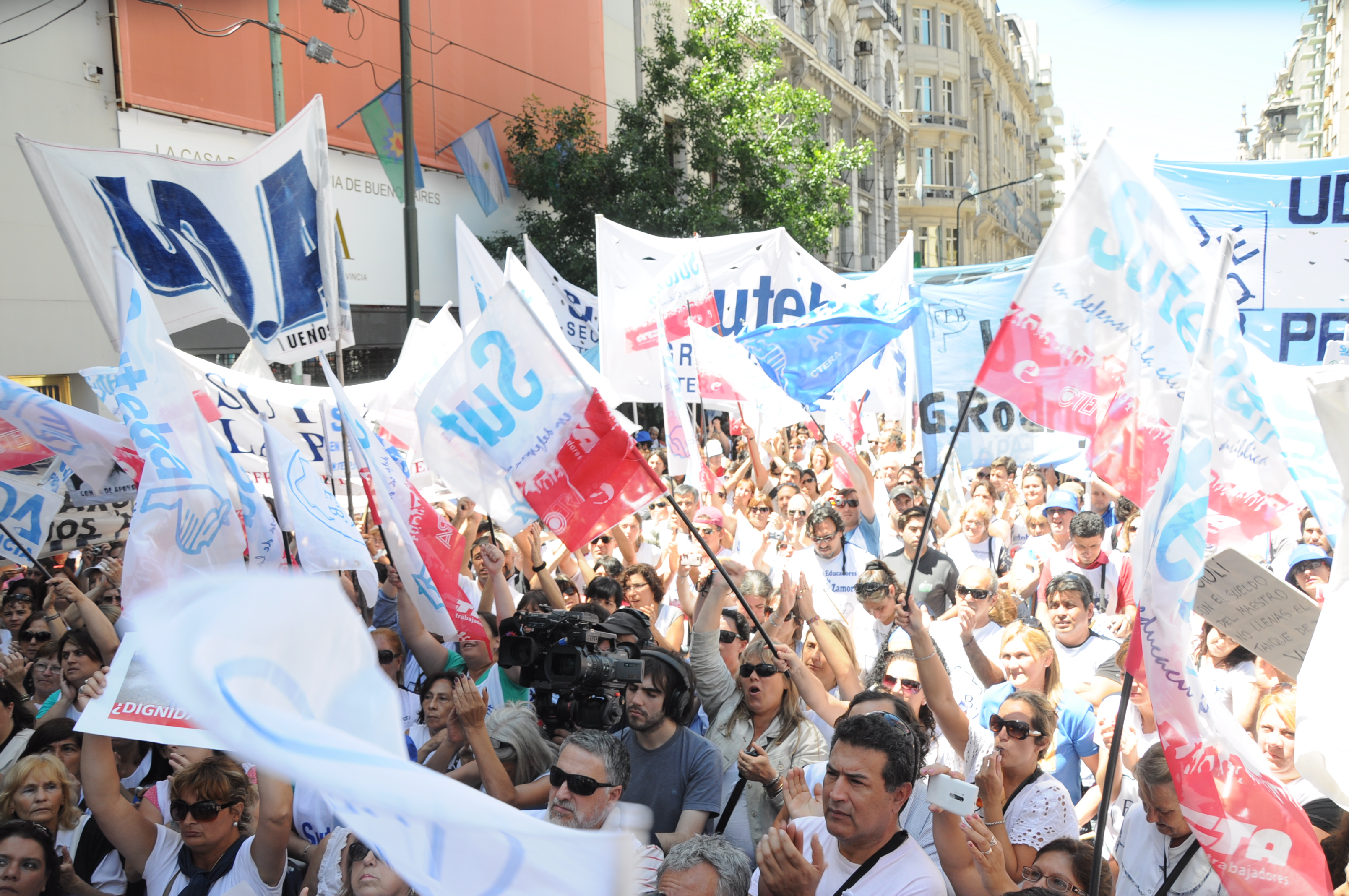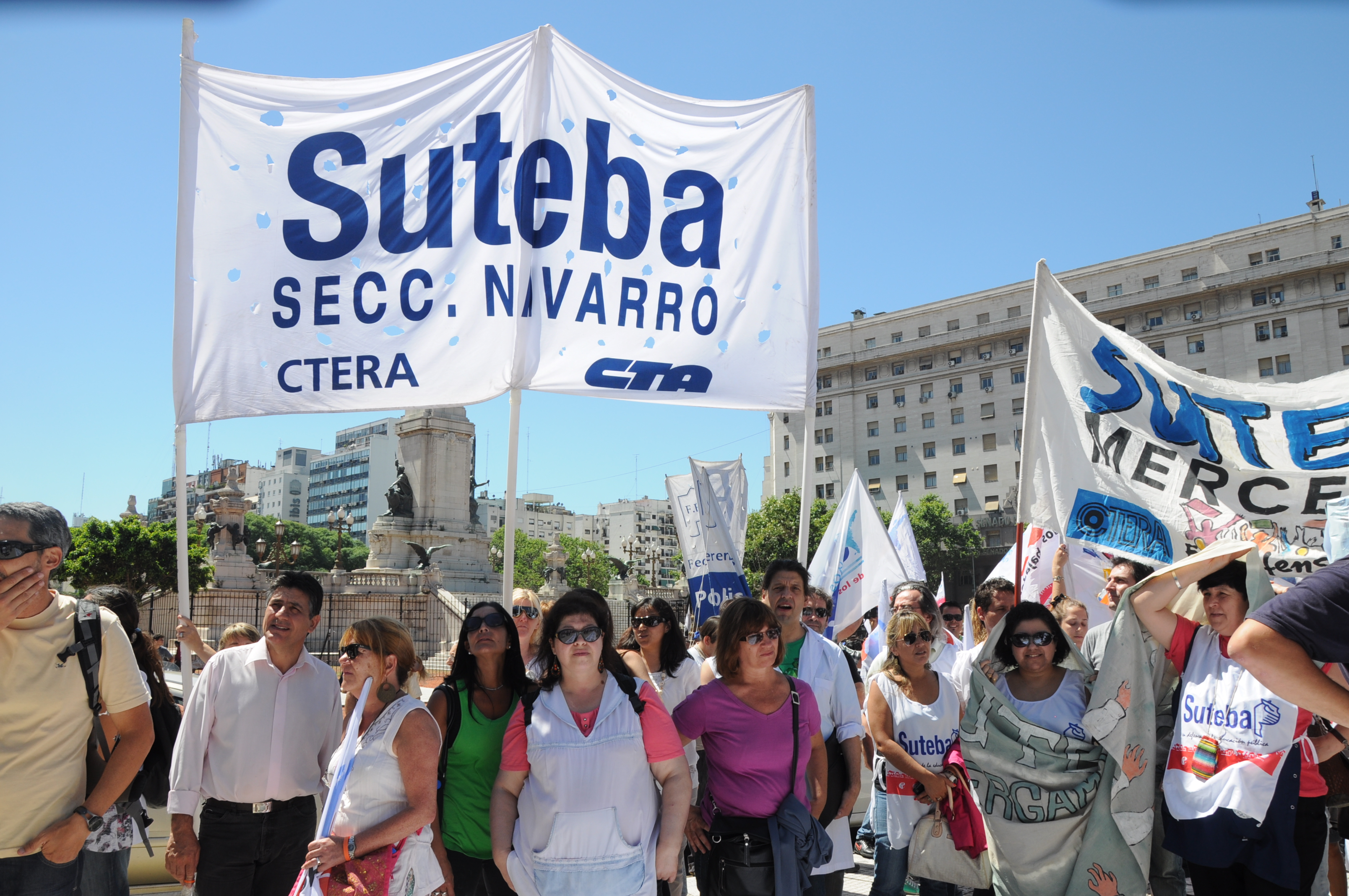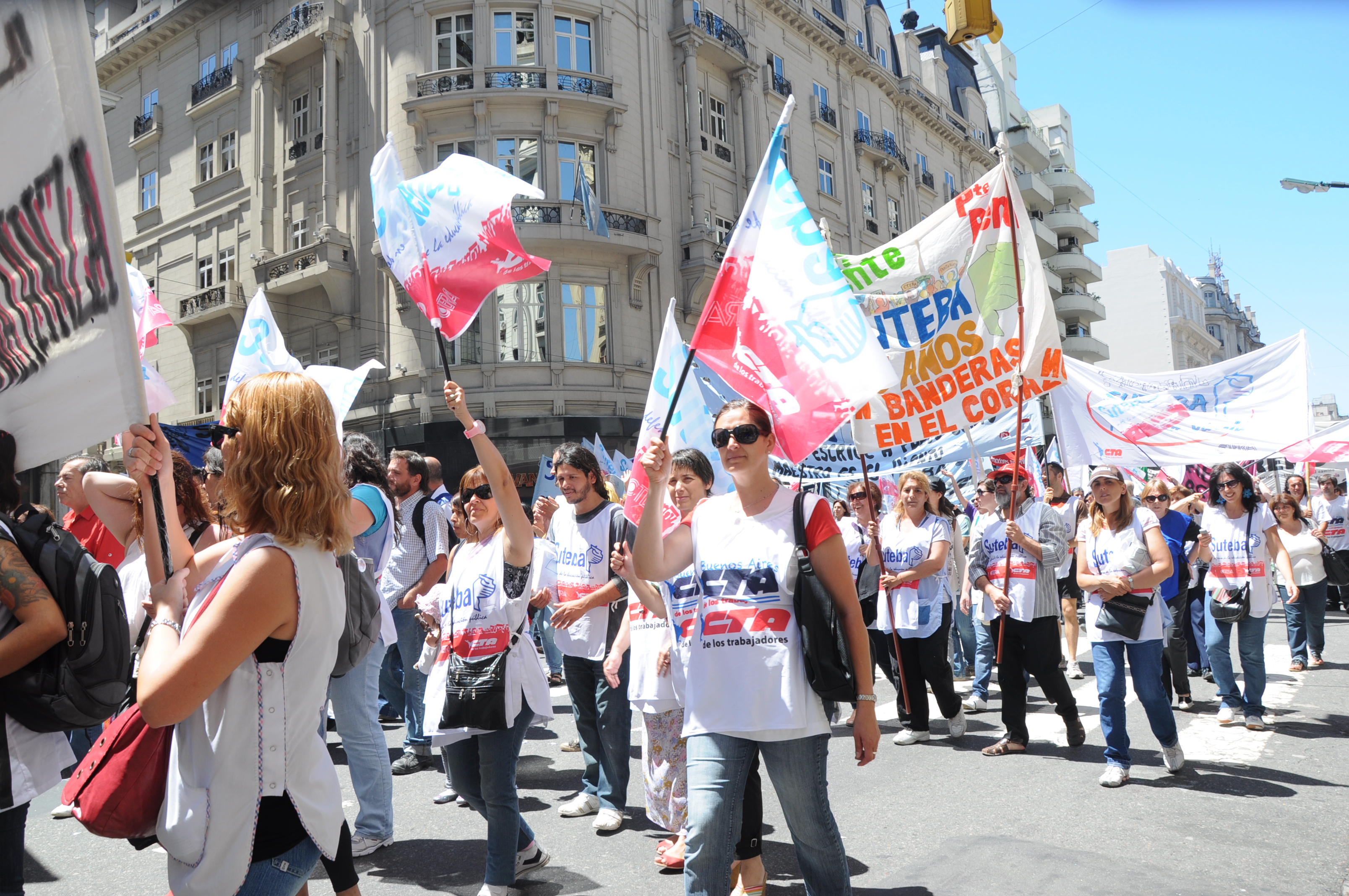 11/12/12 Una enorme columna de trabajadores del SUTEBA y de los gremios que integran el Frente Gremial Docente Bonaerense (AMET, FEB, SADOP y UDA), se concentró frente al Congreso y marchó hacia la Casa de la Provincia de Buenos Aires.