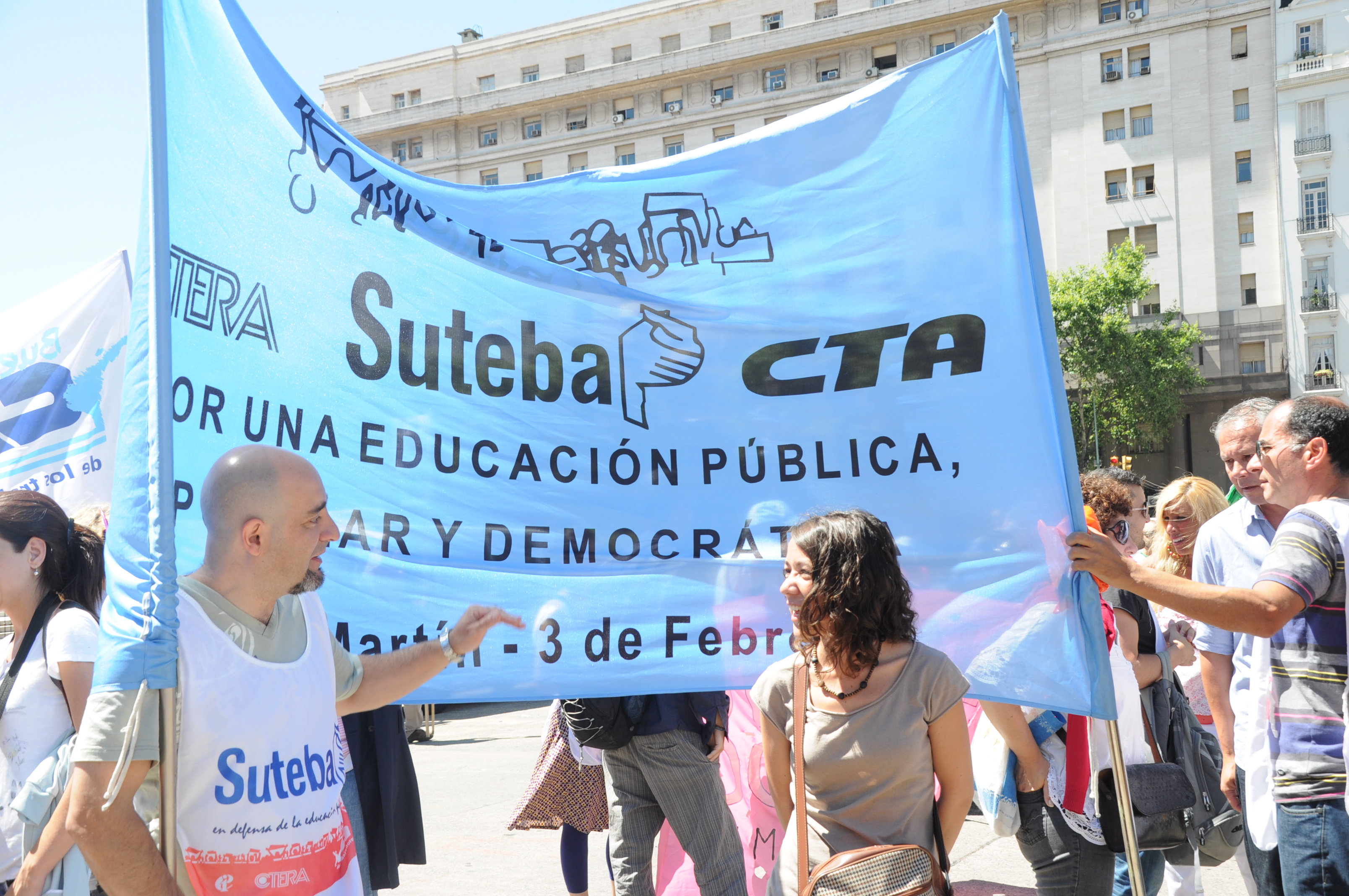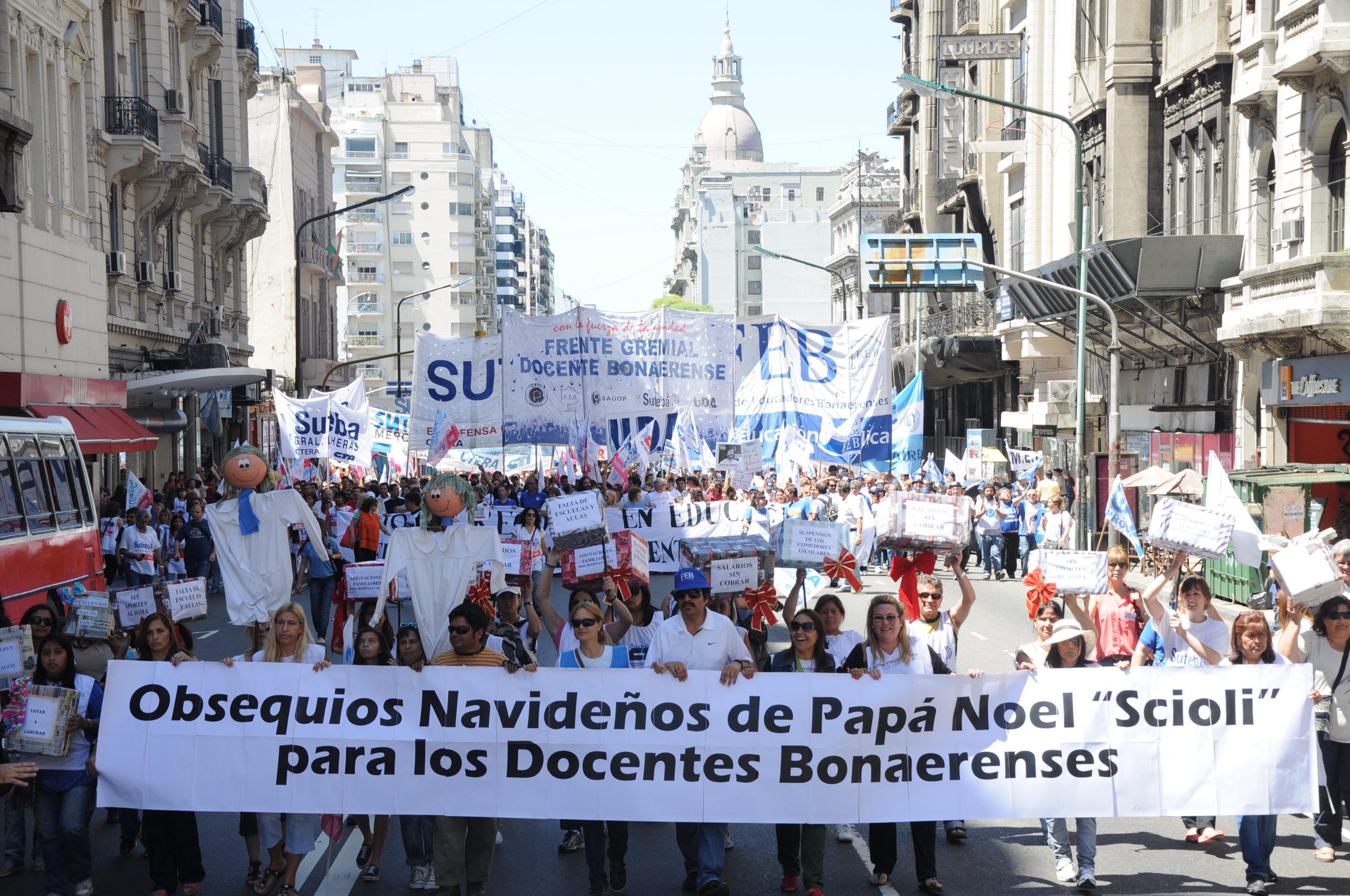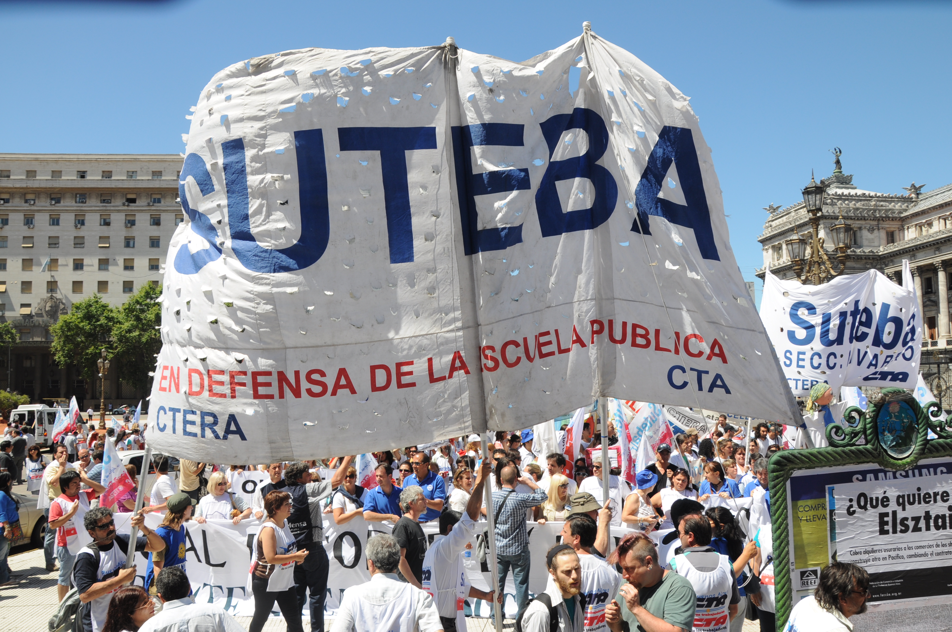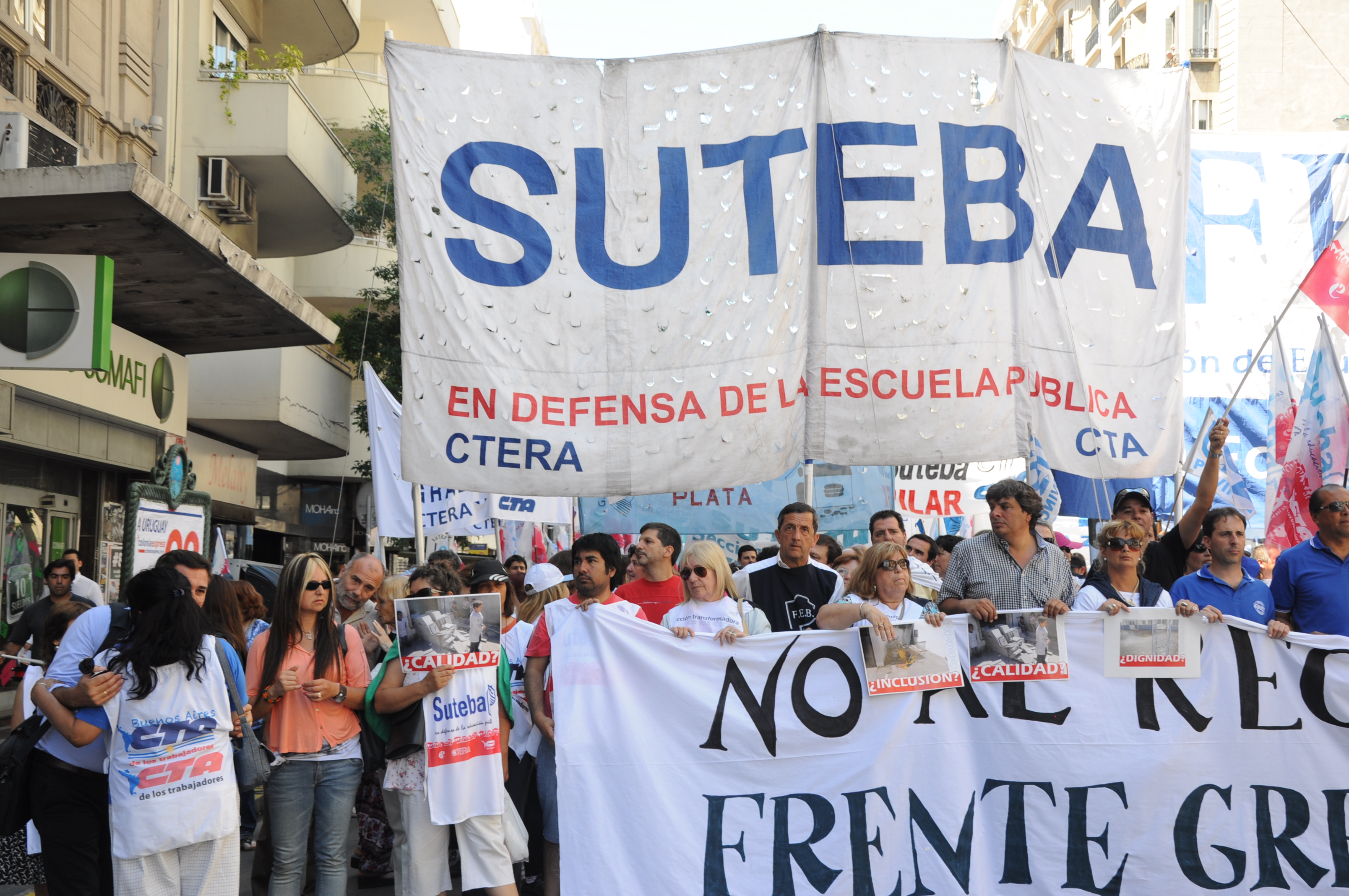 11/12/12 Una enorme columna de trabajadores del SUTEBA y de los gremios que integran el Frente Gremial Docente Bonaerense (AMET, FEB, SADOP y UDA), se concentró frente al Congreso y marchó hacia la Casa de la Provincia de Buenos Aires.