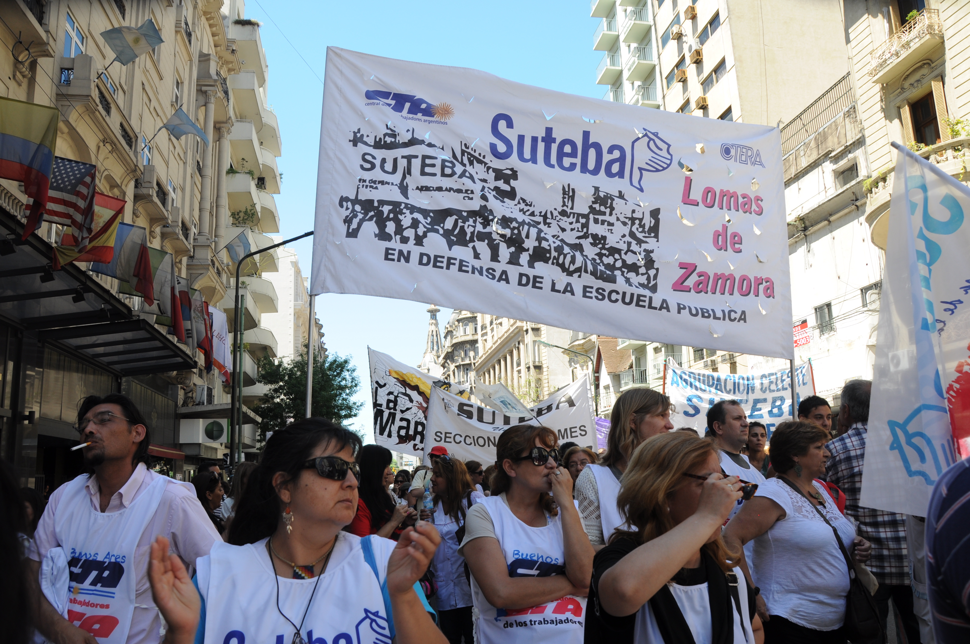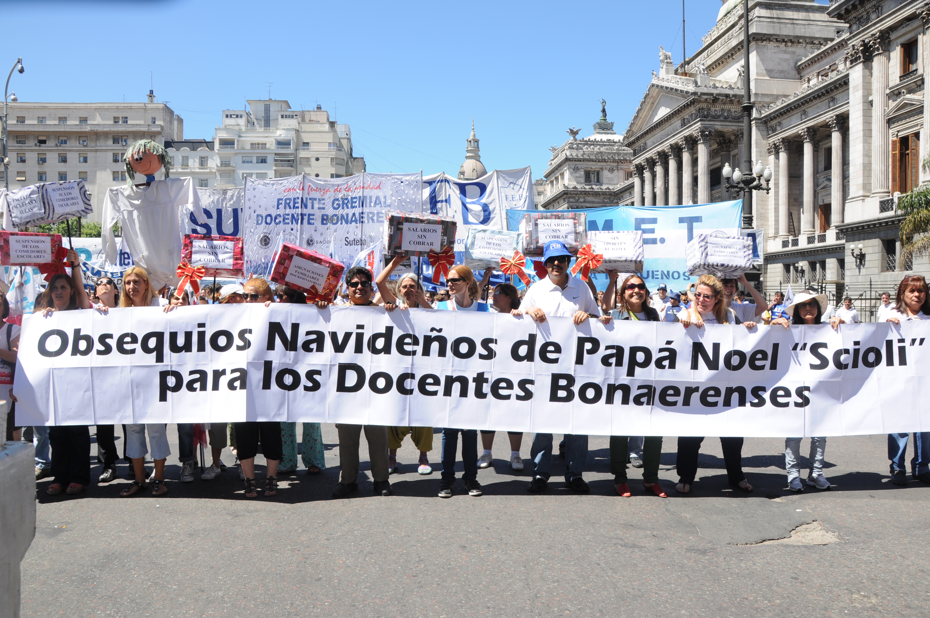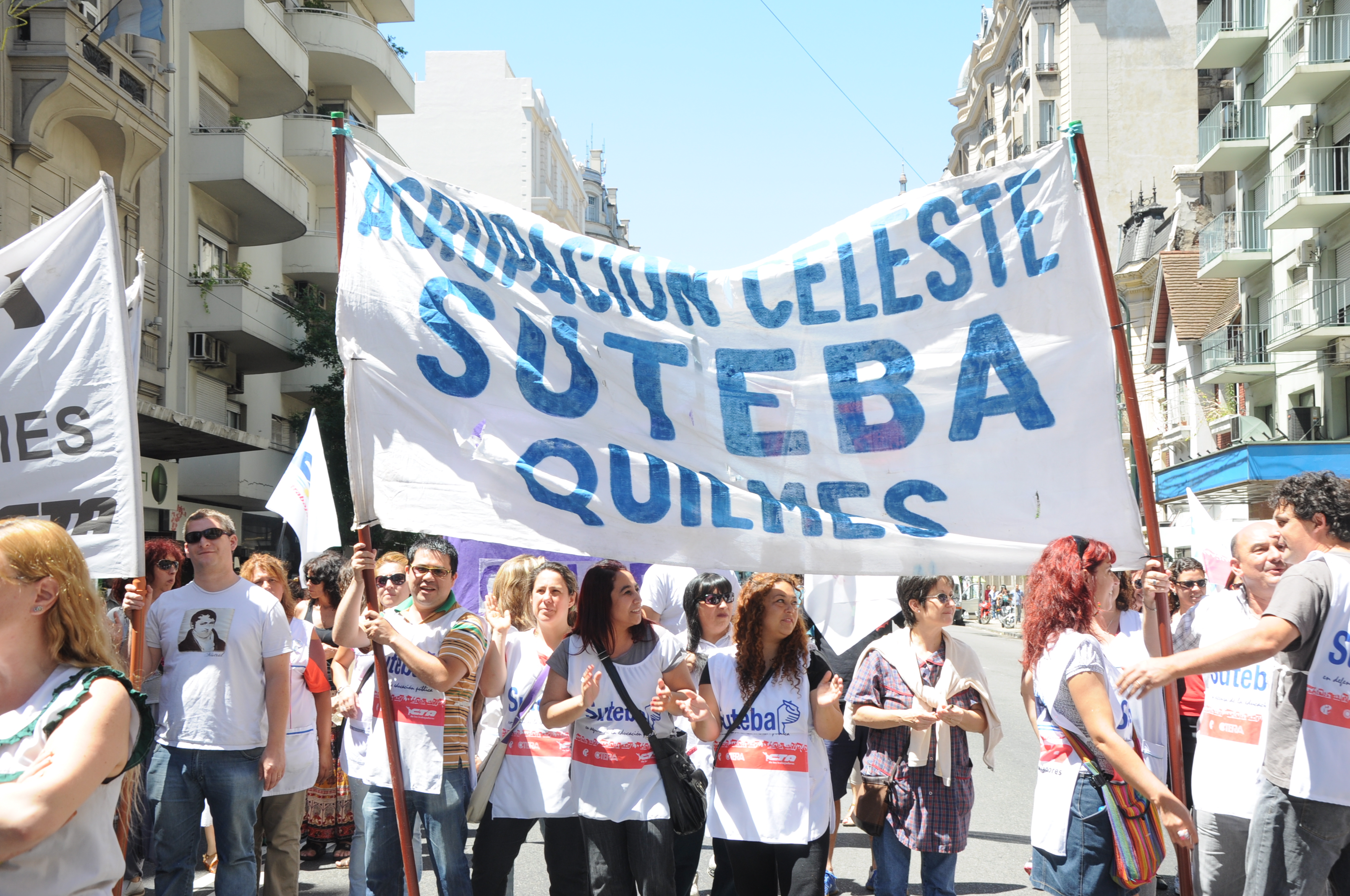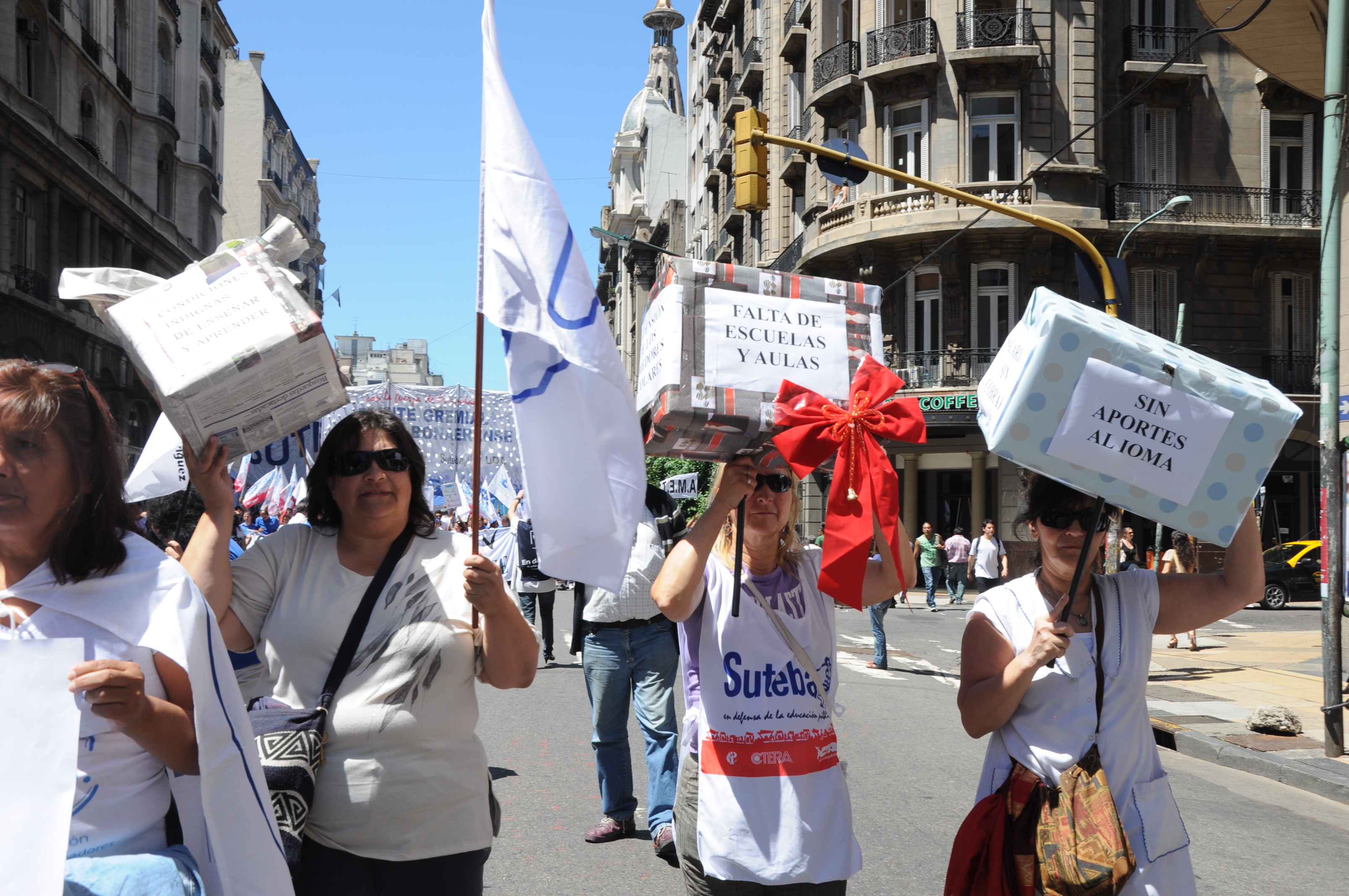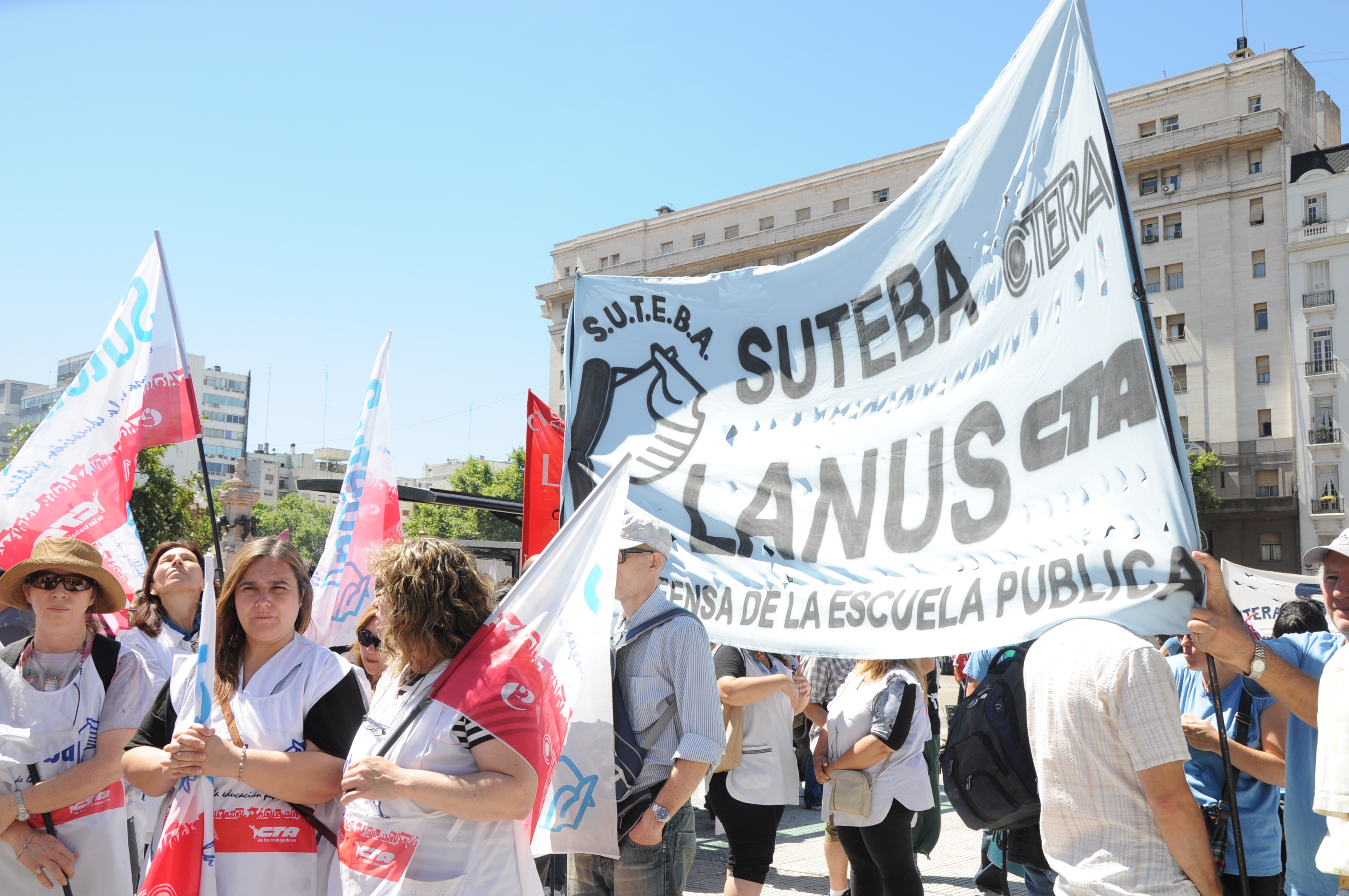 11/12/12 Una enorme columna de trabajadores del SUTEBA y de los gremios que integran el Frente Gremial Docente Bonaerense (AMET, FEB, SADOP y UDA), se concentró frente al Congreso y marchó hacia la Casa de la Provincia de Buenos Aires.