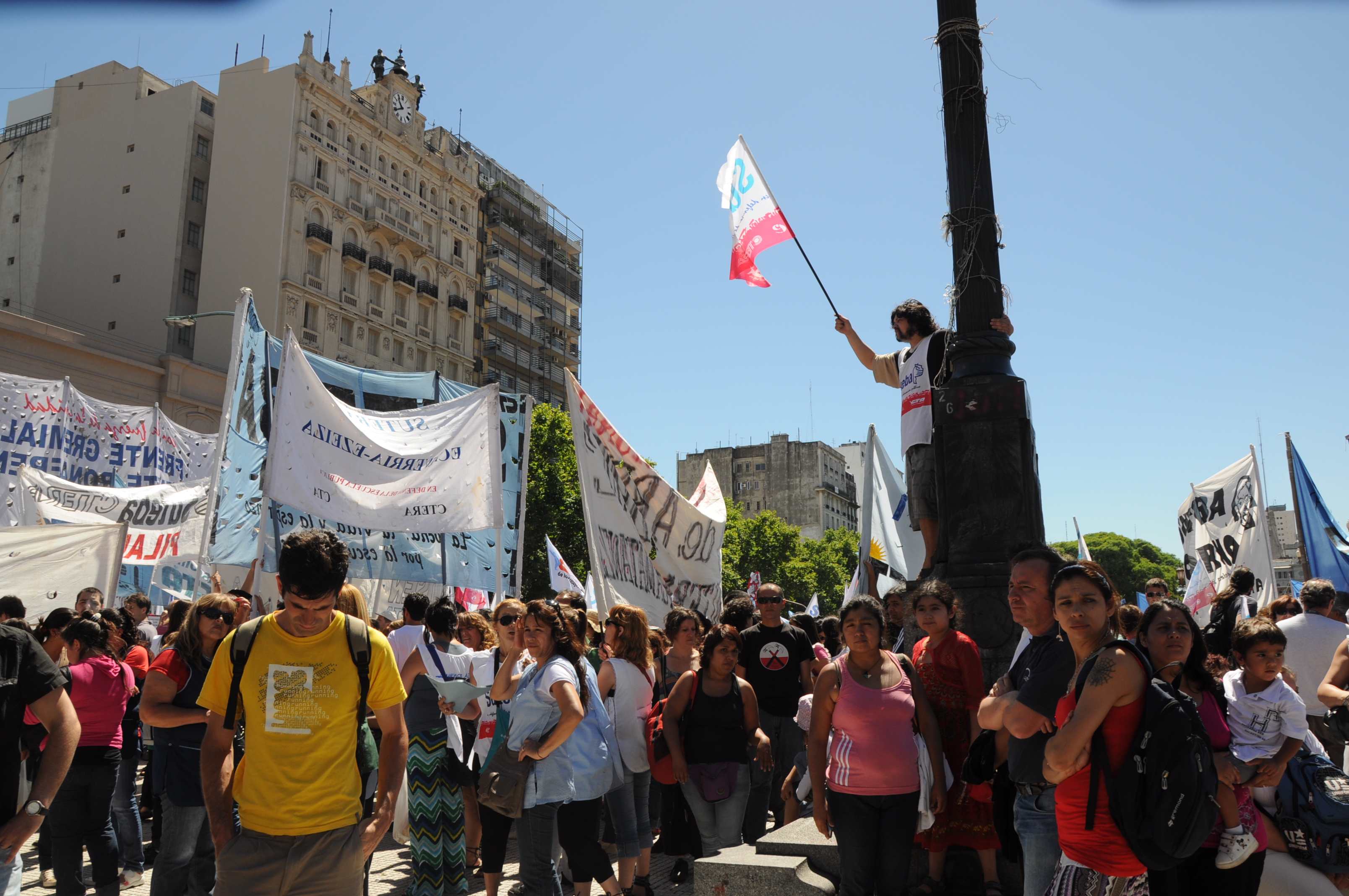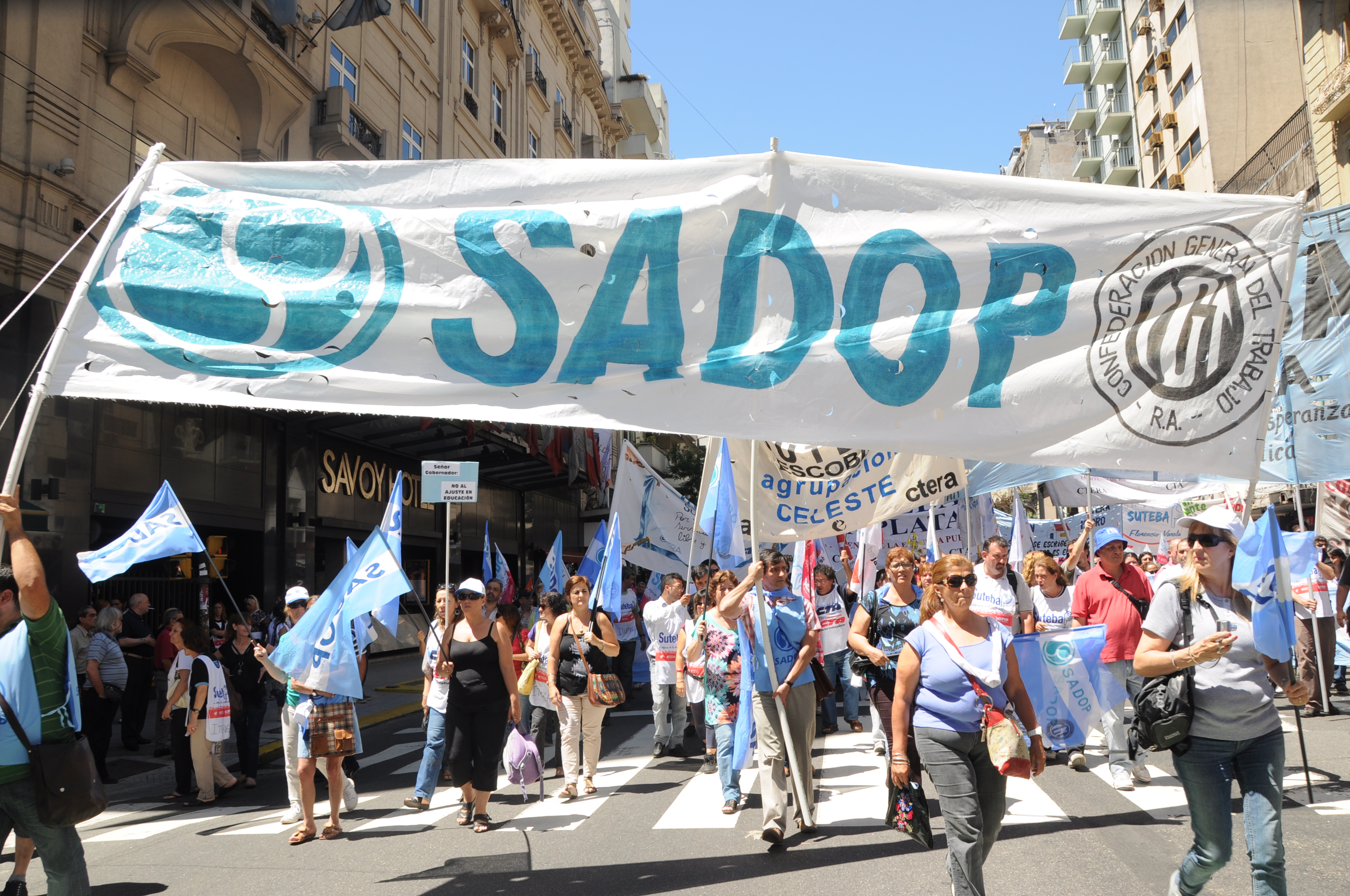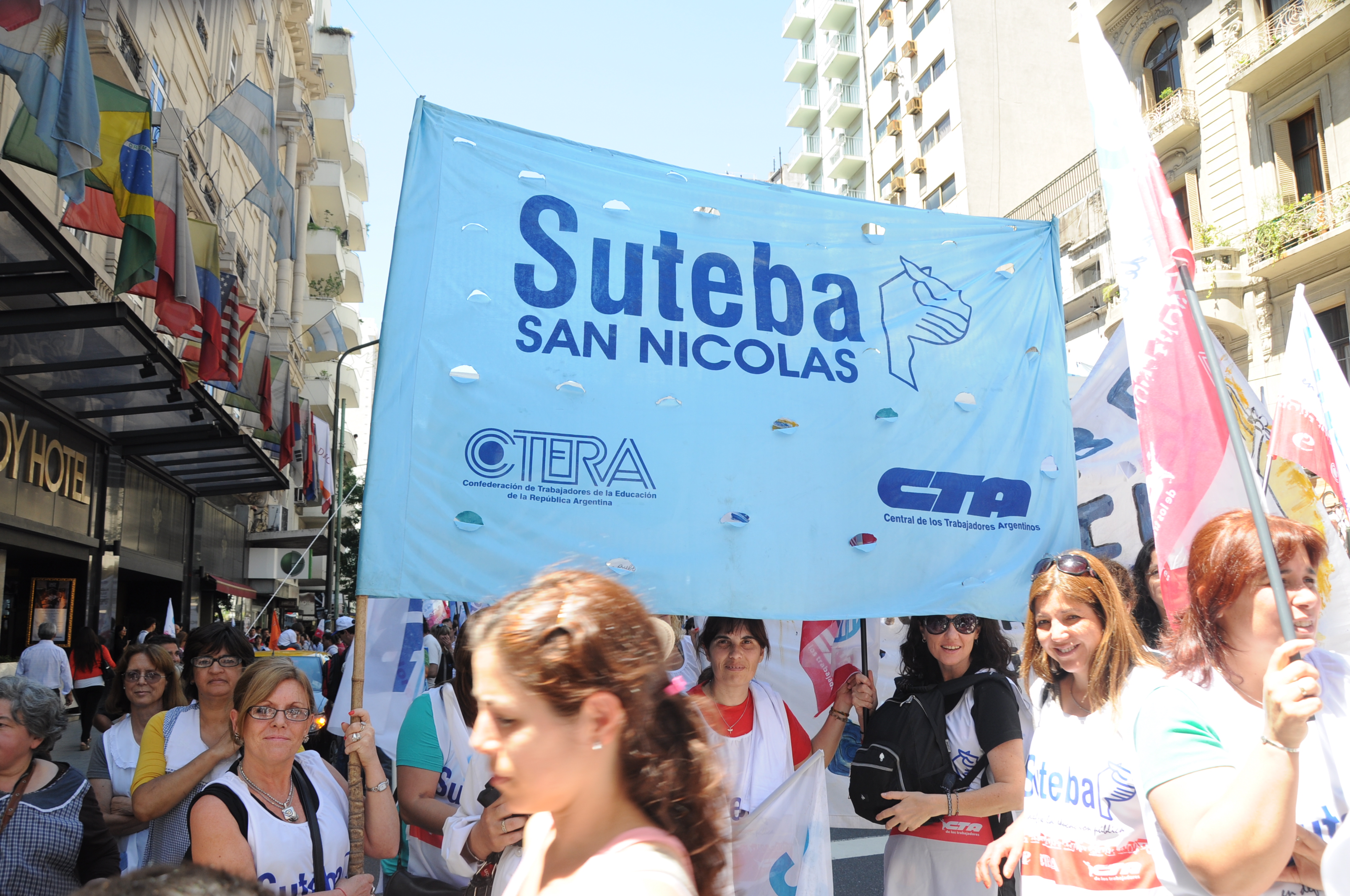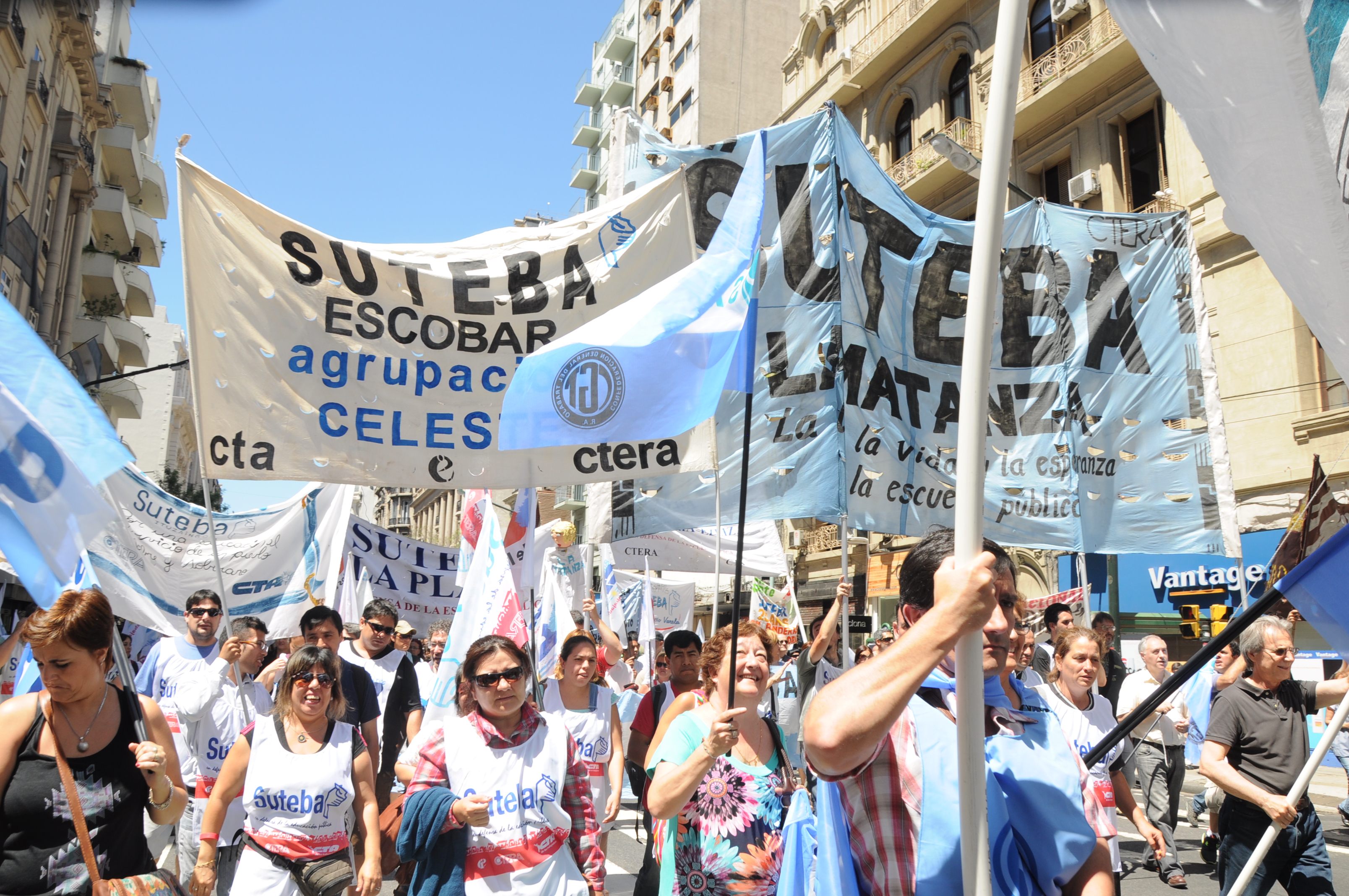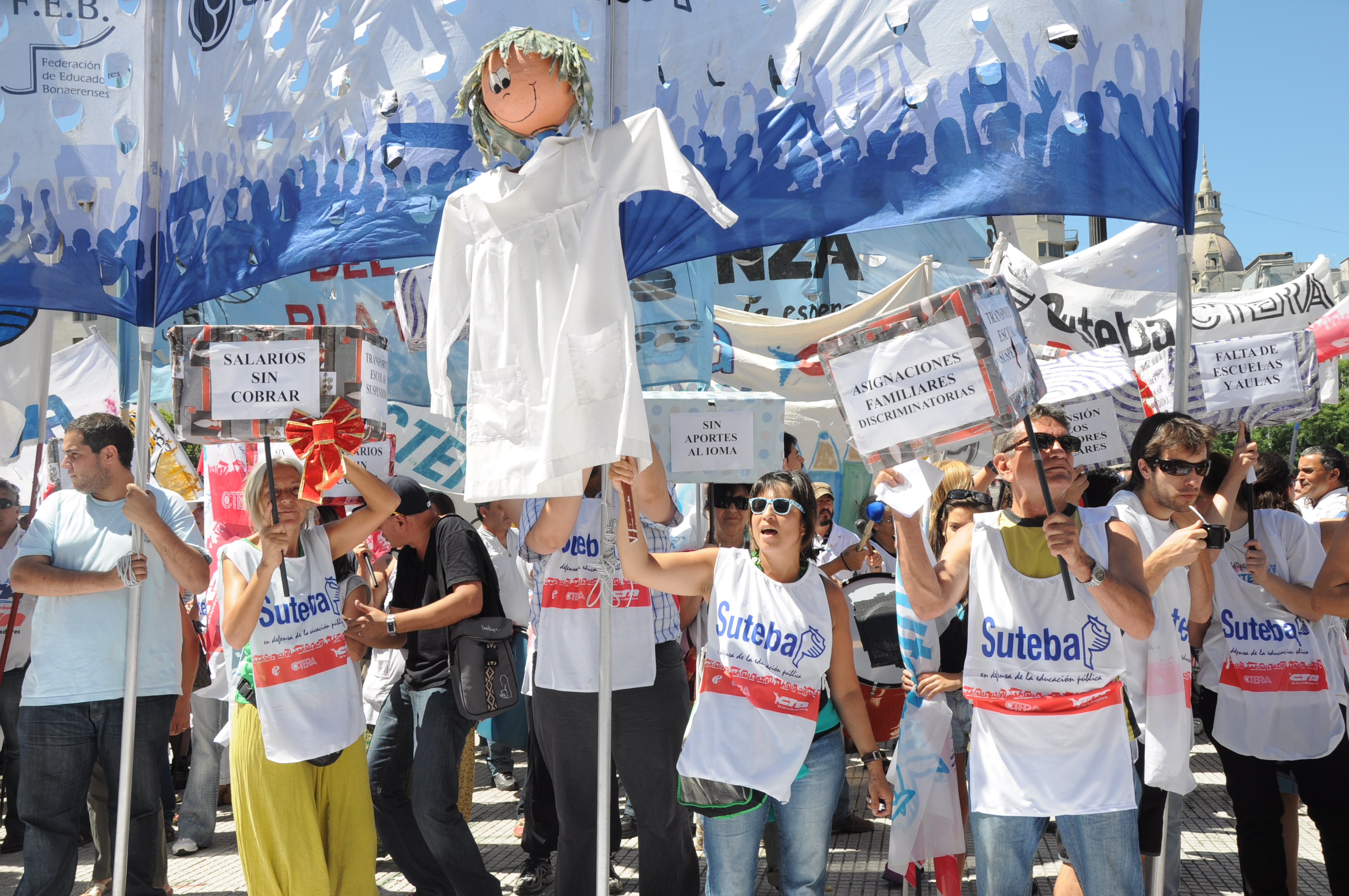 11/12/12 Una enorme columna de trabajadores del SUTEBA y de los gremios que integran el Frente Gremial Docente Bonaerense (AMET, FEB, SADOP y UDA), se concentró frente al Congreso y marchó hacia la Casa de la Provincia de Buenos Aires.