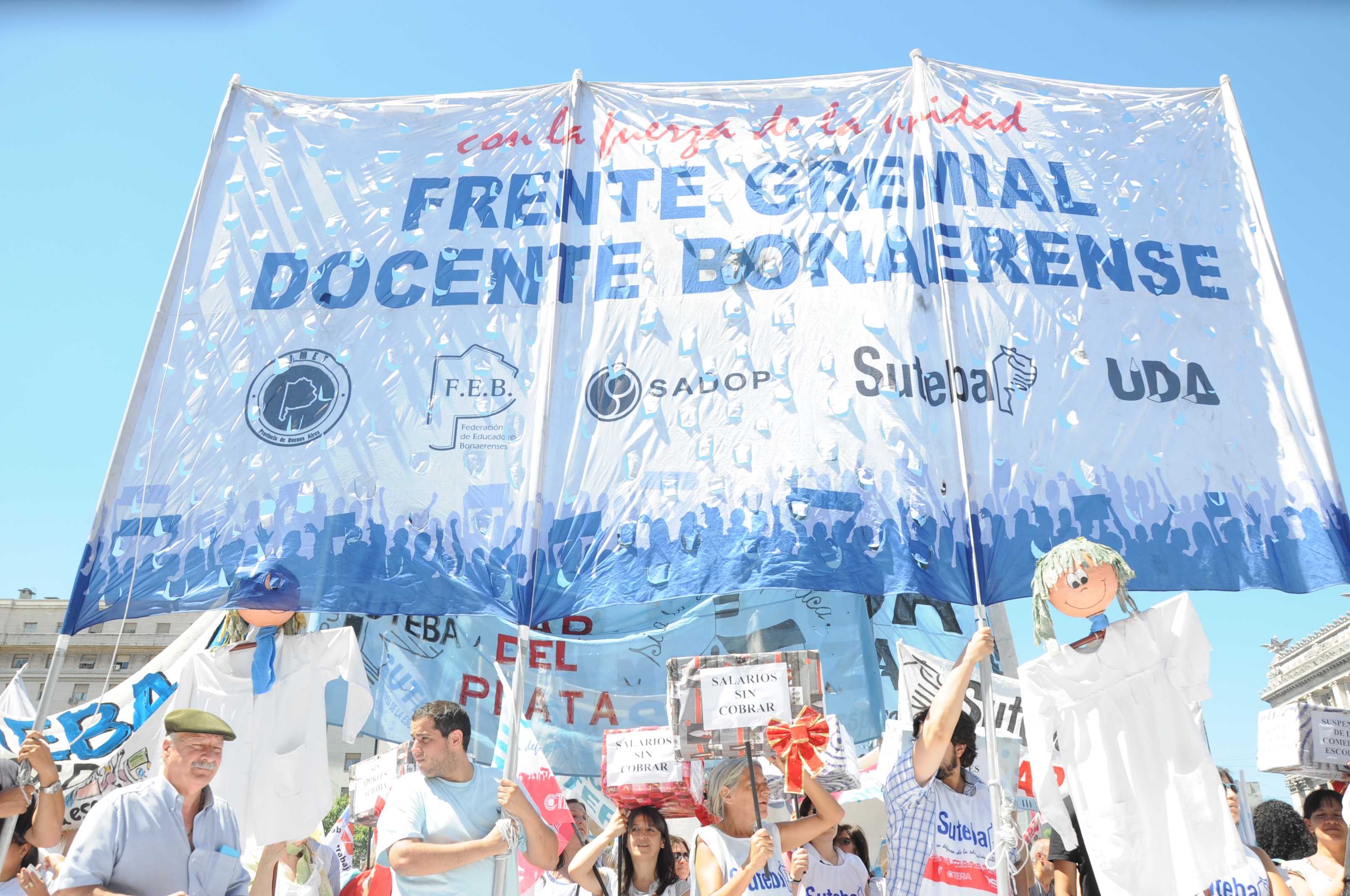 Cabe recordar que ayer, el FGDB se reunió con el gobernador Daniel Scioli, y planteó fuertemente la falta de respuesta a los reclamos de los docentes: Devolución inmediata del descuento ilegal e ilegítimo de los días de paro, pago del salario completo, Asignaciones Familiares, servicio de transporte escolar, Servicio Alimentario Escolar (SAE), infraestructura y convocatoria a la paritaria salarial.