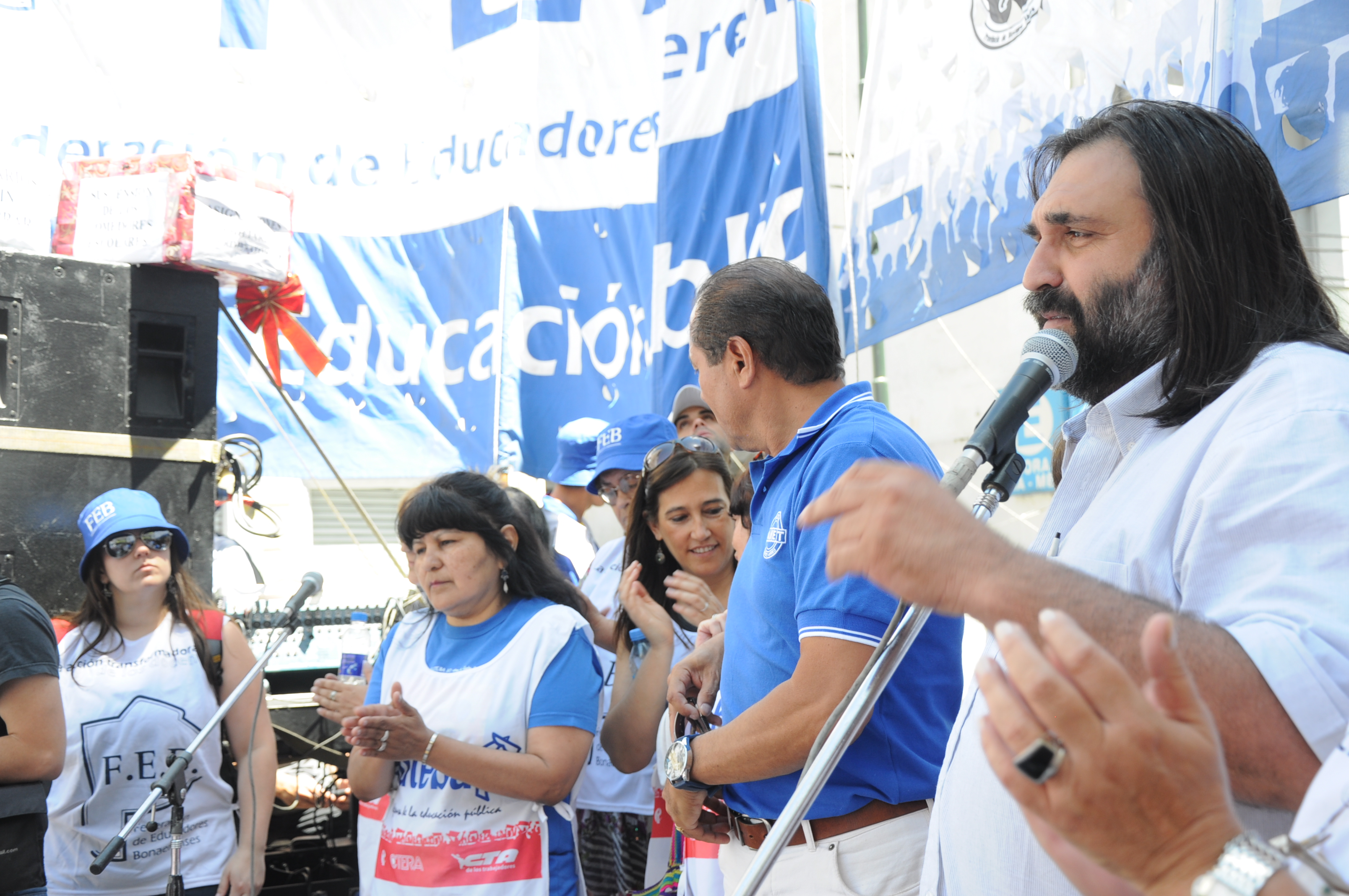 Una vez allí, realizaron un acto y el Secretario General de SUTEBA, Roberto Baradel, transmitió un fuerte mensaje de lucha y unidad frente a los ajustes en educación y dijo: “El Gobernador tiene la llave para destrabar este conflicto en la reunión de mañana. O cambian la política y se termina el ajuste en la provincia, o el año que viene no empieza el ciclo lectivo en la provincia de Buenos Aires”.