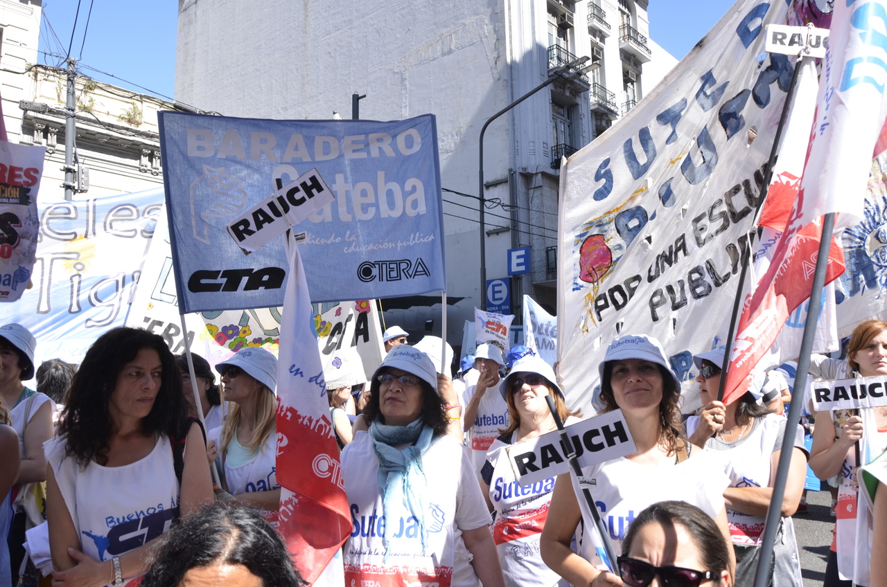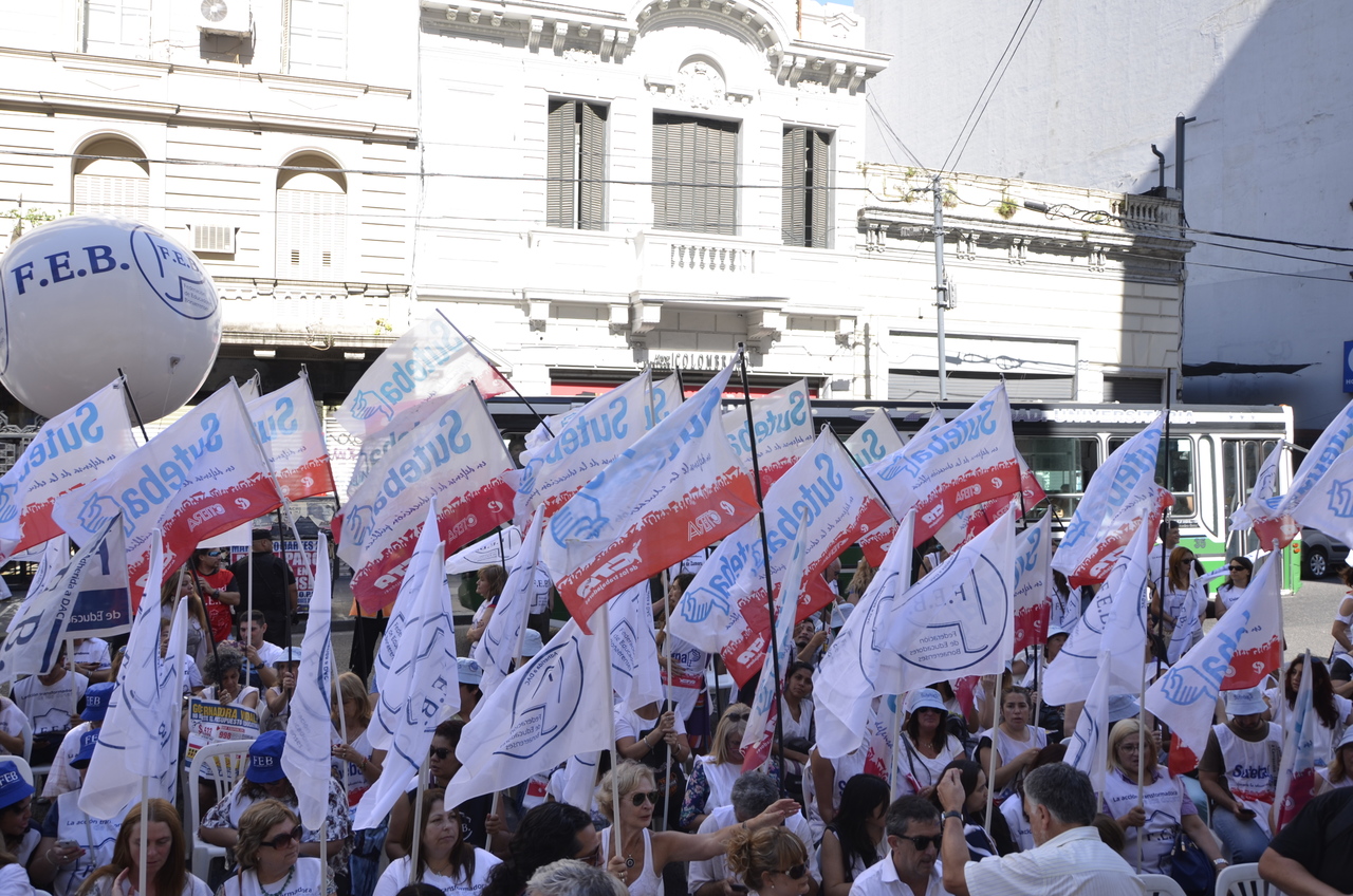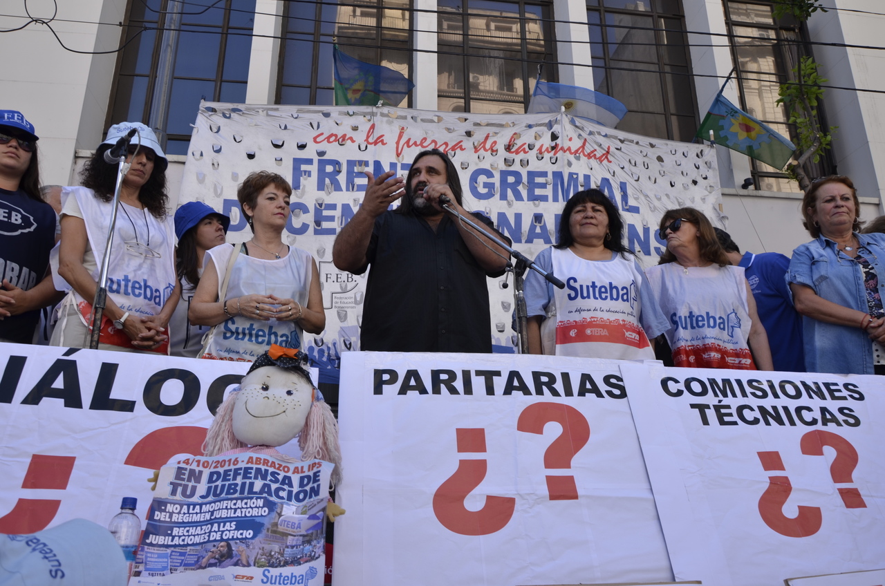 En un contexto de unidad de todos los Trabajadores de la Educación en el FGDB, cientos de compañeros se hicieron presentes para reclamar por todas aquellas cuestiones que el Gobierno no atiende ni resuelve: reapertura urgente de la Paritaria Docente, incremento del Presupuesto Educativo 2017, eliminación del Impuesto a las Ganancias para la Cuarta Categoría, cobertura total de cargos, aumento de cupos para los Comedores Escolares (SAE), resolución de problemáticas edilicias, continuidad integral de los Programas Socioeducativos, desarrollo integral del Programa Nacional de Formación Permanente (PNFP), funcionamiento de las Comisiones Técnicas, Cogestión, UEGD y el rechazo a la "armonización" de las cajas previsionales que, en la práctica, implica el desfinanciamiento del IPS.