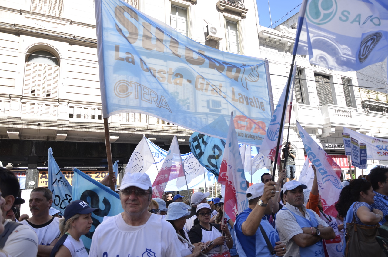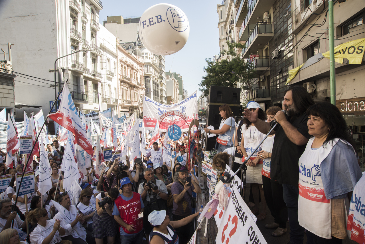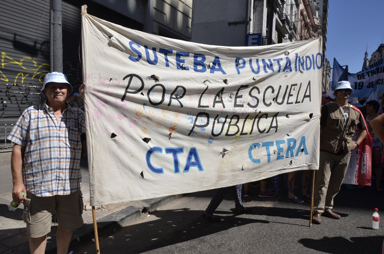 En un contexto de unidad de todos los Trabajadores de la Educación en el FGDB, cientos de compañeros se hicieron presentes para reclamar por todas aquellas cuestiones que el Gobierno no atiende ni resuelve: reapertura urgente de la Paritaria Docente, incremento del Presupuesto Educativo 2017, eliminación del Impuesto a las Ganancias para la Cuarta Categoría, cobertura total de cargos, aumento de cupos para los Comedores Escolares (SAE), resolución de problemáticas edilicias, continuidad integral de los Programas Socioeducativos, desarrollo integral del Programa Nacional de Formación Permanente (PNFP), funcionamiento de las Comisiones Técnicas, Cogestión, UEGD y el rechazo a la "armonización" de las cajas previsionales que, en la práctica, implica el desfinanciamiento del IPS.