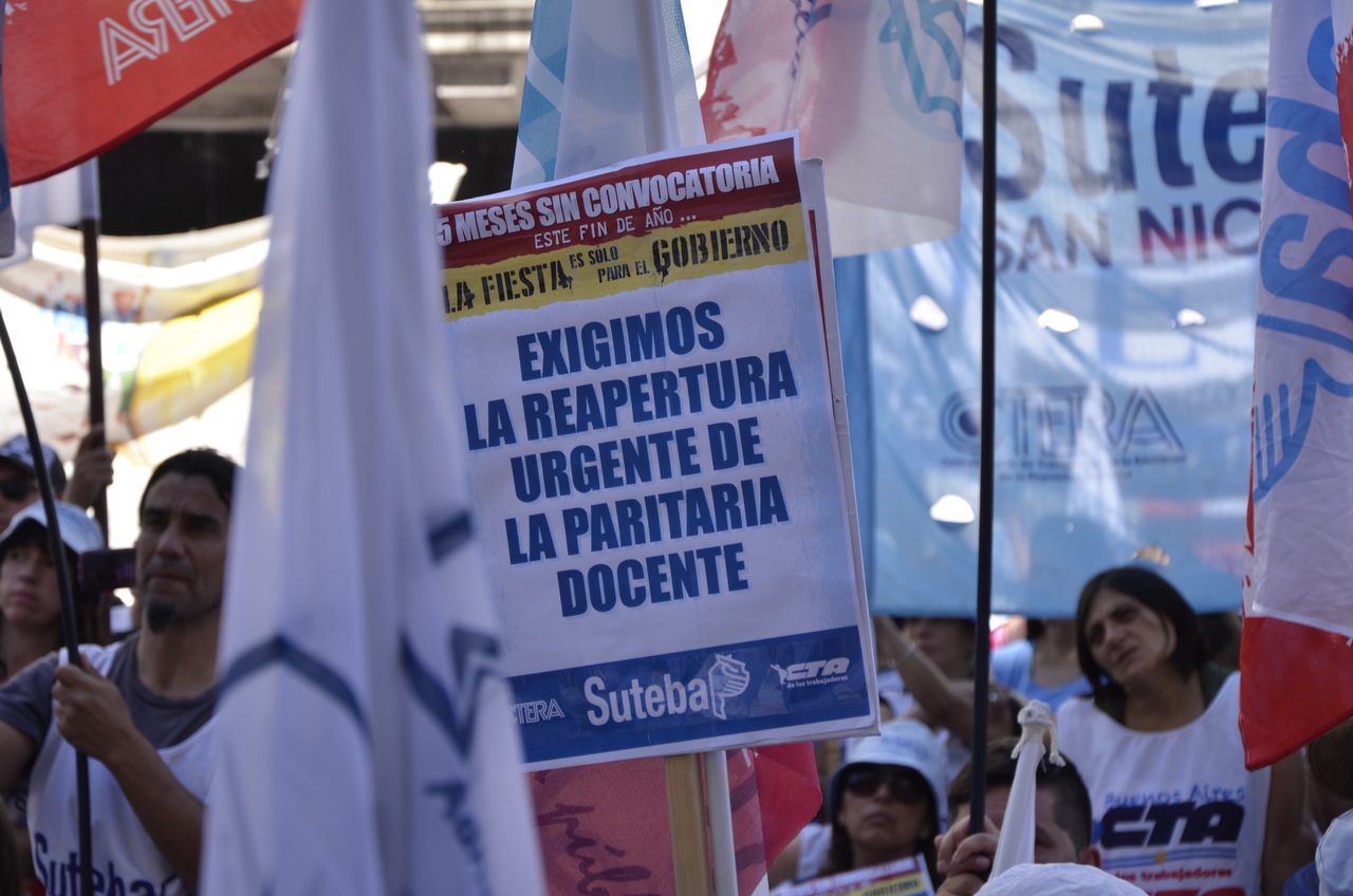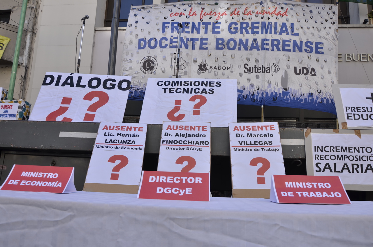 Por su parte, Baradel aseguró que "la Gobernadora convocó a estatales y le dio aumento a la policía bonaerense mientras que mantiene la no convocatoria a los docentes". Y aseguró: "Nos condenan a pasar el verano con pérdida del poder adquisitivo. Esto debe saberlo la sociedad porque van a responsabilizarnos del conflicto docente, cuando venimos reclamando diálogo desde hace 5 meses. Nos cierran las puertas y no hay convocatoria a la paritaria como se había acordado".