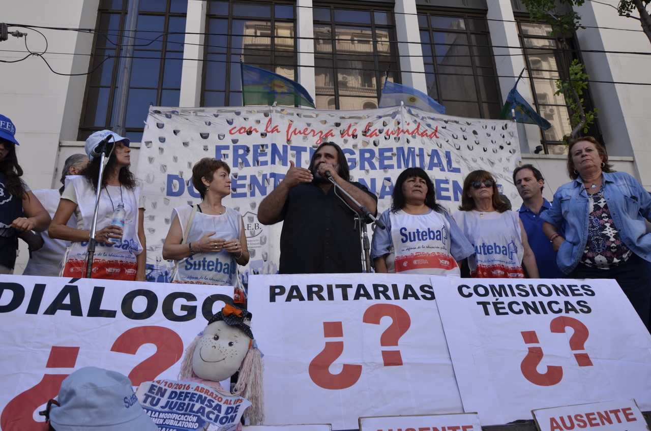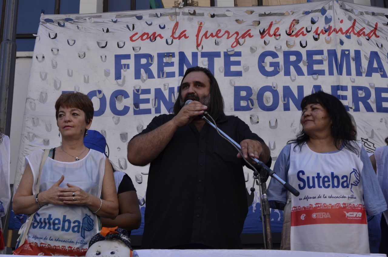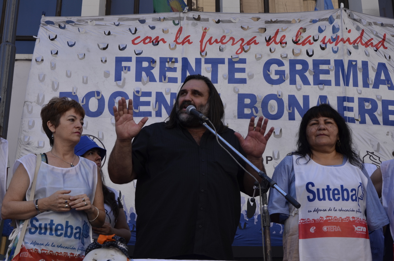 El Secretario General del SUTEBA, Roberto Baradel, expresó: "Estamos frente a la Casa de la Provincia, como ya estuvimos en el IPS y en la DGCyE. Así como también hicimos varias acciones por el cobro de salarios, comedores y programas socioeducativos". Y agregó: "Aunque el Ministro Bullrich diga que el sistema educativo no sirve y apunte en esa situación. La Gobernadora Vidal decía que tenía diálogo con los docentes, cuestión que era una puesta en escena porque no hubo convocatoria. No sólo no mantuvo el presupuesto en Educación, sino que lo envía a la Legislatura con recortes".