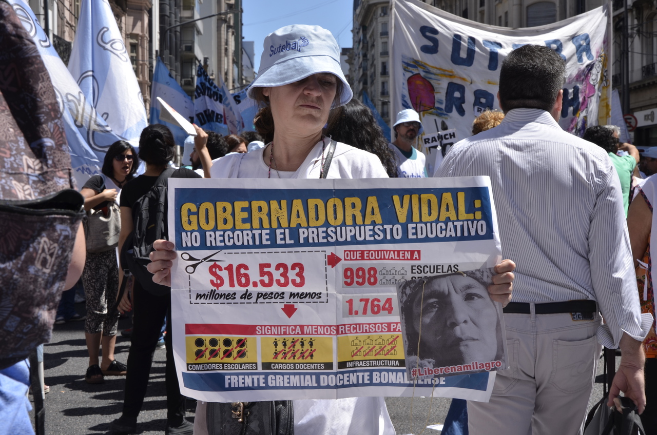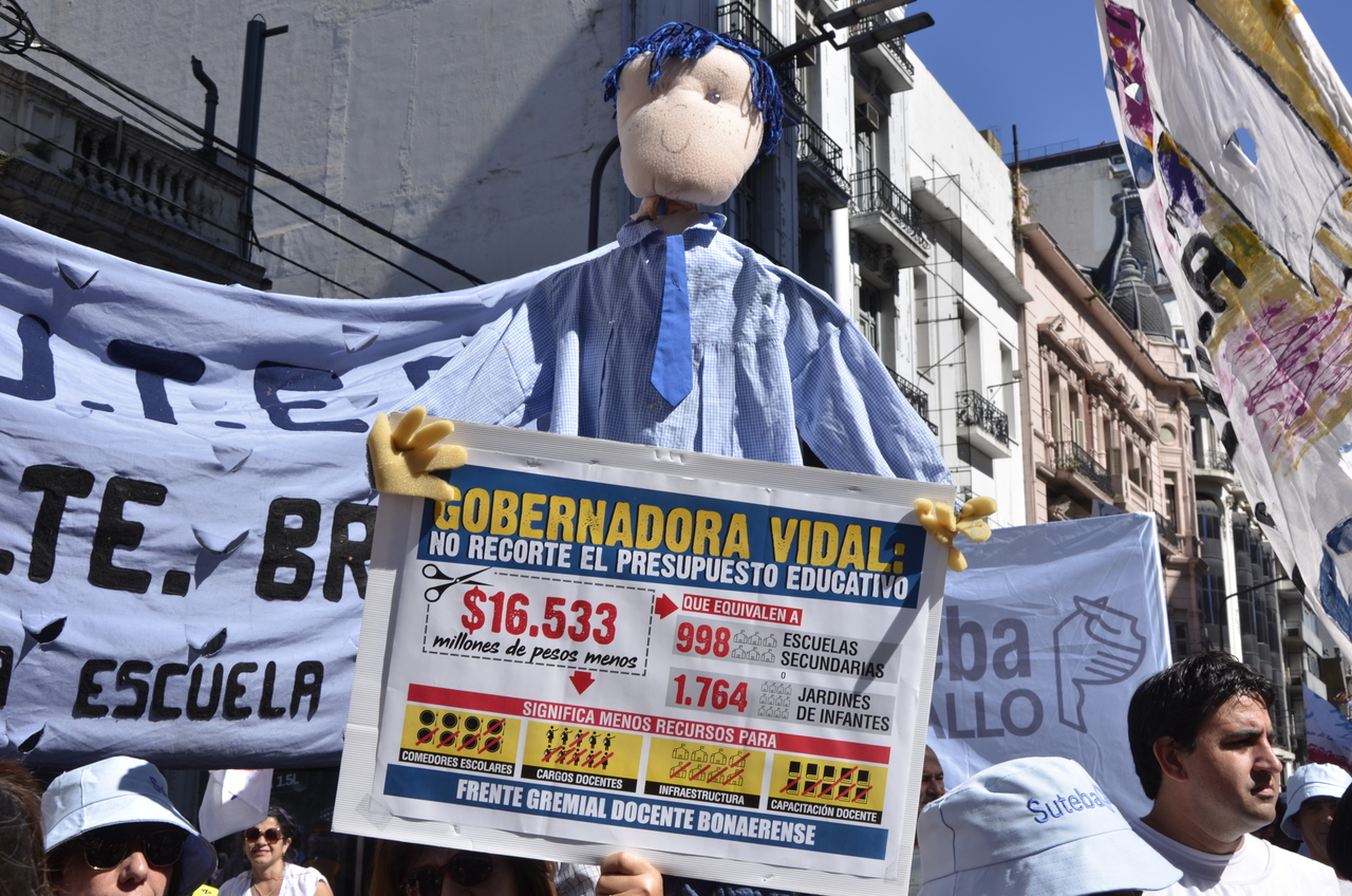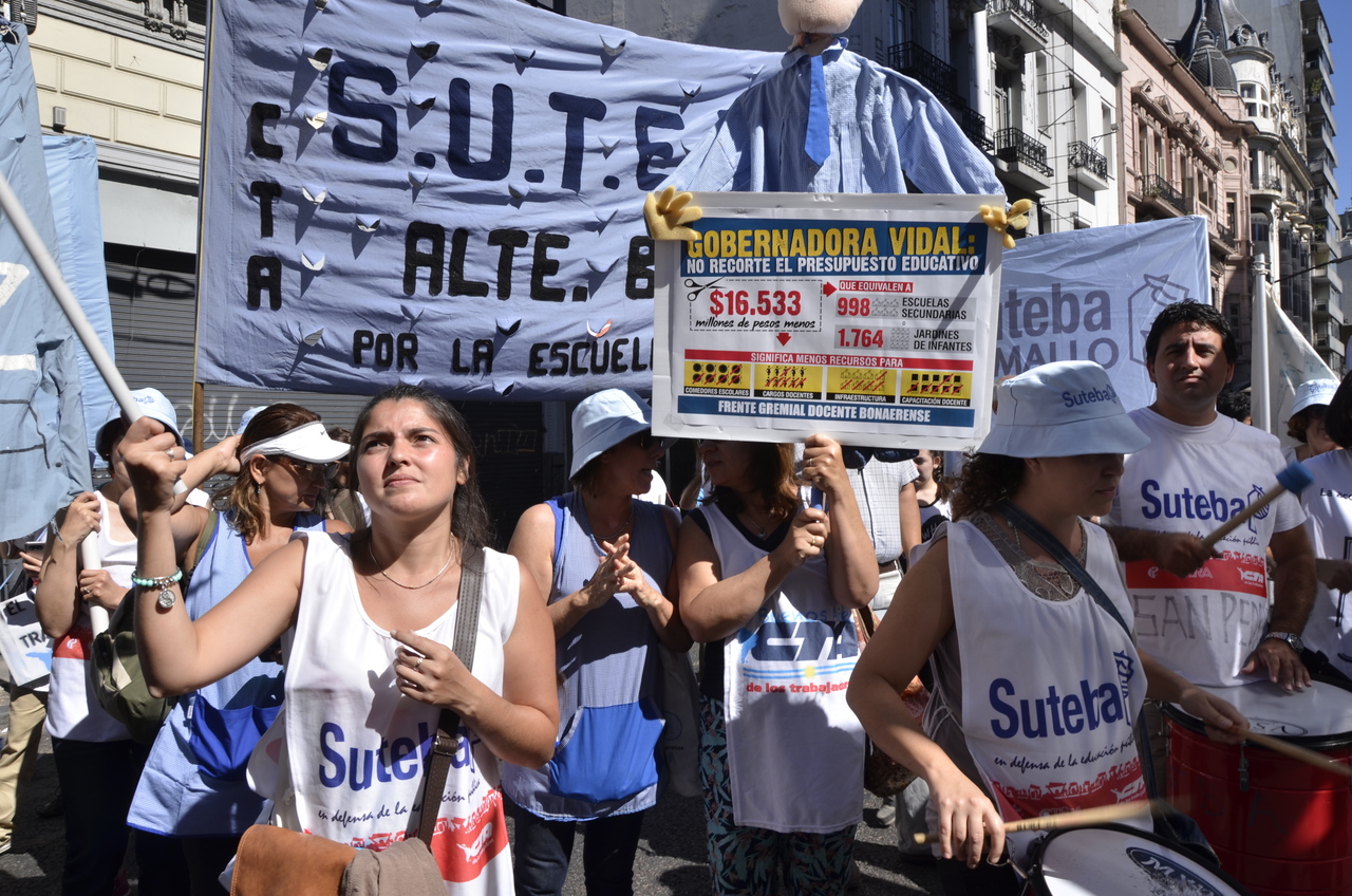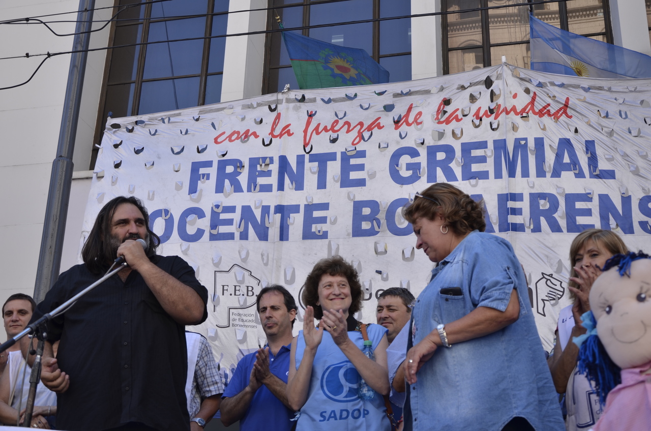 El Secretario General del SUTEBA, Roberto Baradel, expresó: "Estamos frente a la Casa de la Provincia, como ya estuvimos en el IPS y en la DGCyE. Así como también hicimos varias acciones por el cobro de salarios, comedores y programas socioeducativos". Y agregó: "Aunque el Ministro Bullrich diga que el sistema educativo no sirve y apunte en esa situación. La Gobernadora Vidal decía que tenía diálogo con los docentes, cuestión que era una puesta en escena porque no hubo convocatoria. No sólo no mantuvo el presupuesto en Educación, sino que lo envía a la Legislatura con recortes".