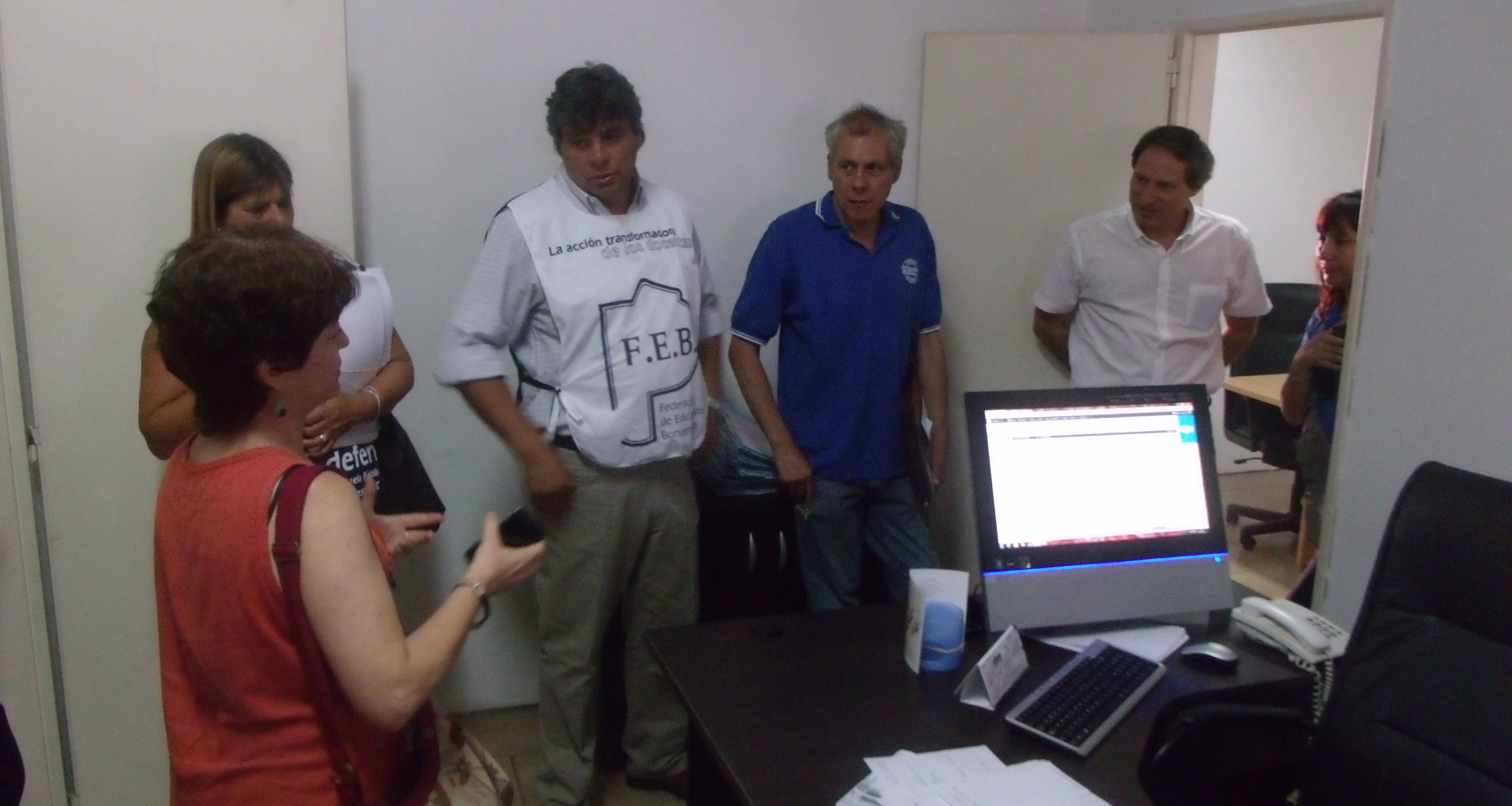 Los Docentes, junto a los representantes sindicales, fueron recibidos por Daniel Montes de Oca, Director Provincial de Negociaciones Colectivas y por Leandro Altamirano, Director de Negociaciones Colectivas. Ambos funcionarios tuvieron que dar respuesta a los reclamos que los compañeros les hicieron, logrando que se realice la carga de los días trabajados y se dé fecha para un alcance que haga efectivo el pago de lo reclamado.
