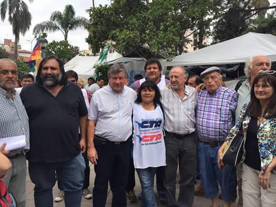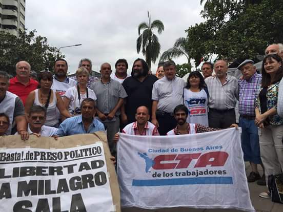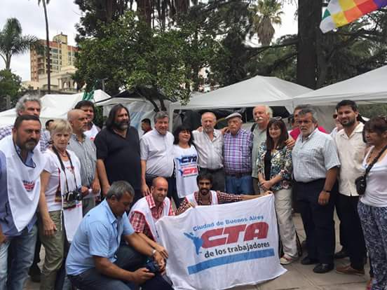 La comitiva de la Central, junto a compañeros del SUTEBA, cuenta con la presencia de Hugo Yasky, Secretario General de la CTA Nacional; Pedro Wasiejko, Secretario Adjunto de la CTA Nacional; Roberto Baradel, Secretario General del SUTEBA y la CTA Provincia de Buenos Aires; Silvia Almazán, Secretaria de Educación y Cultura de SUTEBA; María Reigada, Secretaria de DDHH de CTA Provincia de Buenos Aires, además de representantes de varias provincias y de diversos sindicatos. Dicha comitiva se encuentra en el acampe que realizan los compañeros de la Tupac Amaru en la Plaza Belgrano, manifestando una profunda solidaridad con la lucha por la liberación de Milagro Sala.