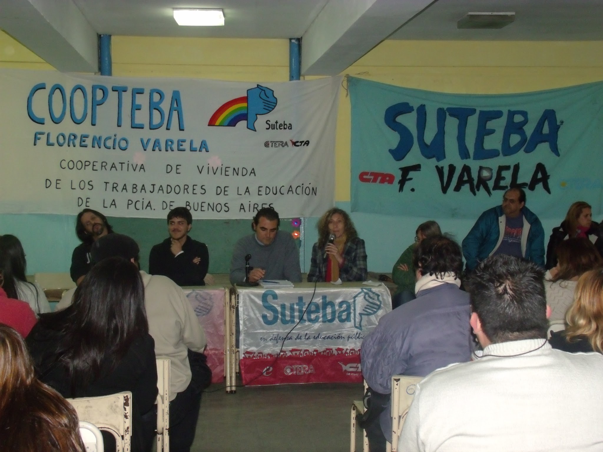 El viernes 13 de septiembre, en el distrito de Florencio Varela y en el marco del primer encuentro de Capacitación Obligatoria en Cooperativismo, se presentó la Cooperativa de Vivienda y Consumo de los Trabajadores de la Educación de Buenos Aires (COOPTEBA), el programa que SUTEBA promueve en toda la Provincia de Buenos Aires y que consiste en la construcción de viviendas para los docentes afiliados.