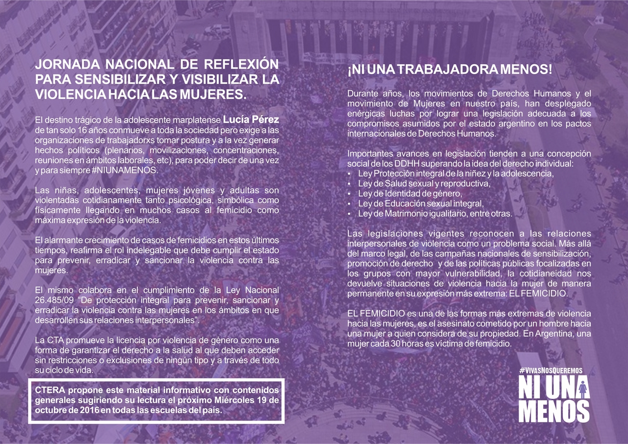 También en archivo adjunto ponemos a disposición material de la CTERA, para dar lectura y potenciar el debate, el día miércoles.