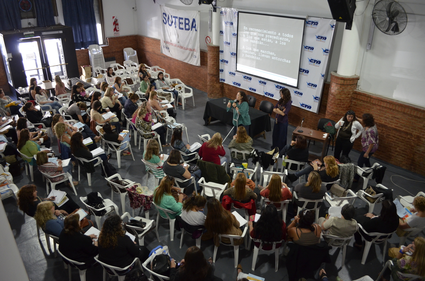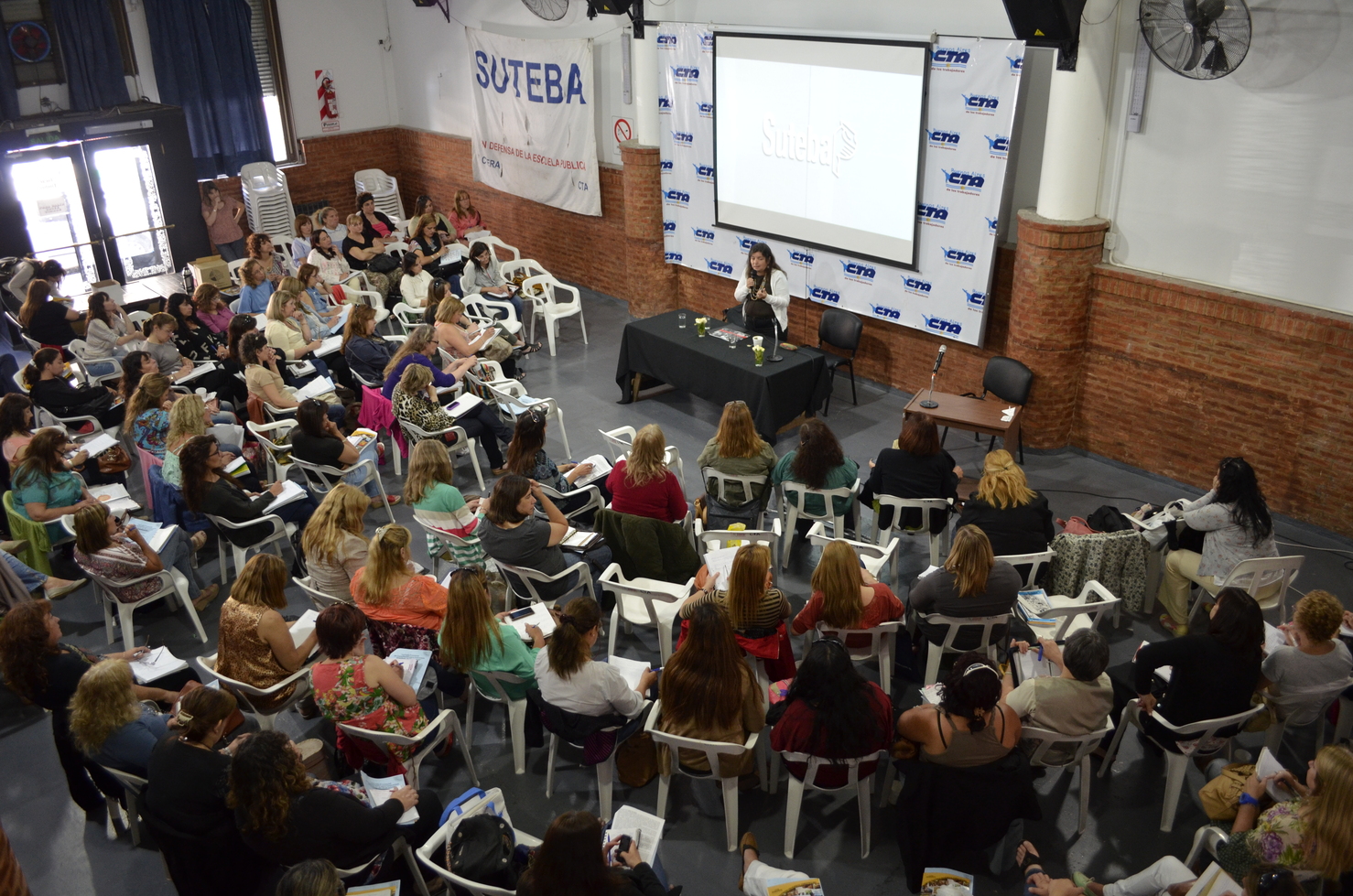 Concurrieron más de 140 compañeras de toda la provincia convocadas por SUTEBA, tanto del interior como del conurbano, desde distritos como Tandil, Necochea, San Nicolás, Lanús, Rojas, Dolores, Avellaneda, La Plata, Berisso, Ensenada, Alte. Brown, Florencio Varela entre otros.