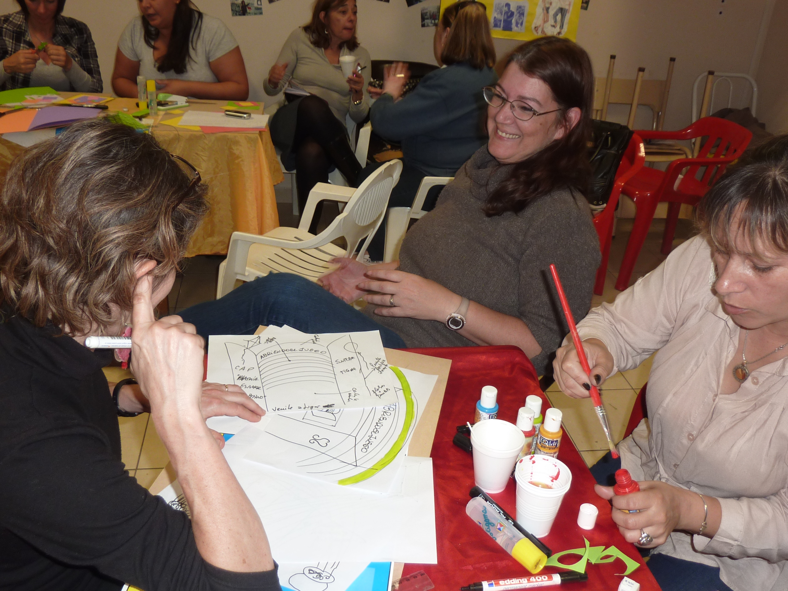 Cada encuentro regional convocó a los equipos de salud de los centros correspondientes a esa zona para la preparación de los rincones de juego que se instalarán en las salas de espera en el marco de la Campaña por la Desmedicalización de la Vida Cotidiana.